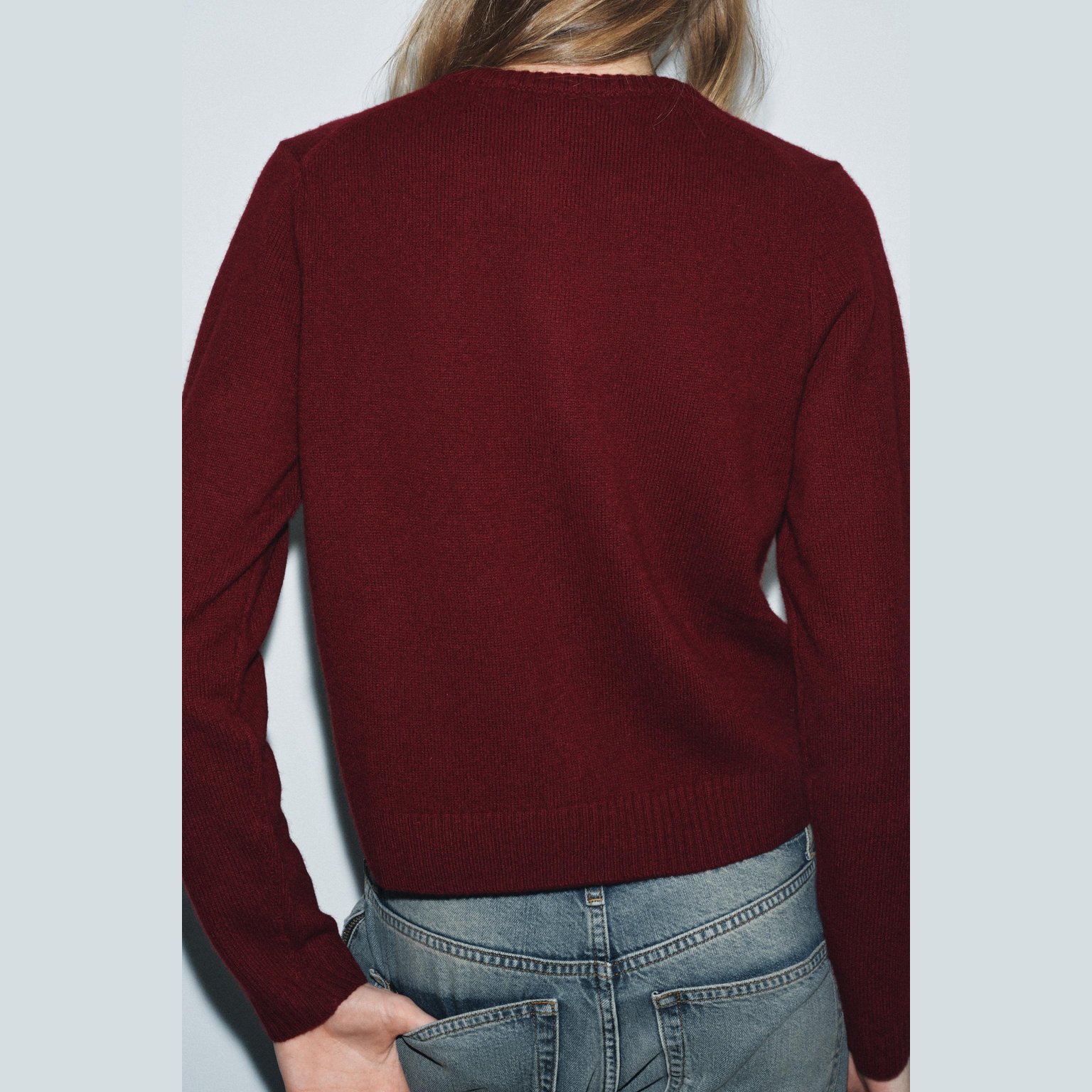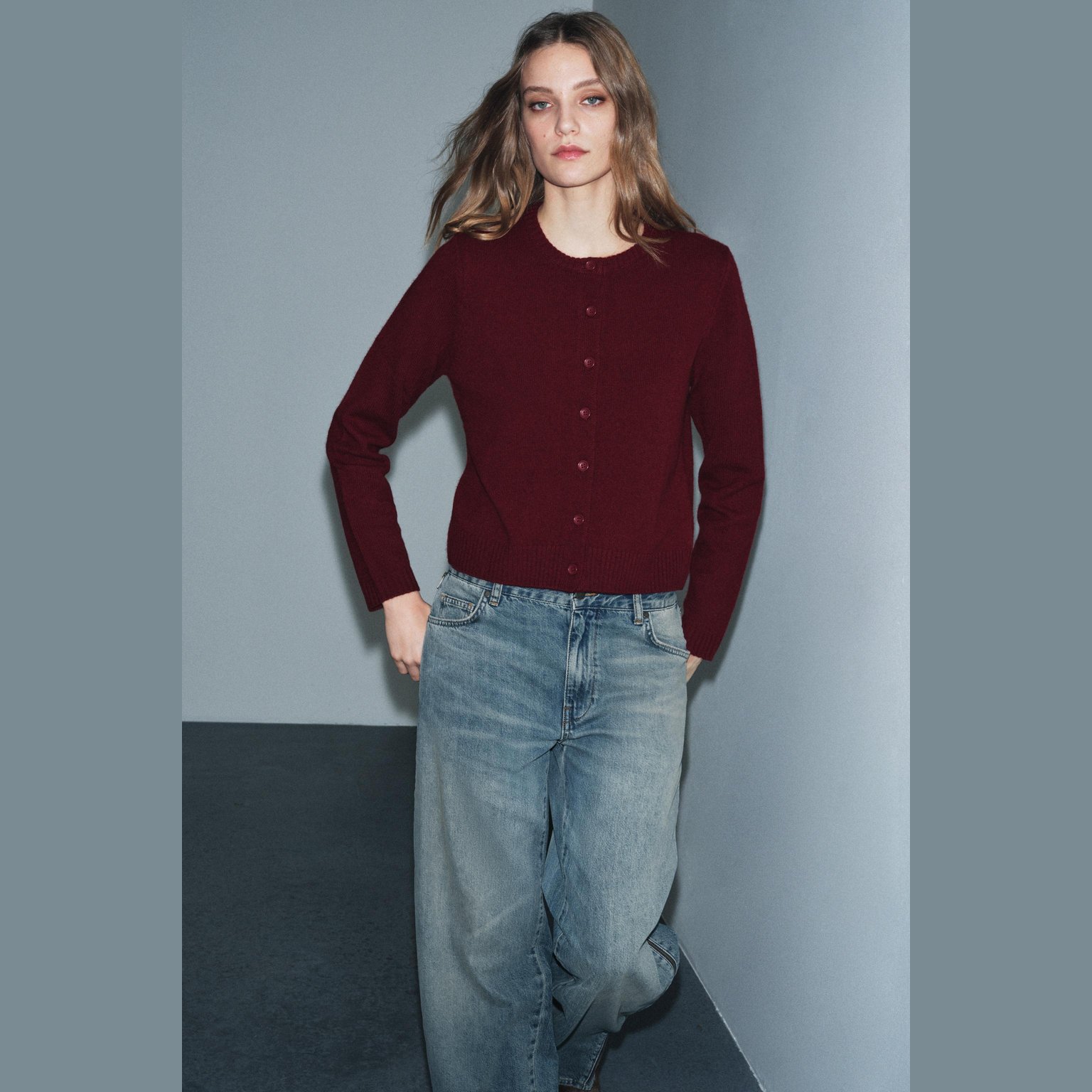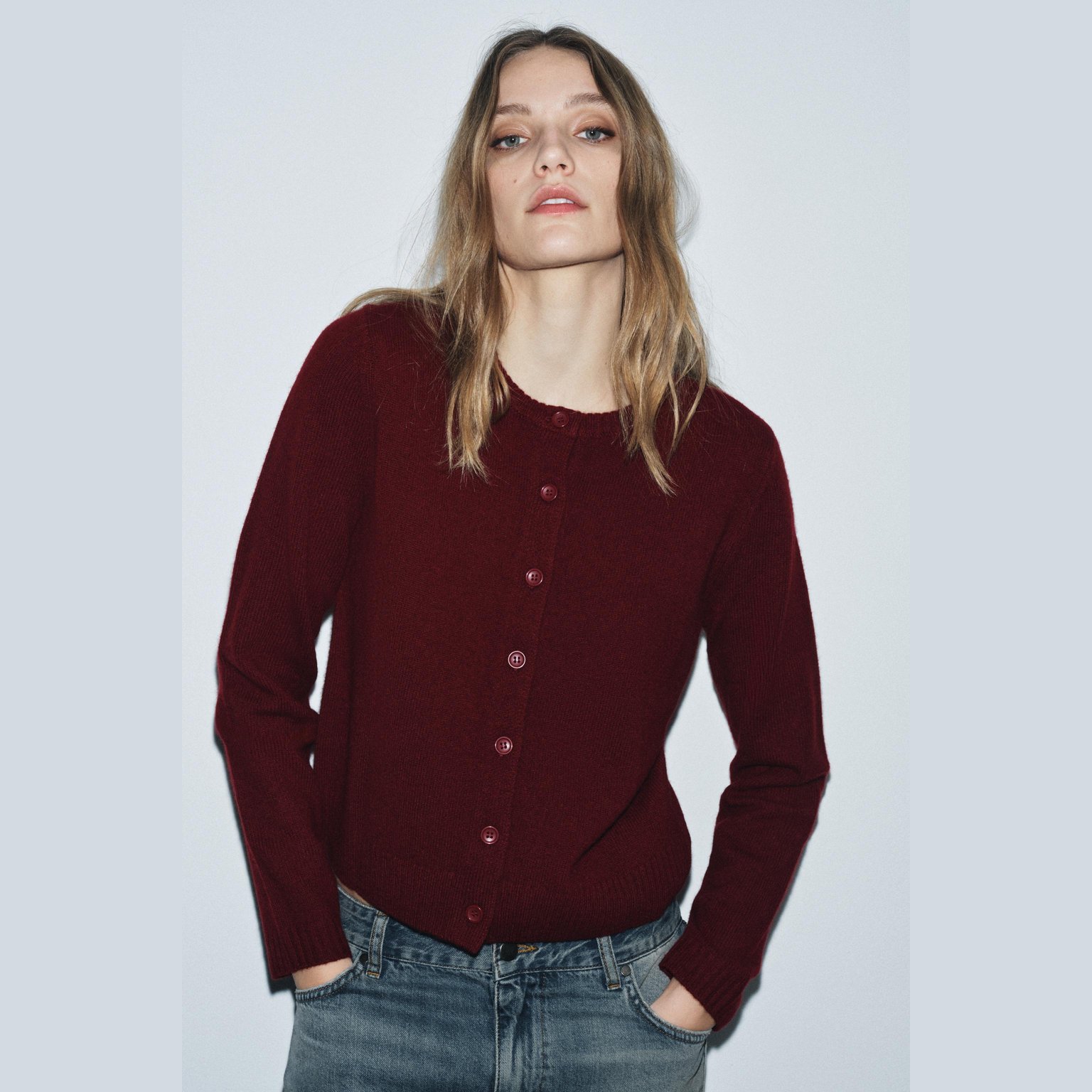 كارديغان أنيق بلون برغندي طبيعي، مصنوع بالكامل من الصوف الفاخر ليمنح دفئًا وملمسًا راقيًا، مع تصميم محبوك بسيط يناسب مختلف الإطلالات. يتميز برقبة مستديرة، أكمام طويلة، إغلاق أمامي بأزرار، وحاشية مستقيمة. قطعة مثالية للإطلالات الكاجوال الأنيقة في المواسم الباردة.
