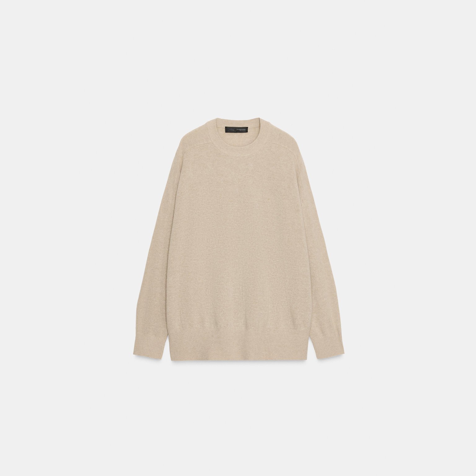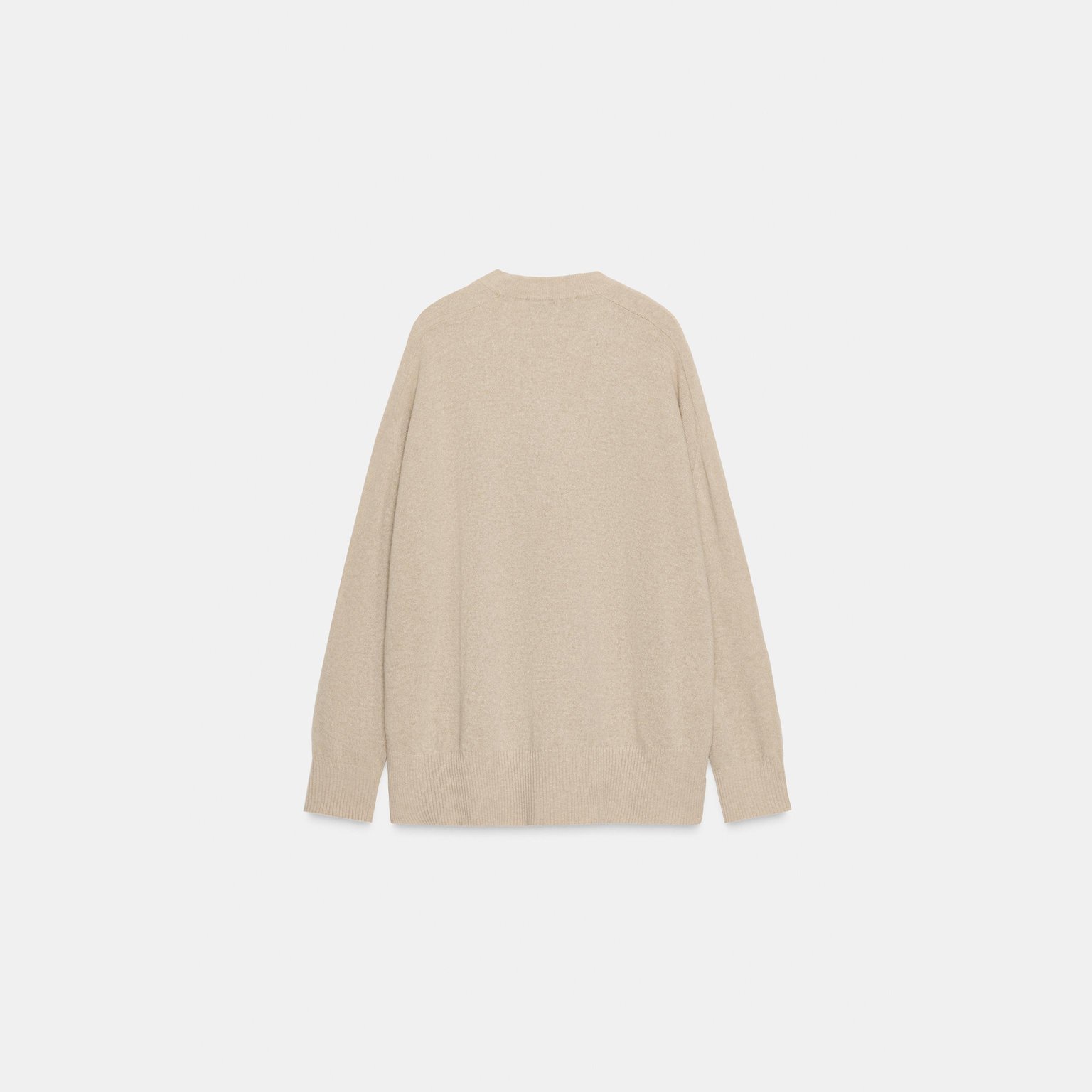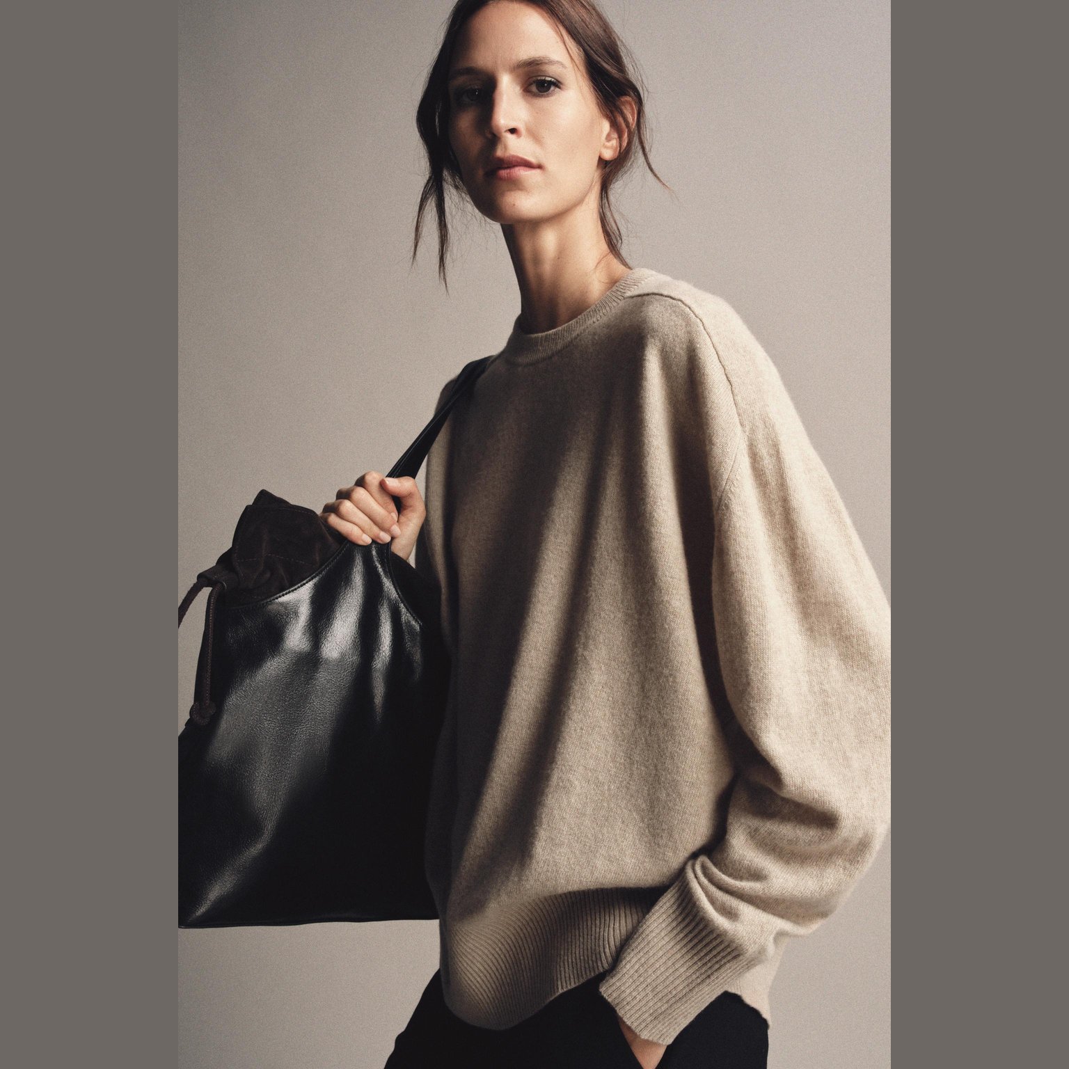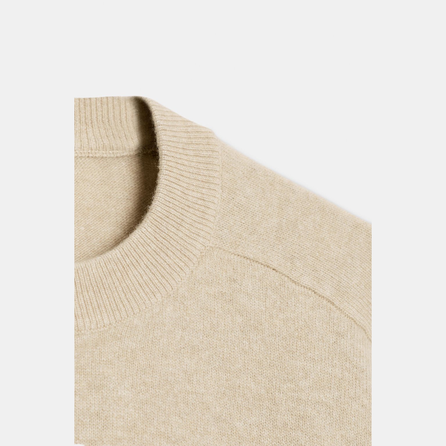 سويتر واسع بلون بيج طبيعي، مصنوع بالكامل من الصوف الفاخر ليمنح دفئًا وملمسًا راقيًا، مع تصميم مريح وعملي يناسب مختلف الإطلالات. يتميز برقبة مستديرة، أكمام طويلة، وحواف مضلعة. قطعة مثالية للإطلالات الكاجوال الأنيقة في المواسم الباردة.