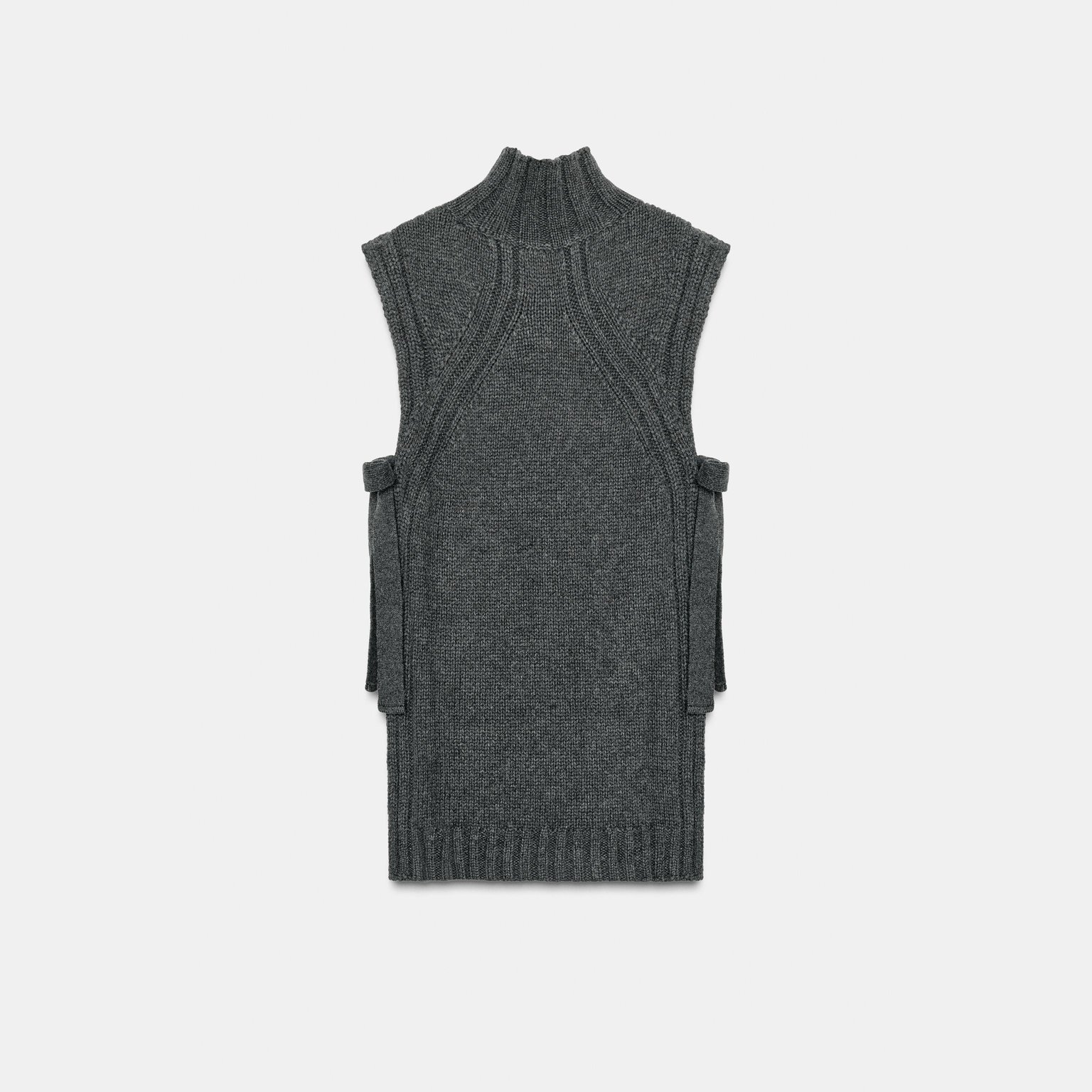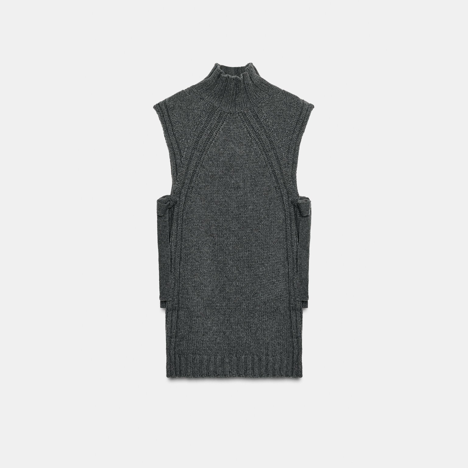 صديري أنيق بلون رمادي مموج طبيعي، مصنوع من خامة ممزوجة بالصوف والبولي أميد ليمنح دفئًا وملمسًا عمليًا، مع تصميم عصري بفتحات جانبية. يتميز بياقة عالية، تصميم بلا أكمام، وحزام جانبي للربط. قطعة مثالية للتنسيق مع القمصان أو البليزرات لإطلالة كاجوال أنيقة.