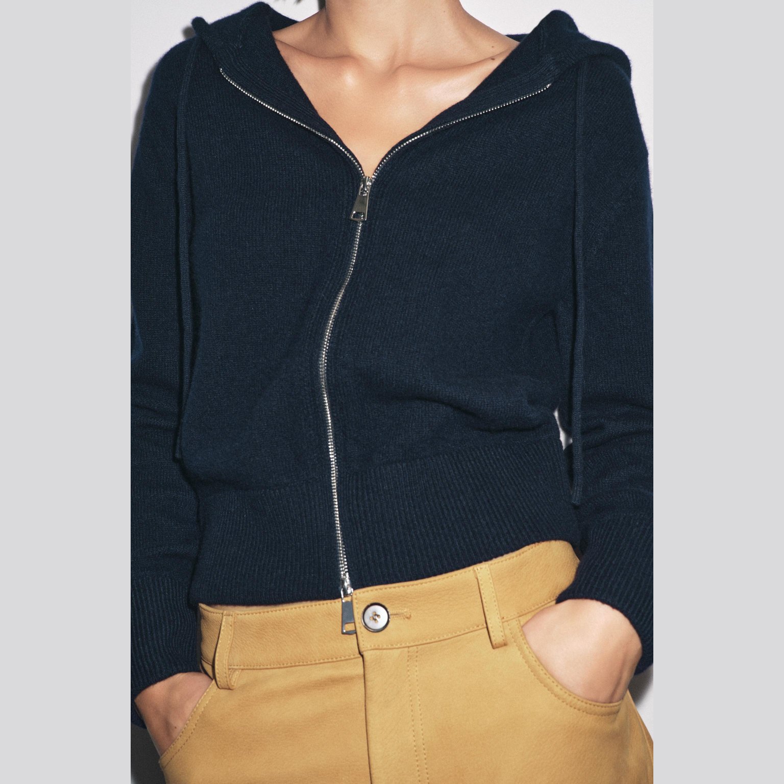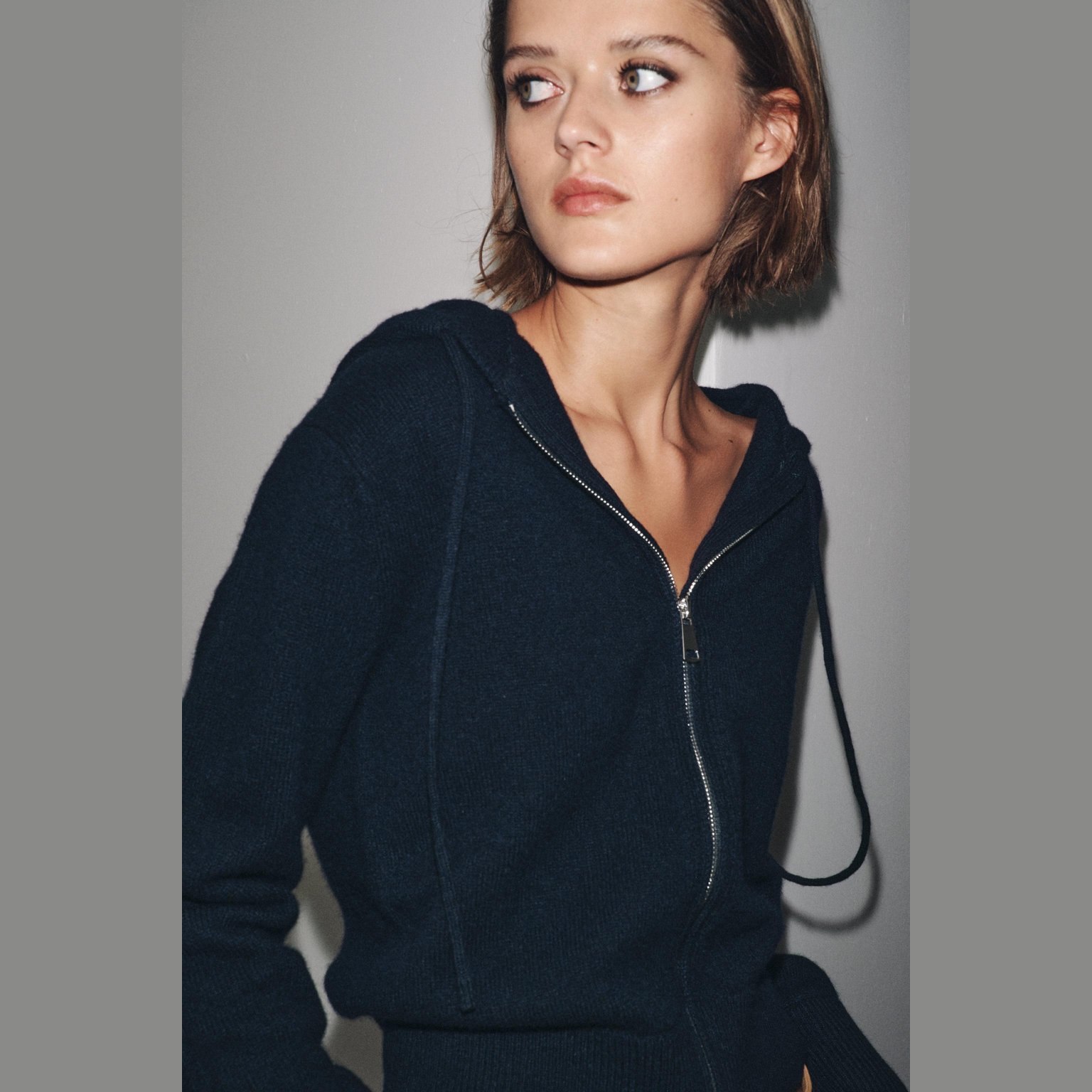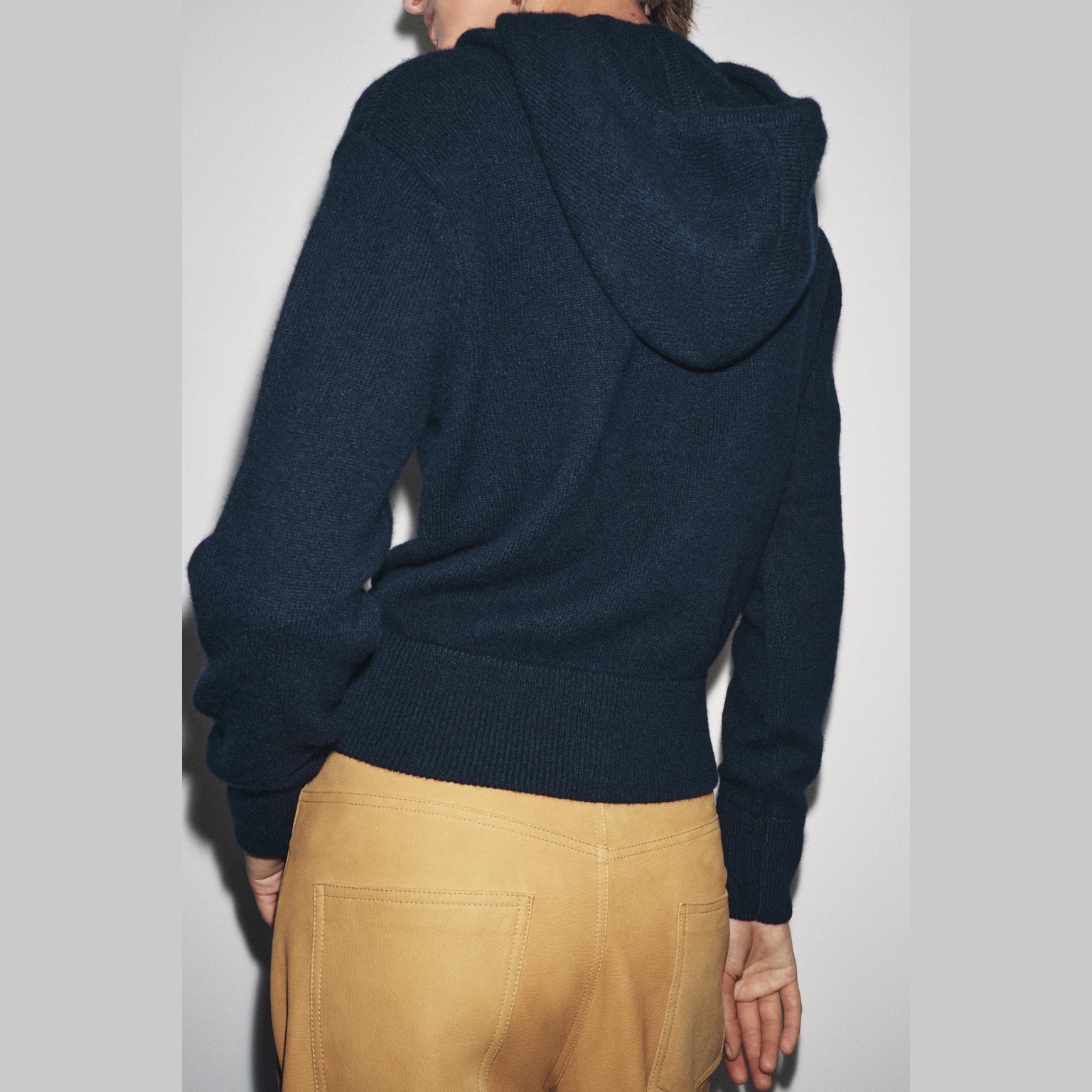 هودي أنيق بلون كحلي طبيعي، مصنوع بالكامل من الصوف الفاخر ليمنح دفئًا وملمسًا راقيًا، مع تصميم عملي يناسب مختلف الإطلالات. يتميز بقبعة قابلة للتعديل بخيط شد، أكمام طويلة، وحواف مضلعة. قطعة مثالية للإطلالات الكاجوال الأنيقة في المواسم الباردة.