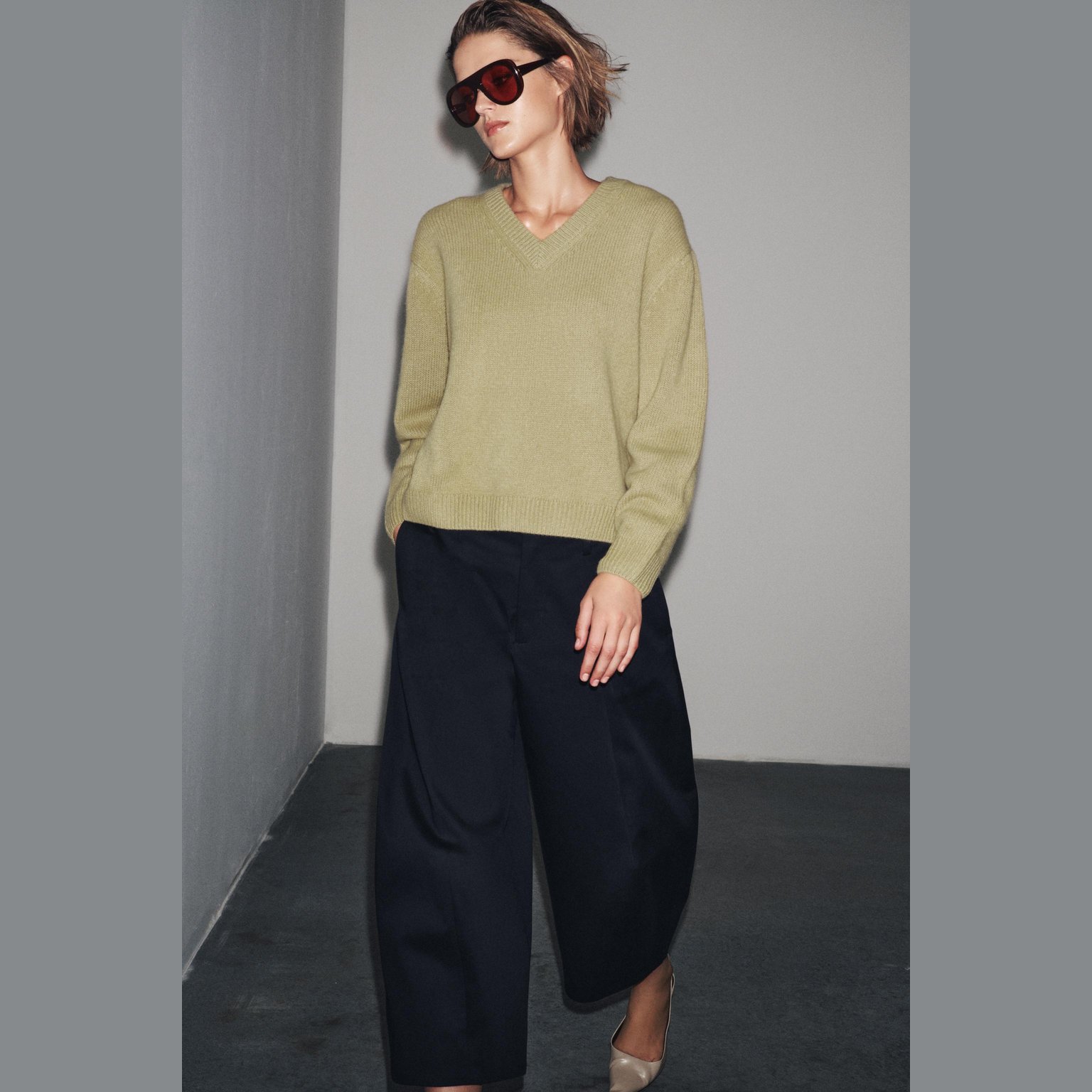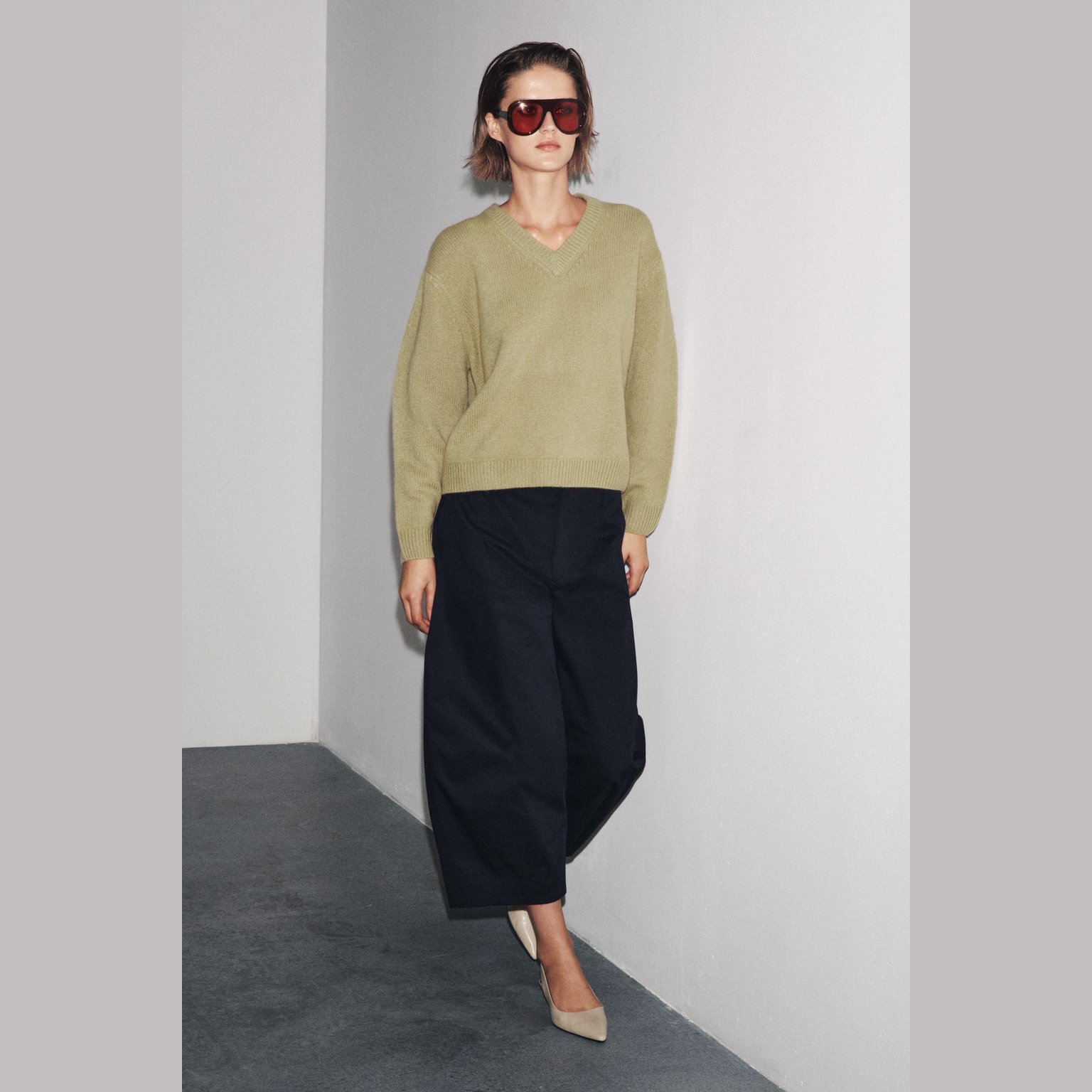 سويتر أنيق بلون أخضر زيتوني طبيعي، مصنوع بالكامل من الصوف الفاخر ليمنح دفئًا وملمسًا راقيًا، مع تصميم كلاسيكي عملي يناسب مختلف الإطلالات. يتميز بياقة على شكل V، أكمام طويلة، وحاشية مستقيمة. قطعة مثالية للإطلالات الكاجوال الأنيقة في المواسم الباردة.