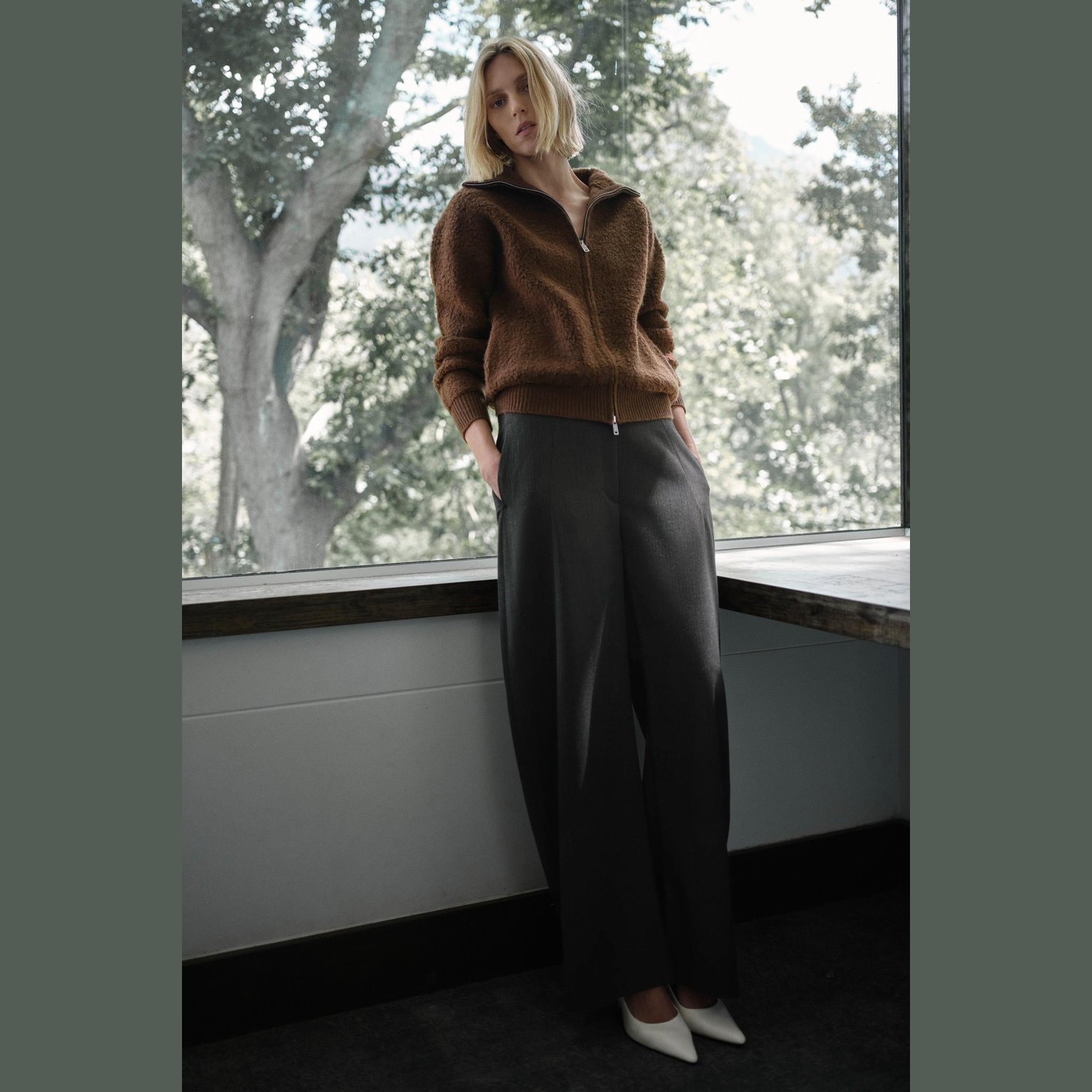 - التصميم: جاكيت بومبر صوفي 100% بوقليه (100% Bouclé Wool Bomber Jacket)