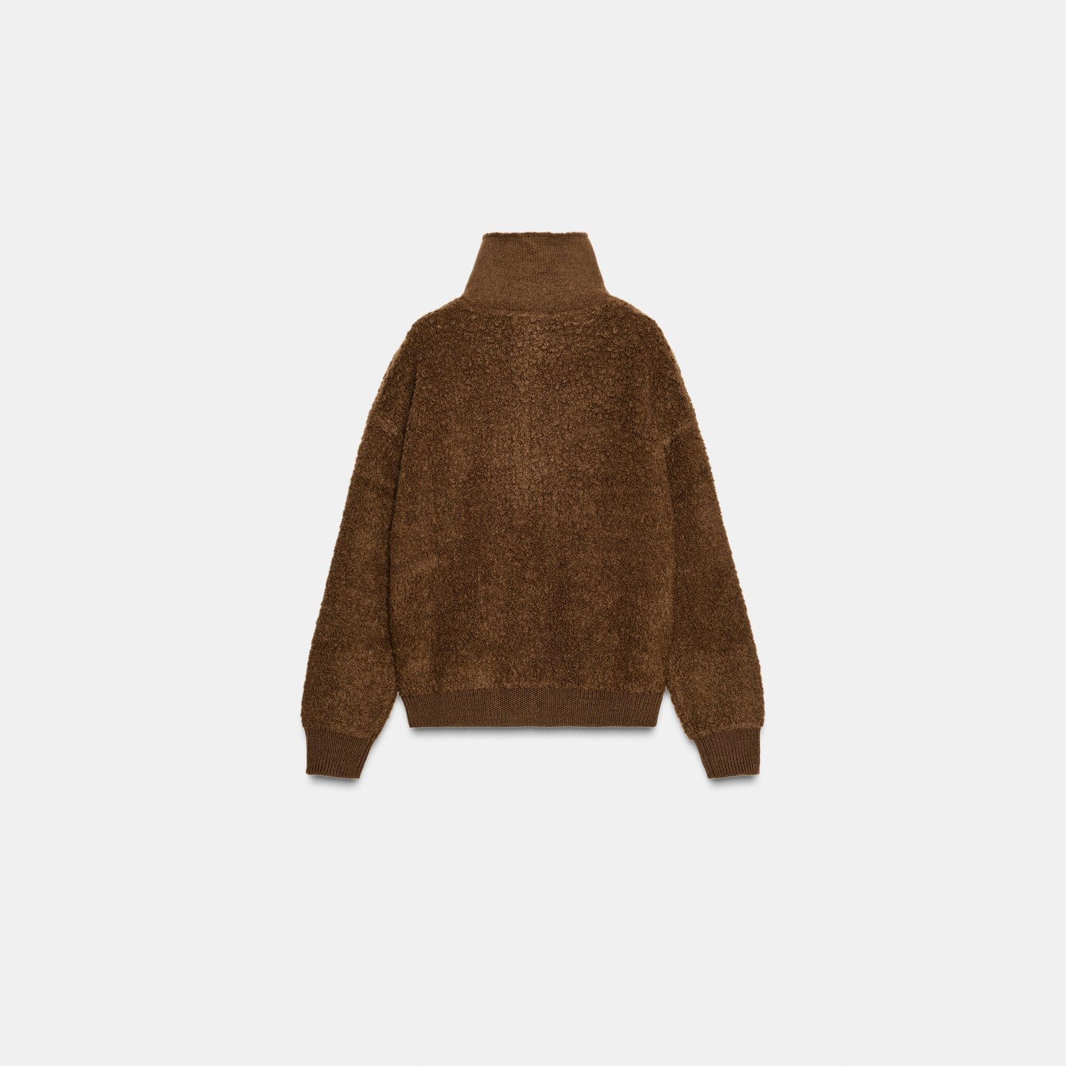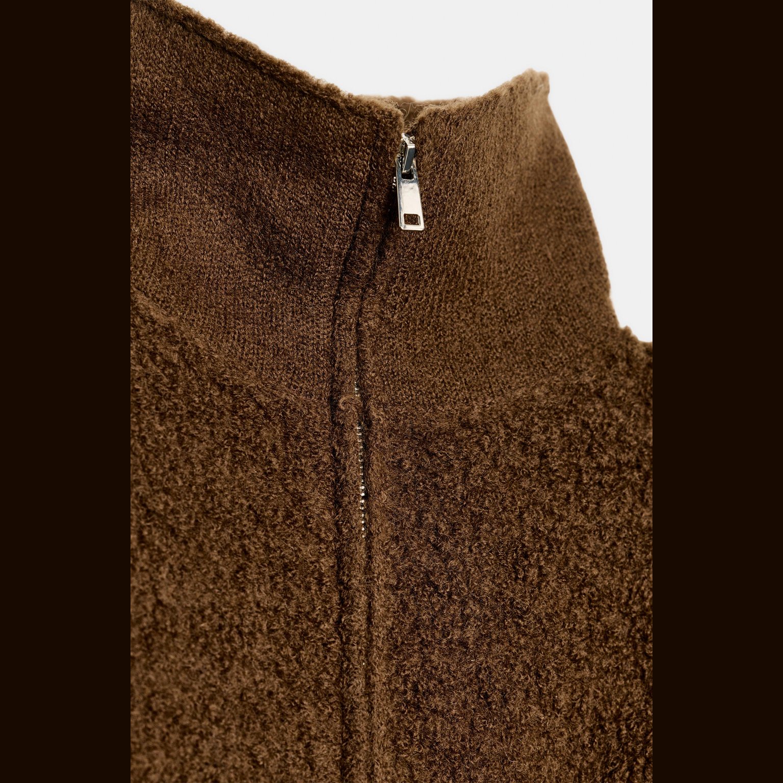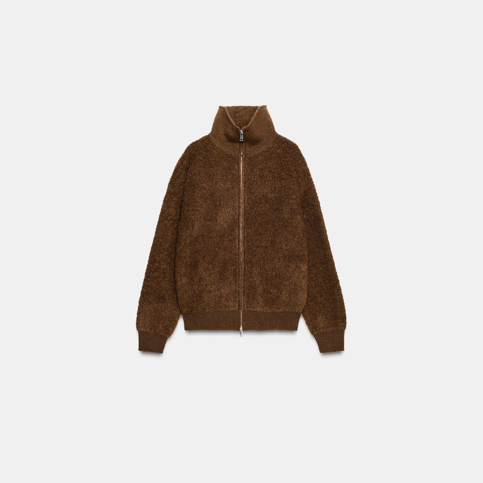جاكيت بومبر صوفي 100% بوقليه – لون طبيعي (بني شوكولاته) – Chocolate (100% Bouclé Wool Bomber Jacket)
