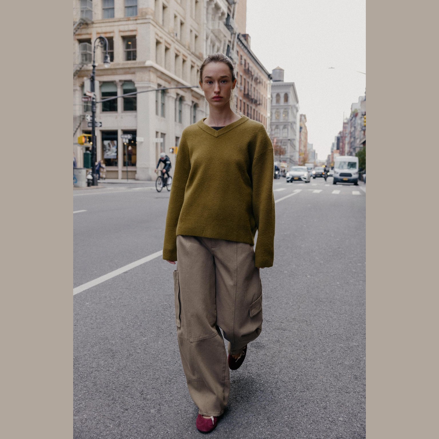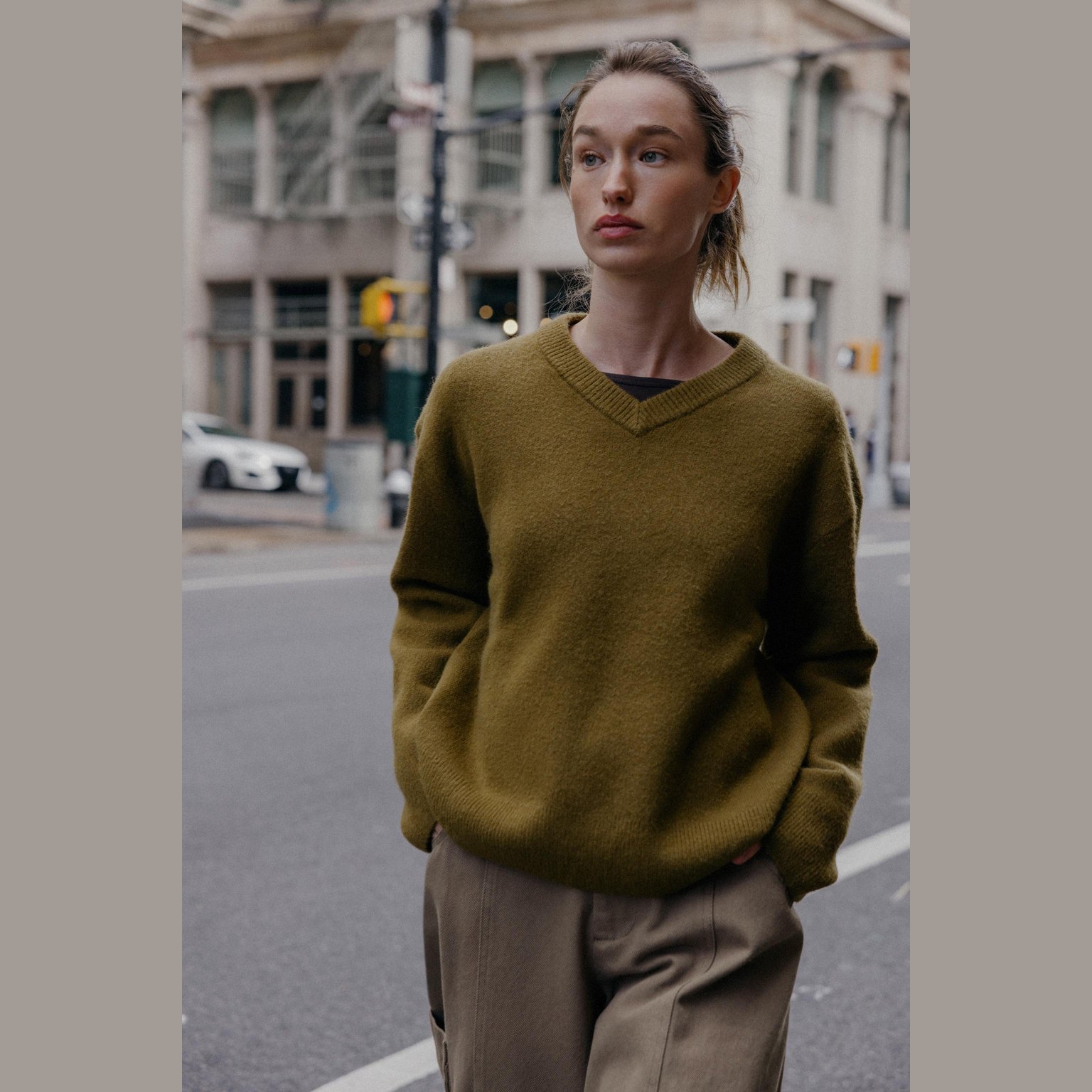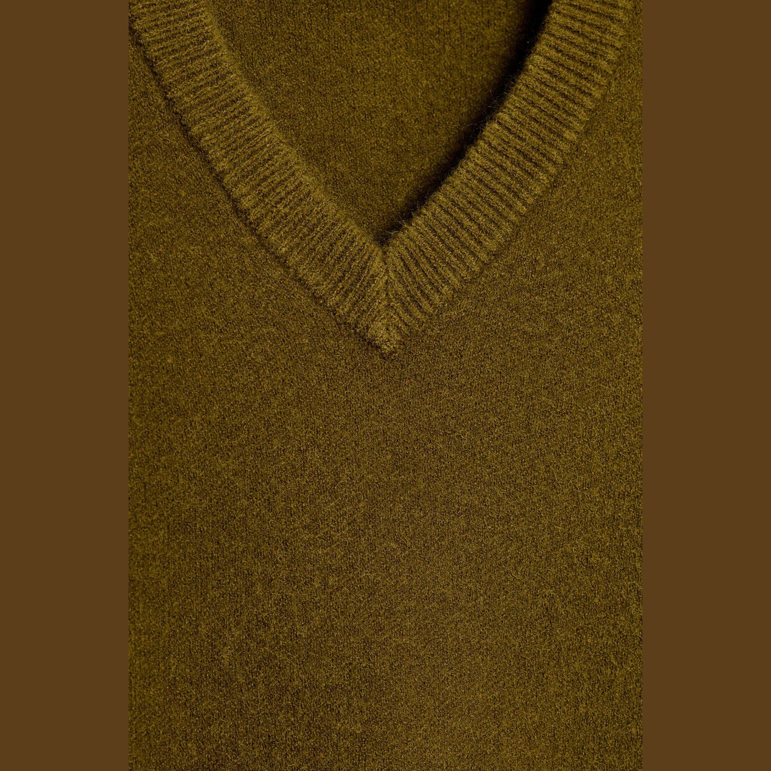 سويتر محبوك بسيط بياقة V – لون طبيعي (أخضر زيتي) – Olive Green (Plain Knit V-Neck Jumper) سويتر أنيق بلون أخضر زيتي طبيعي، مصنوع من خامة محبوكة عملية تمنح راحة وملمس عملي، مع تصميم كلاسيكي يناسب مختلف الإطلالات. يتميز بياقة على شكل V، أكمام طويلة، وحواف مضلعة تضيف لمسة عملية وأنيقة. قطعة مثالية للإطلالات اليومية الكاجوال الأنيقة.