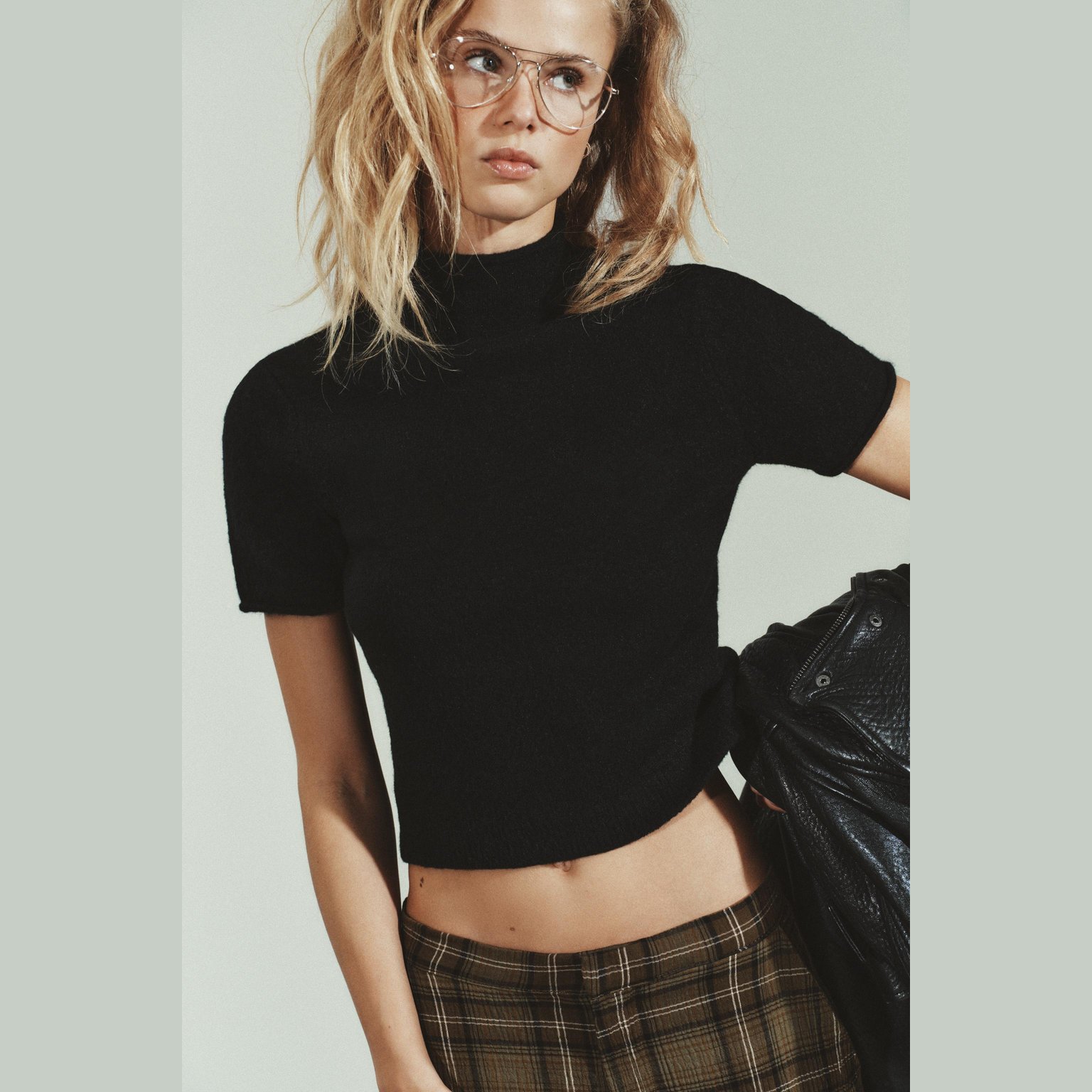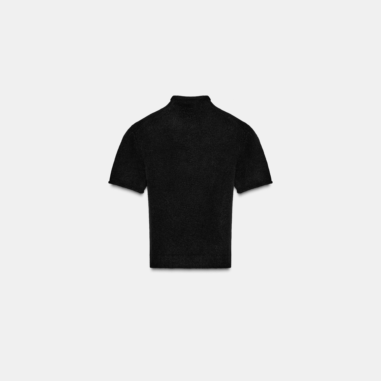 سويتر محبوك ناعم بأكمام قصيرة – لون طبيعي (أسود) – Black (Soft Knit Short Sleeve Jumper) سويتر أنيق بلون أسود طبيعي، مصنوع من خامة محبوكة ناعمة تمنح راحة وملمس عملي، مع تصميم كلاسيكي يناسب مختلف الإطلالات. يتميز بياقة عالية، أكمام قصيرة مع ثنيات، وحواف مضلعة تضيف لمسة عملية وأنيقة. قطعة مثالية للإطلالات اليومية الكاجوال الأنيقة أو التنسيقات العملية في المواسم الانتقالية.