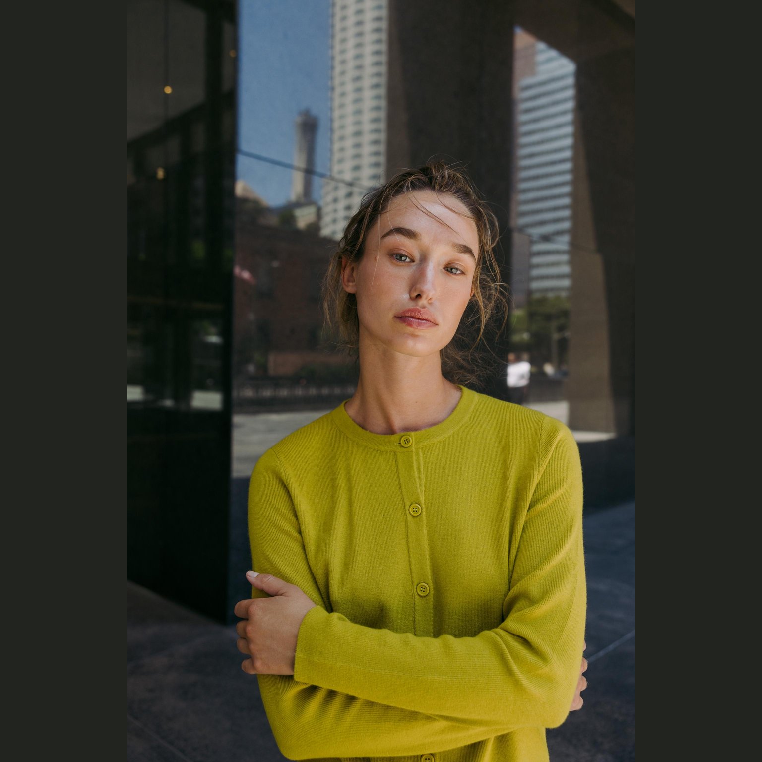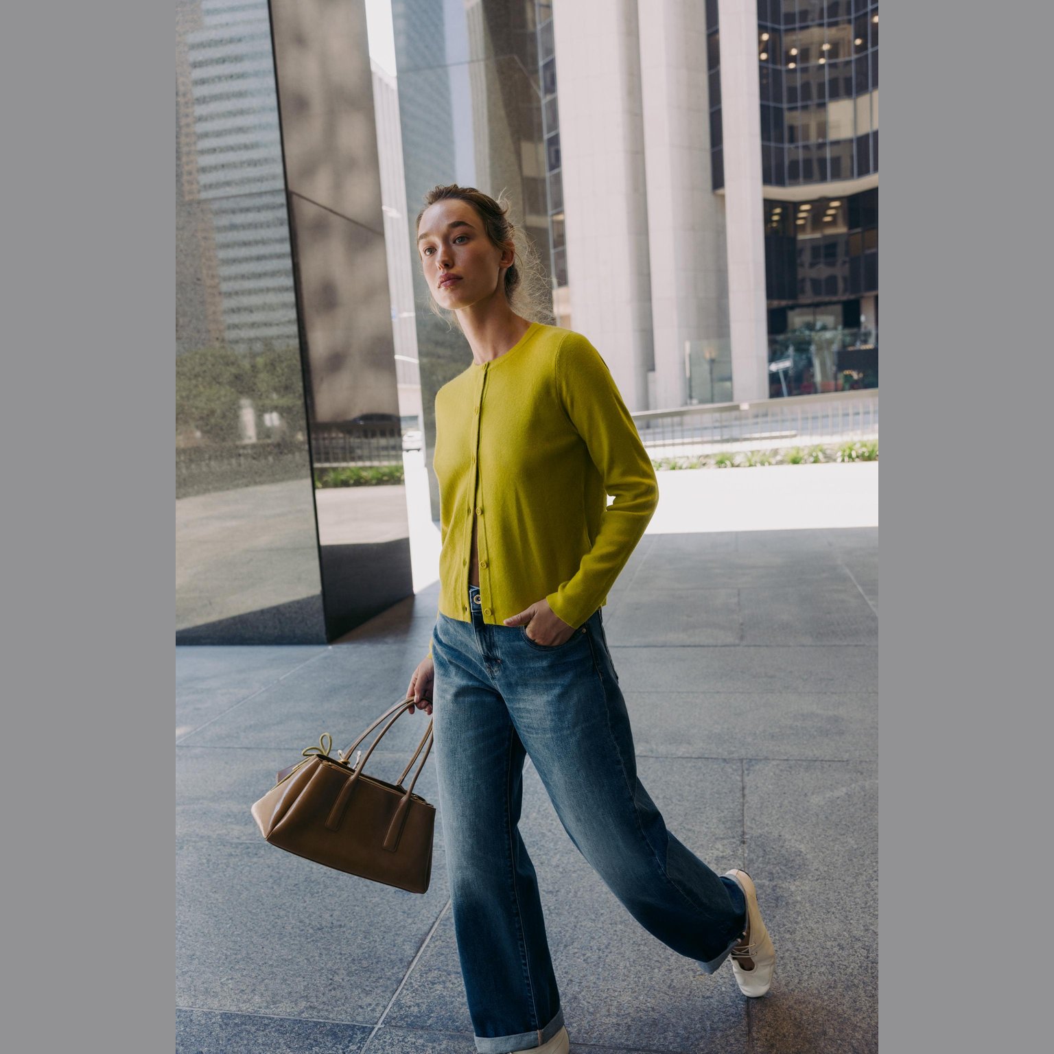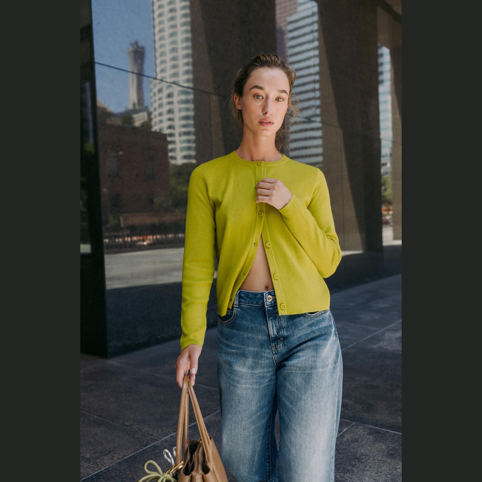 - التصميم: كارديغان محبوك أساسي بأزرار (Basic Knit Cardigan with Buttons)