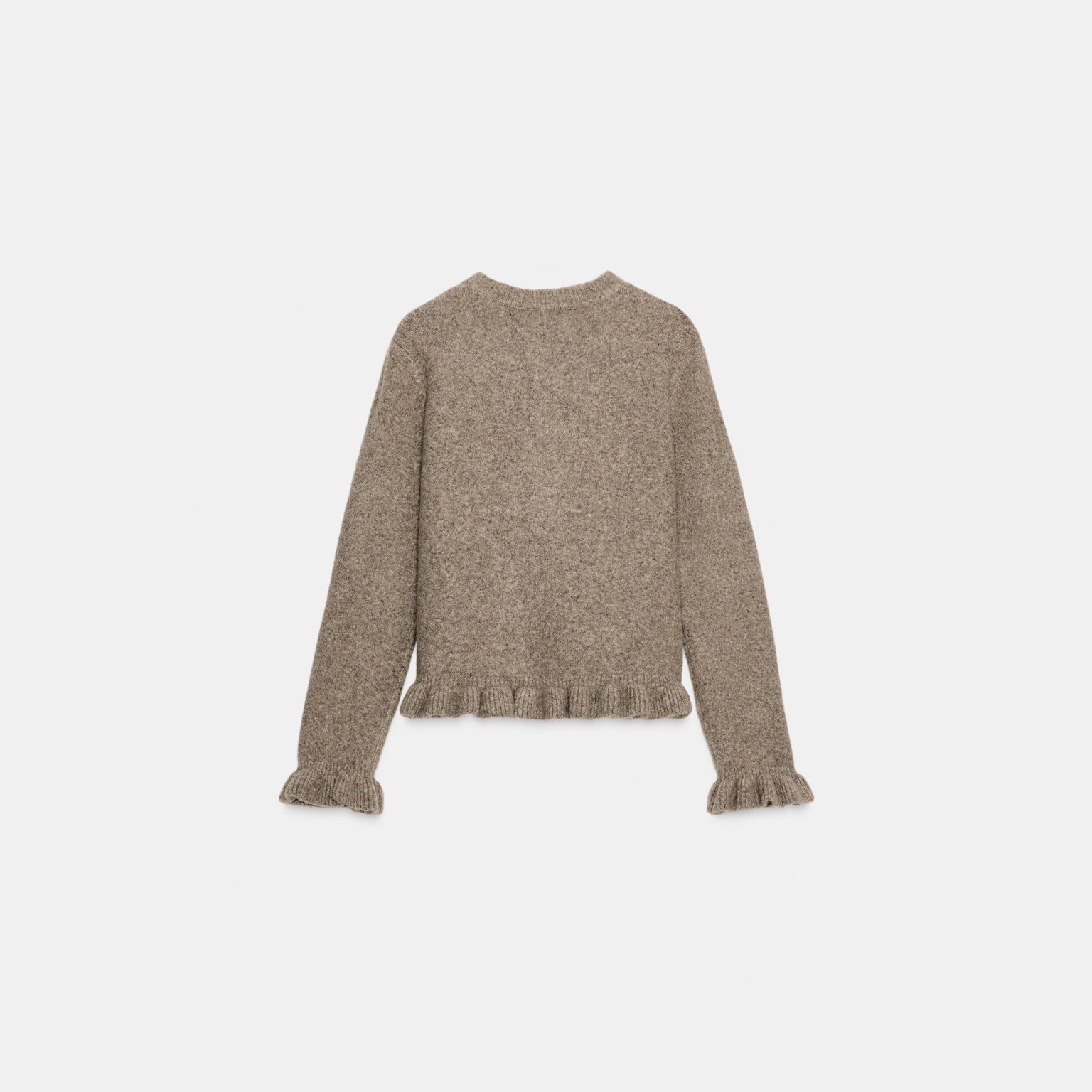 - التصميم: كارديغان محبوك مع حواف كشكش (Knit Cardigan with Ruffle Trims)