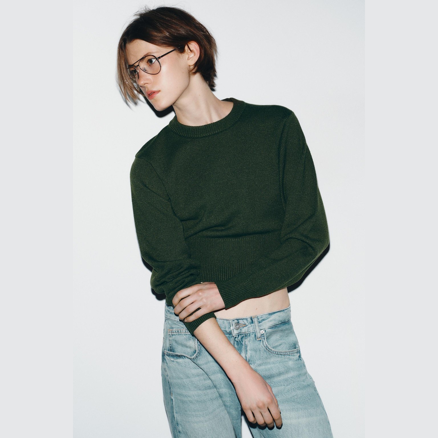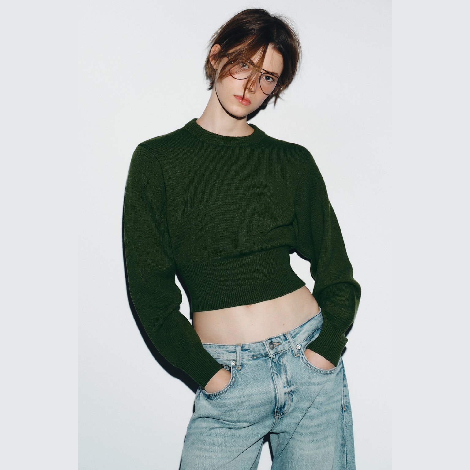 - التصميم: سويتر محبوك قصير أساسي (Cropped Plain Knit Jumper)