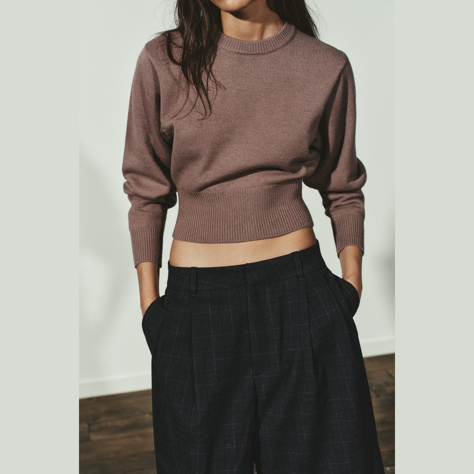- التصميم: سويتر محبوك قصير أساسي (Cropped Plain Knit Jumper)