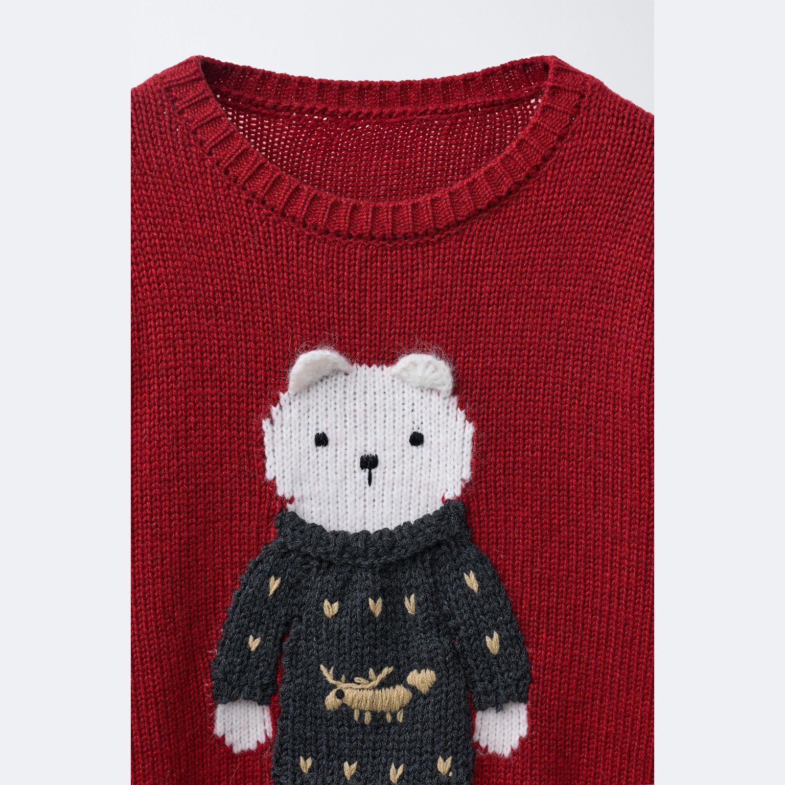 - التصميم: سويتر محبوك بمزيج الصوف مع تطريز دب (Wool Blend Knit Jumper with Embroidered Bear)