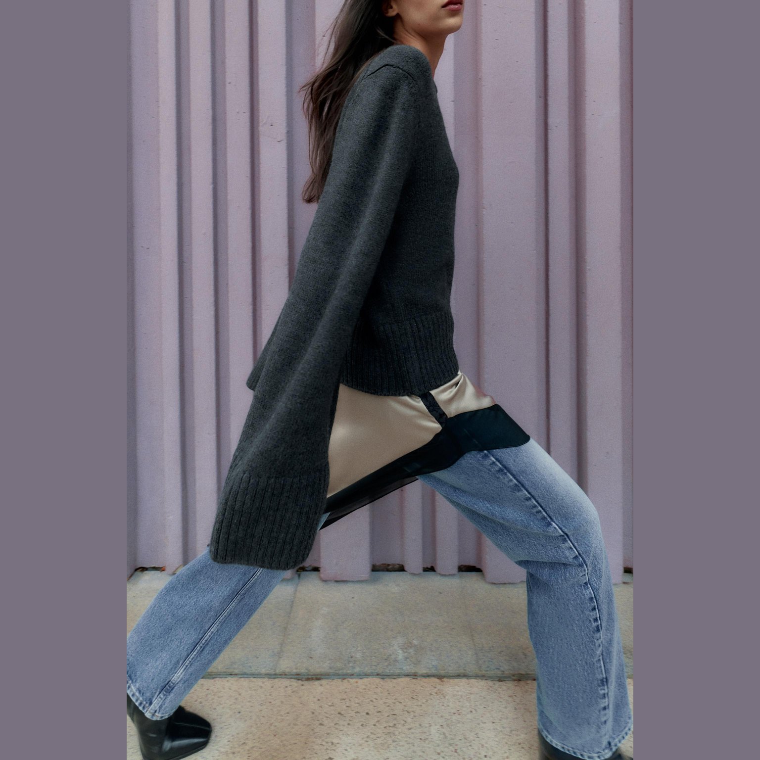 - التصميم: سويتر محبوك بحواف مضلعة (Knit Jumper with Ribbed Trims)