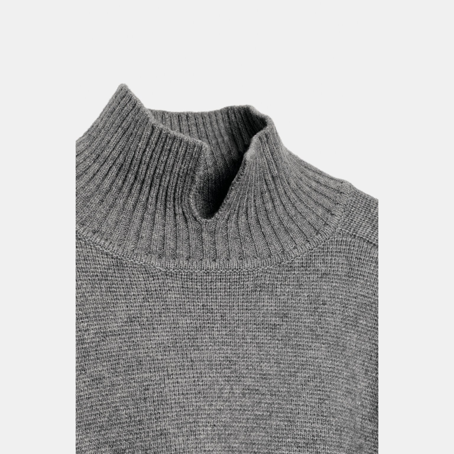 سويتر محبوك بياقة عالية مع فتحة أمامية – لون طبيعي (رمادي مموج) – Grey Marl (Knit Jumper with Neck Opening) سويتر أنيق بلون رمادي مموج طبيعي، مصنوع من خامة محبوكة عملية تمنح دفئًا وراحة، مع تصميم كلاسيكي بياقة عالية مزودة بفتحة أمامية تضيف لمسة عصرية مميزة. يتميز بأكمام طويلة مع أساور مضلعة وحواف أنيقة. قطعة مثالية للتنسيقات اليومية الكاجوال الأنيقة أو كطبقة أساسية في المواسم الانتقالية.