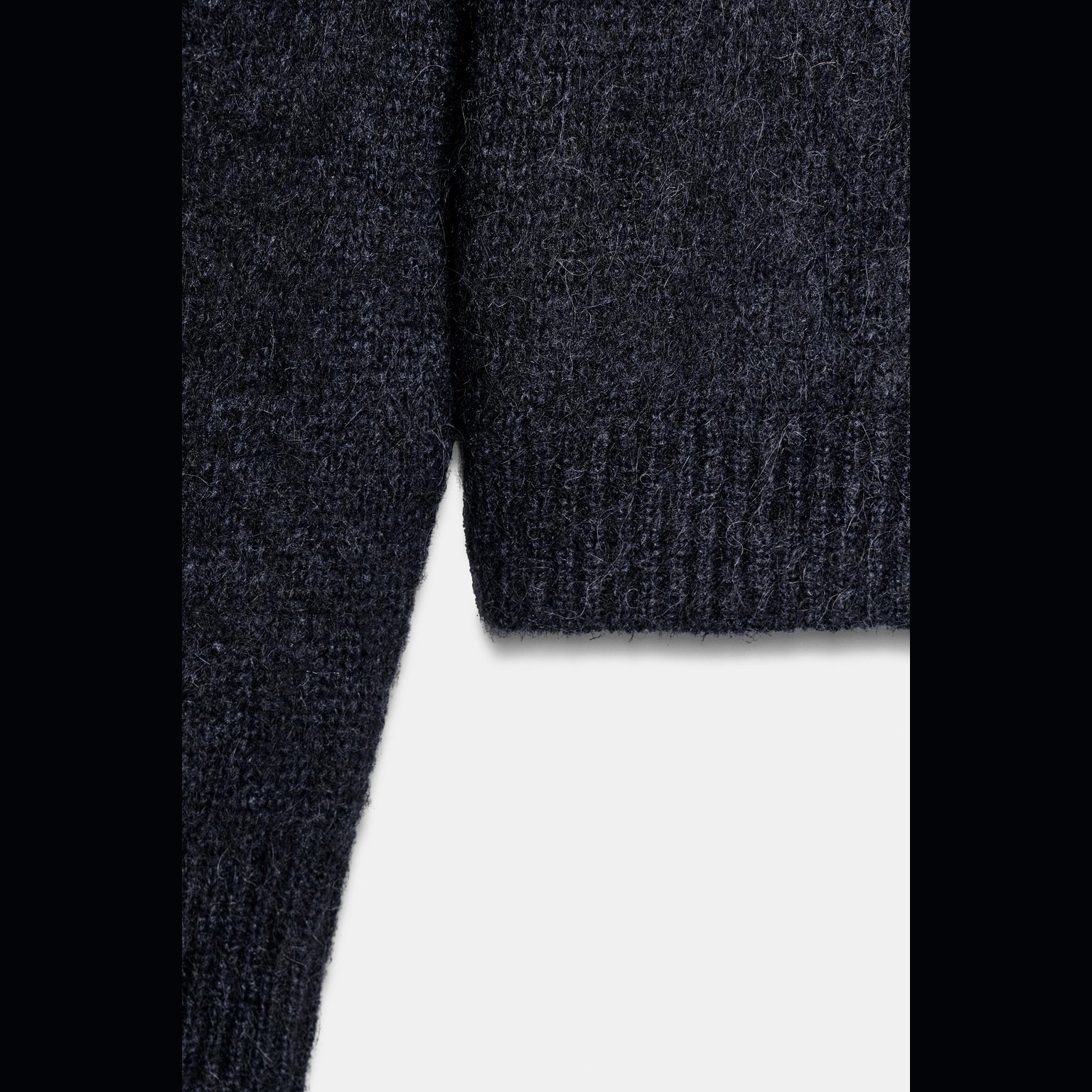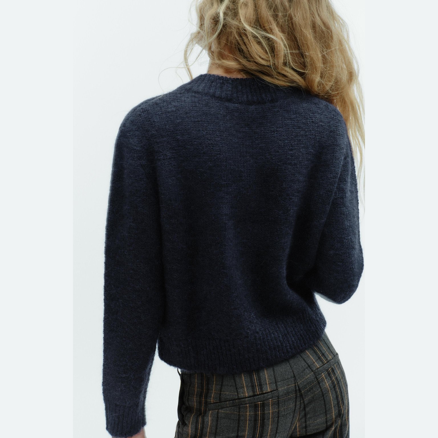 سويتر محبوك من الصوف والألباكا بياقة V – لون طبيعي (كحلي) – Navy Blue (Wool and Alpaca V-Neck Jumper) سويتر أنيق بلون كحلي طبيعي، مصنوع من مزيج فاخر من الصوف والألباكا يمنح دفئًا وملمسًا ناعمًا، مع تصميم كلاسيكي بياقة V تضيف لمسة عصرية مميزة. يتميز بأكمام طويلة وحواف مضلعة أنيقة. قطعة مثالية للتنسيقات اليومية الكاجوال الأنيقة أو كطبقة أساسية في المواسم الانتقالية.