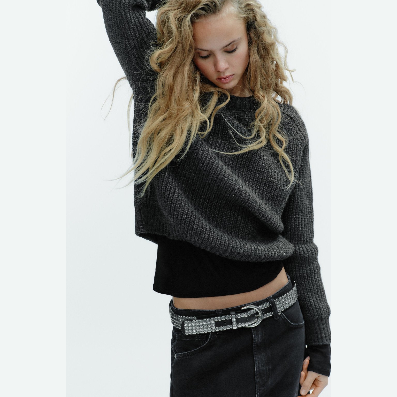 - التصميم: سويتر محبوك بنقشة بيرل (Purl Knit Jumper)