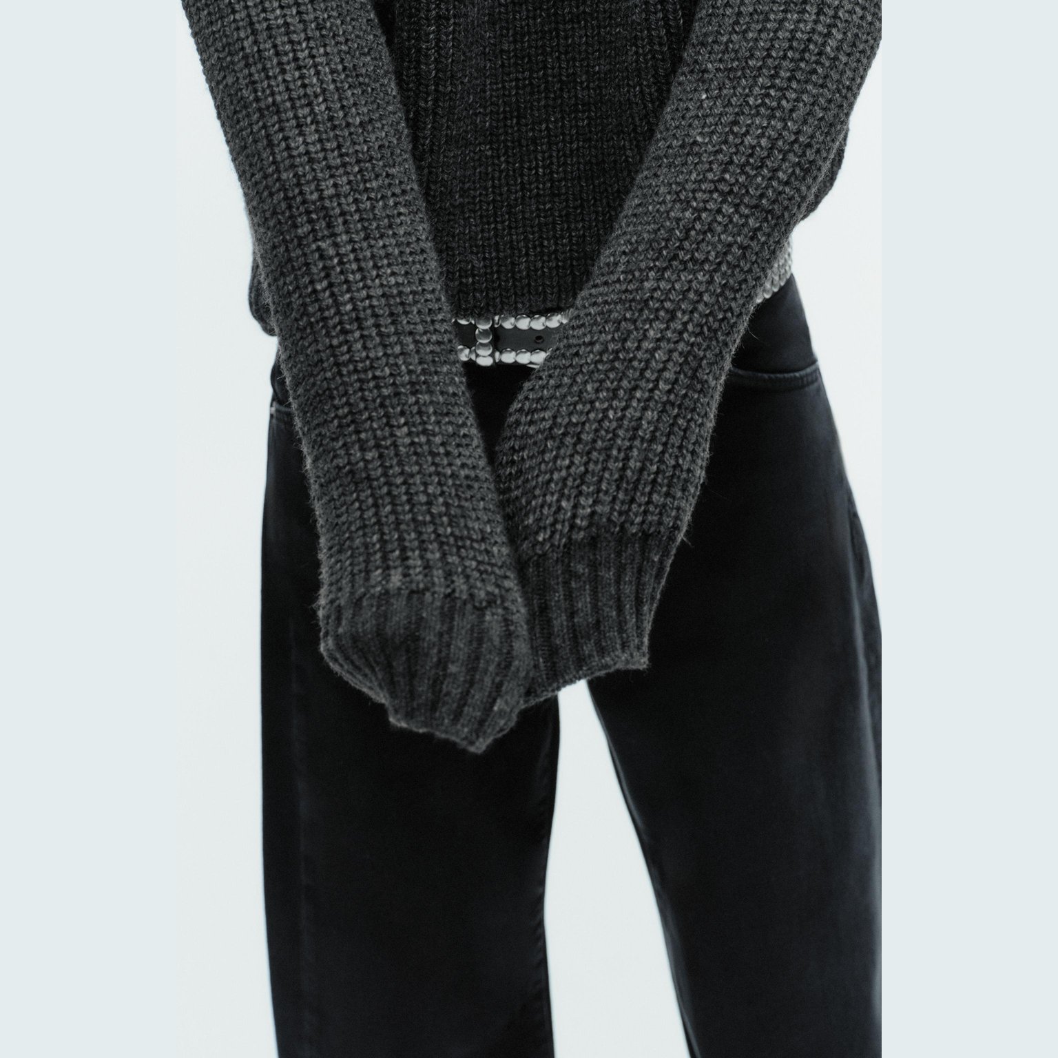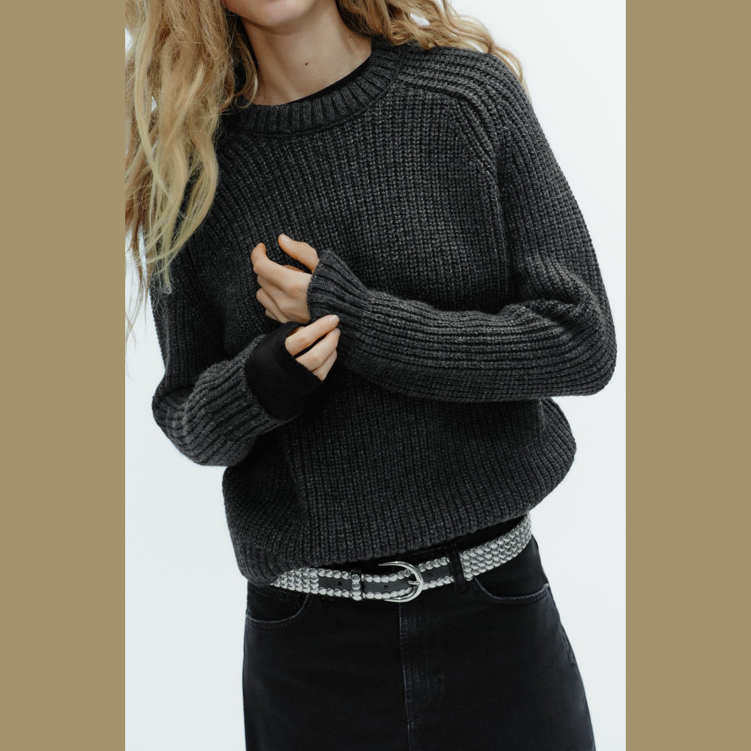 سويتر محبوك بنقشة بيرل – لون طبيعي (رمادي داكن) – Dark Grey (Purl Knit Jumper) سويتر أنيق بلون رمادي داكن طبيعي، مصنوع من خامة محبوكة عملية تمنح دفئًا وراحة، مع تصميم كلاسيكي بنقشة بيرل تضيف لمسة عصرية مميزة. يتميز بياقة مستديرة، أكمام طويلة، وحواف مضلعة أنيقة. قطعة مثالية للتنسيقات اليومية الكاجوال الأنيقة أو كطبقة أساسية في المواسم الانتقالية.