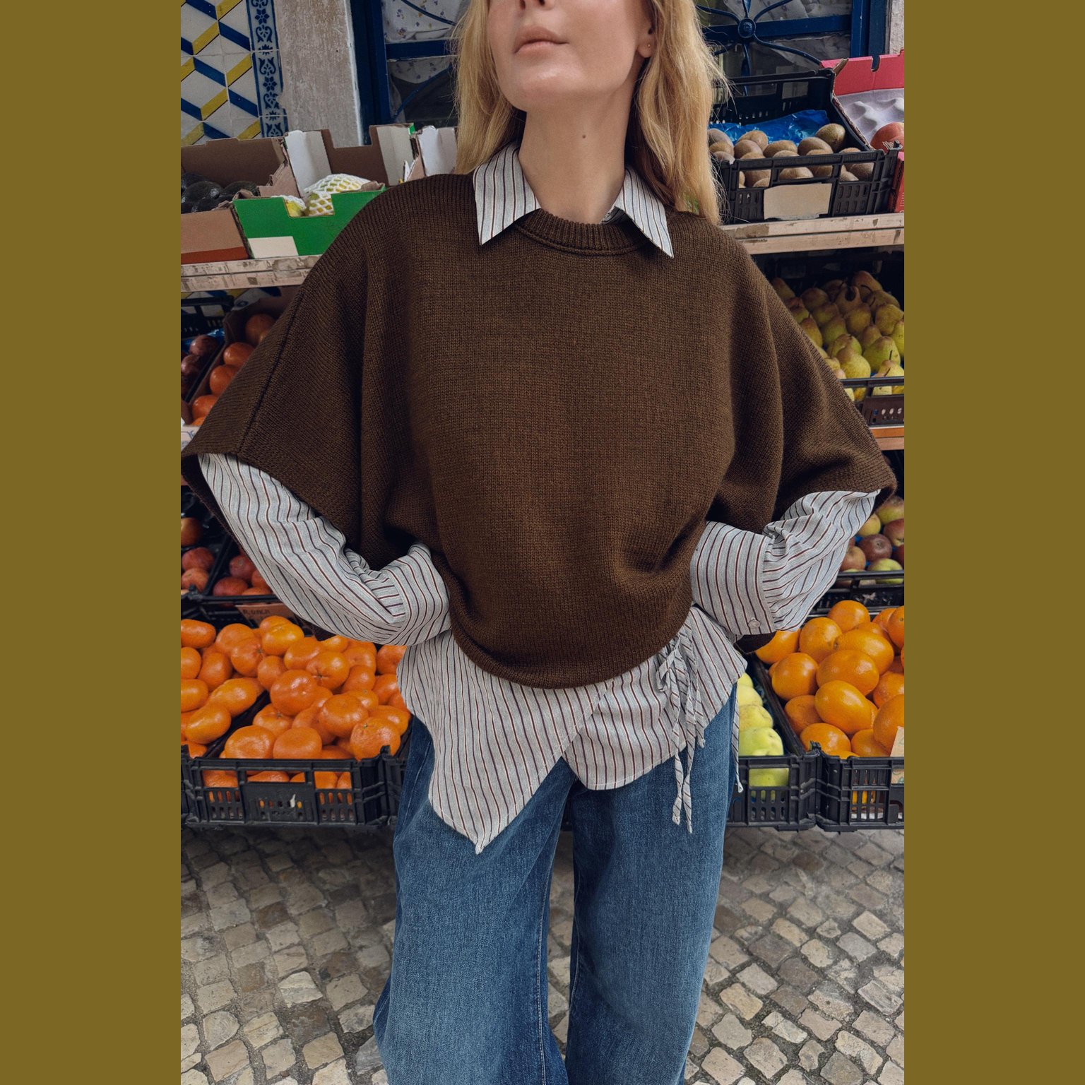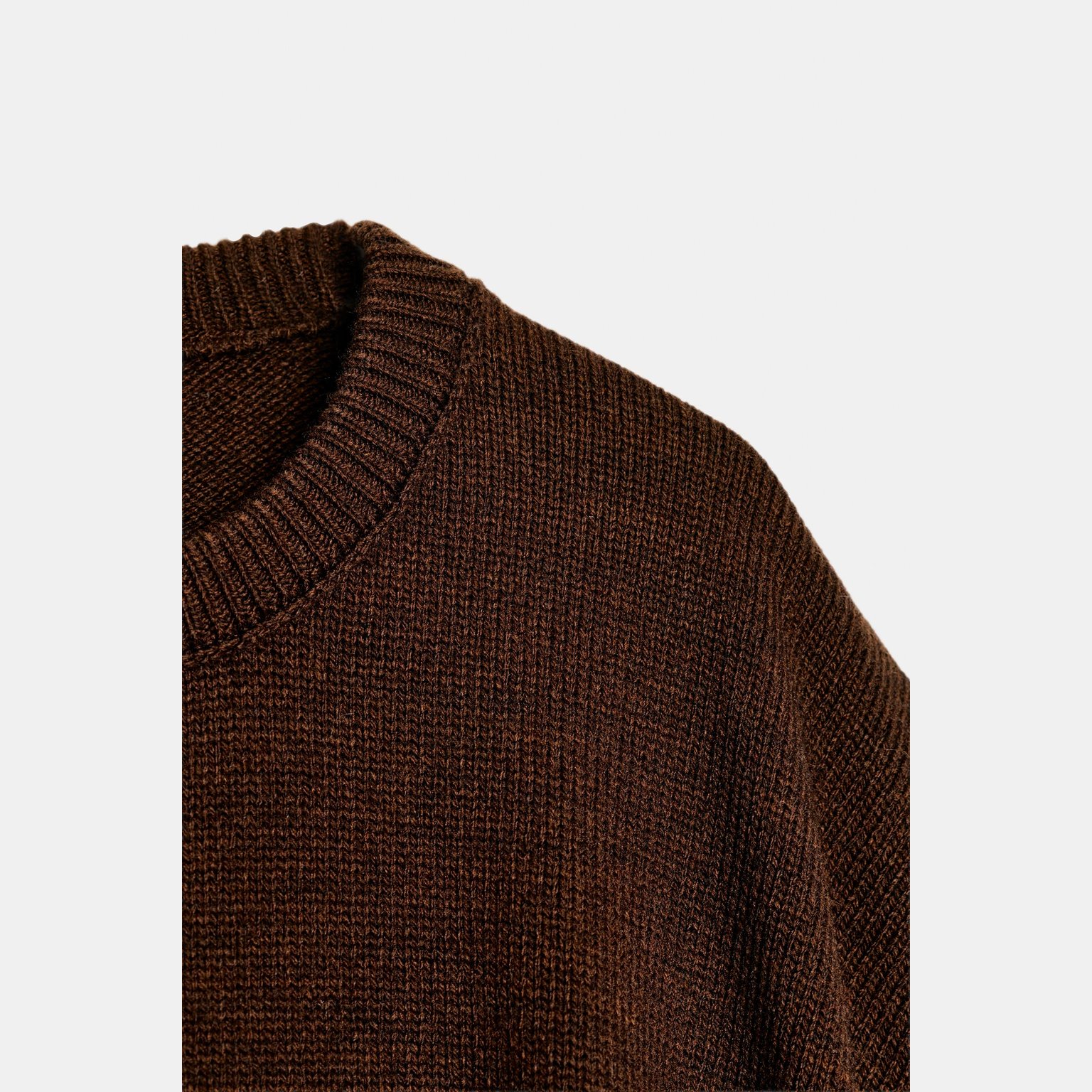 سويتر محبوك بأكمام واسعة – لون طبيعي (بني) – Brown (Knit Jumper with Wide Sleeves) سويتر أنيق بلون بني طبيعي، مصنوع من خامة محبوكة عملية تمنح دفئًا وراحة، مع تصميم كلاسيكي مزود بأكمام واسعة تضيف لمسة عصرية مميزة. يتميز بياقة مستديرة، أكمام طويلة واسعة، وحواف مضلعة أنيقة. قطعة مثالية للتنسيقات اليومية الكاجوال الأنيقة أو كطبقة إضافية في المواسم الانتقالية.