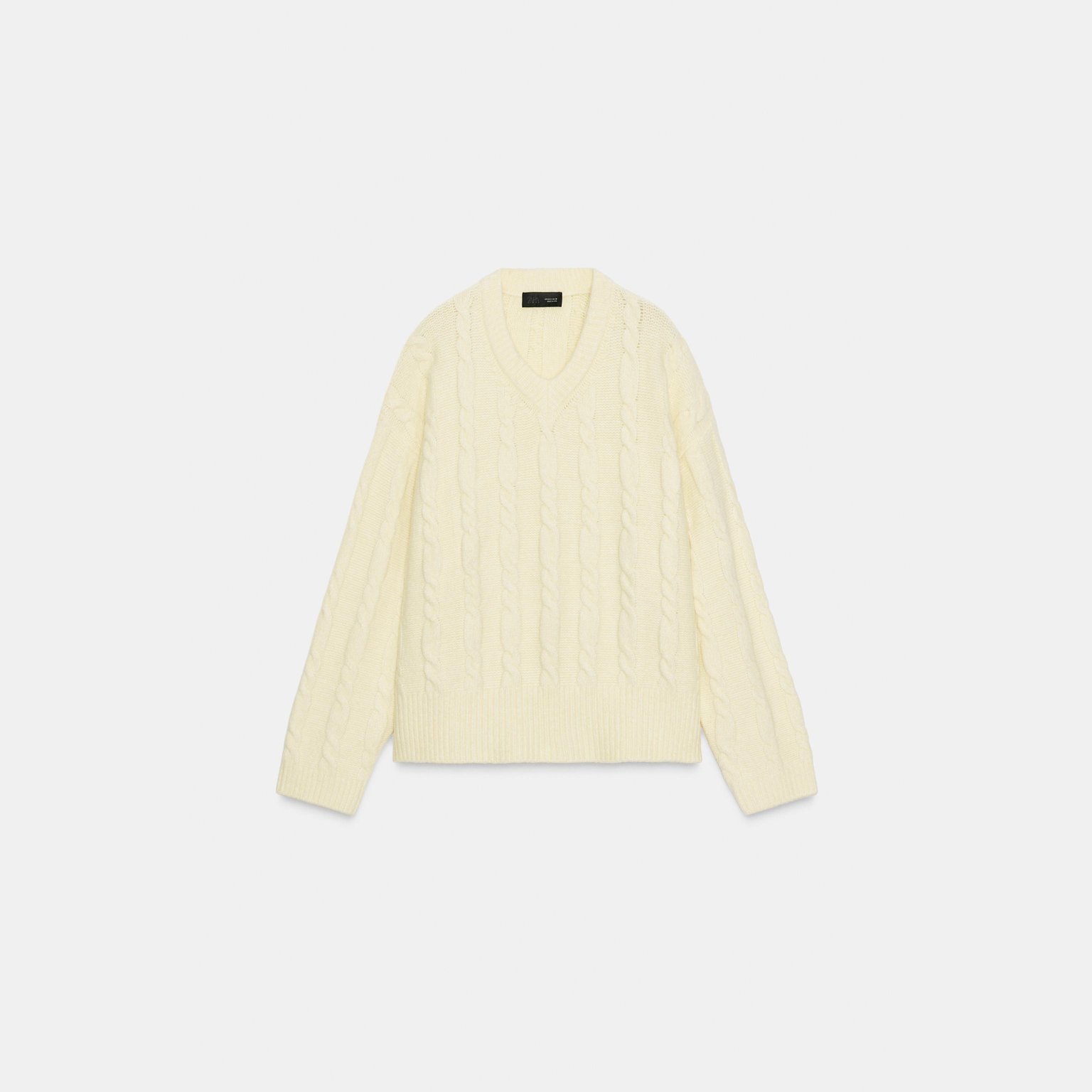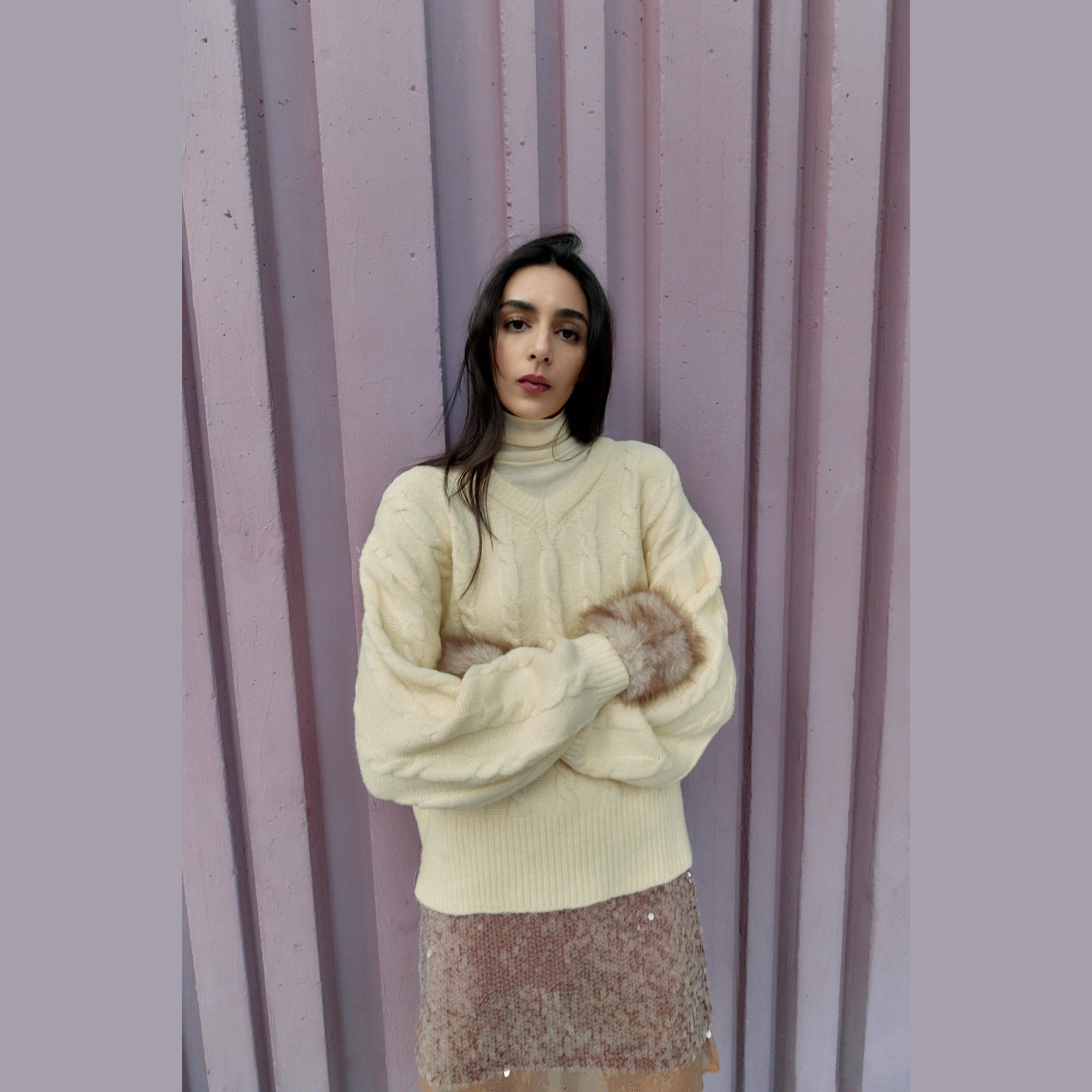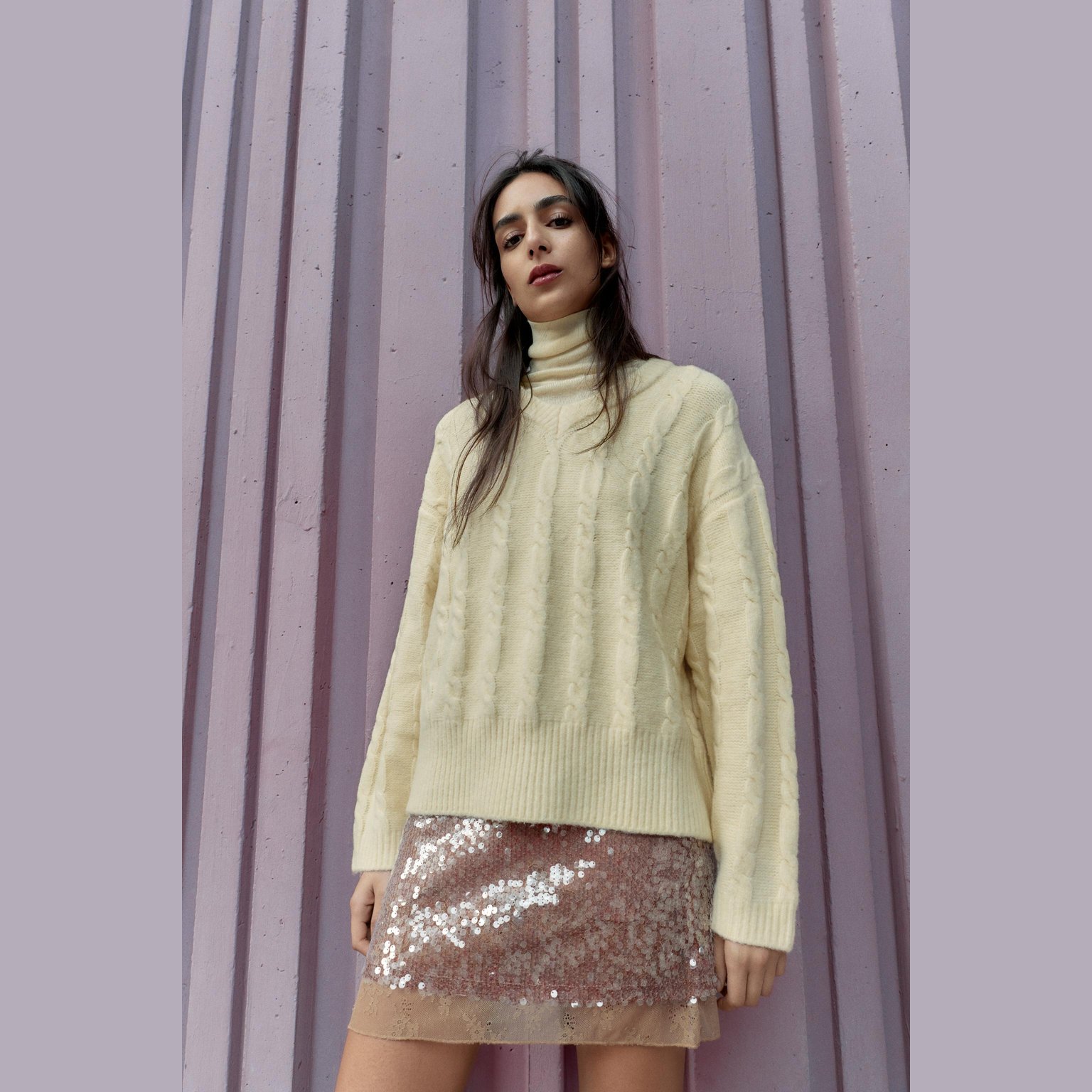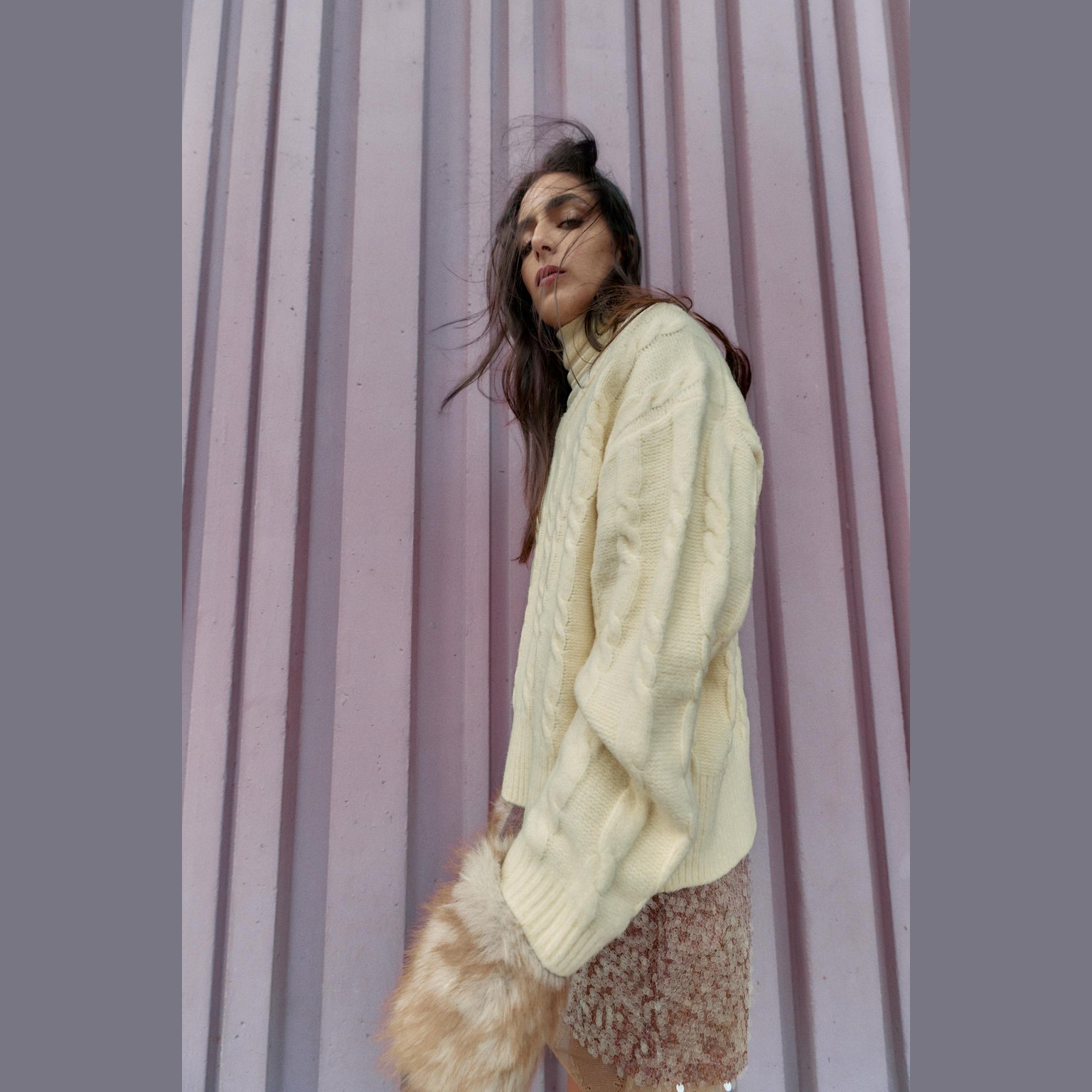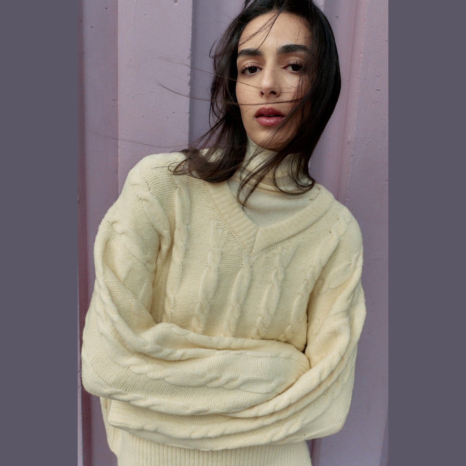 - التصميم: سويتر محبوك بنقشة كابل ناعمة (Soft Cable Knit Jumper)
