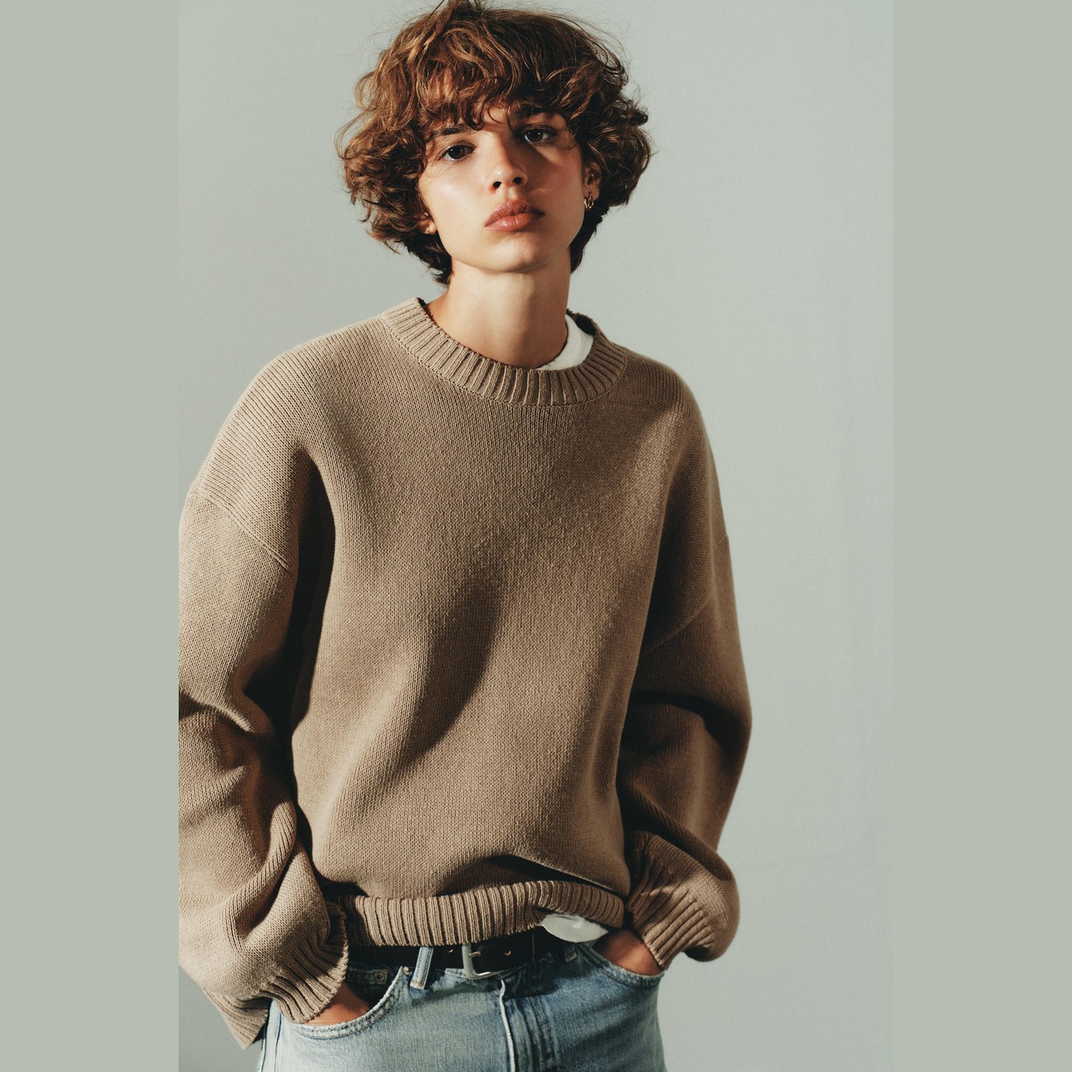 - التصميم: سويتر محبوك واسع (Oversized Knit Jumper)