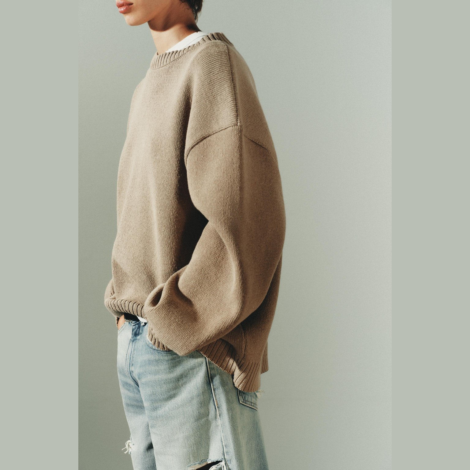 سويتر محبوك واسع – لون طبيعي (بيج فاتح) – Light Beige (Oversized Knit Jumper) سويتر أنيق بلون بيج فاتح طبيعي، مصنوع من خامة محبوكة عملية تمنح دفئًا وراحة، مع تصميم واسع فضفاض يمنح إطلالة عصرية مميزة. يتميز بياقة مستديرة، أكمام طويلة، وحواف مضلعة أنيقة. قطعة مثالية للتنسيقات اليومية الكاجوال الأنيقة أو كطبقة إضافية في المواسم الانتقالية.