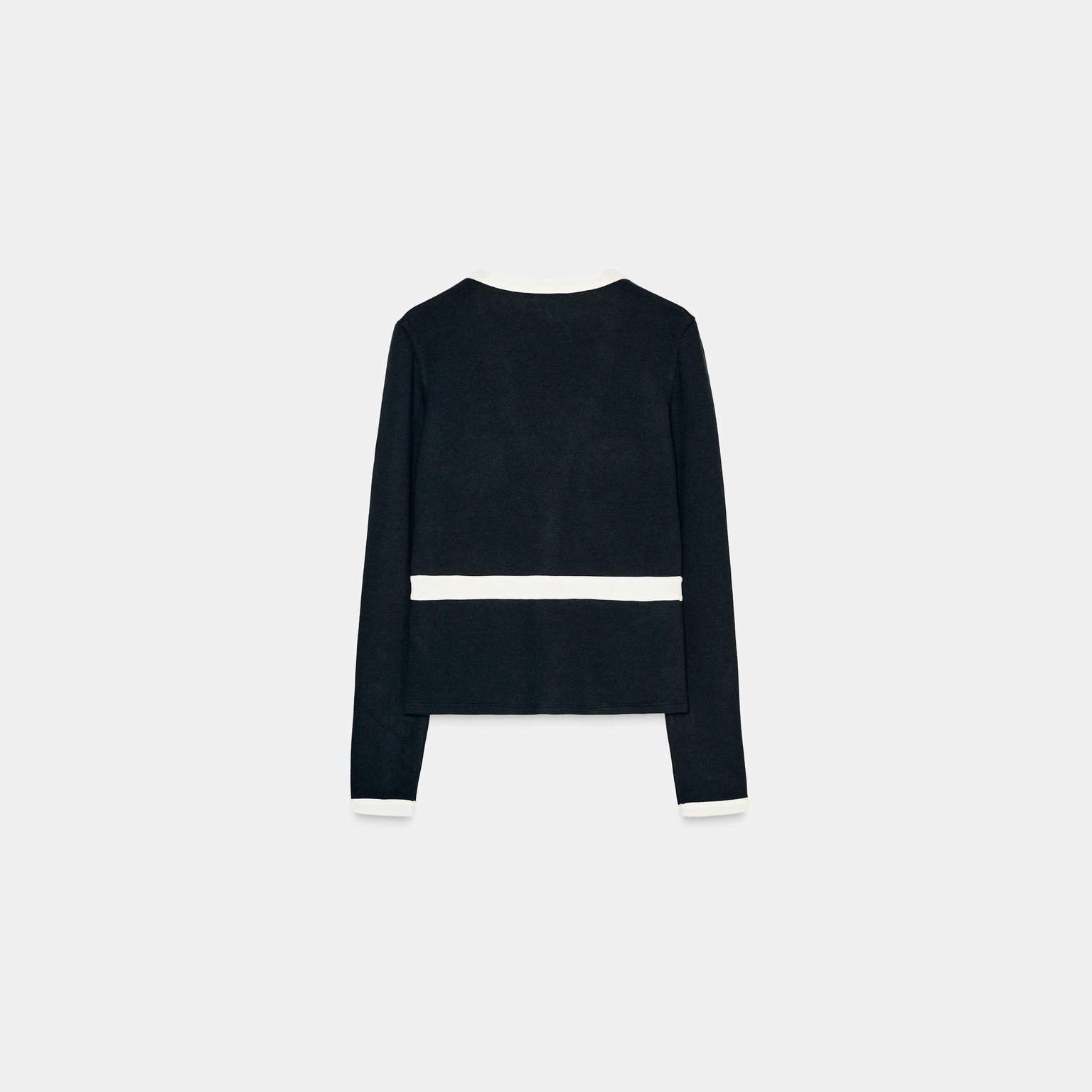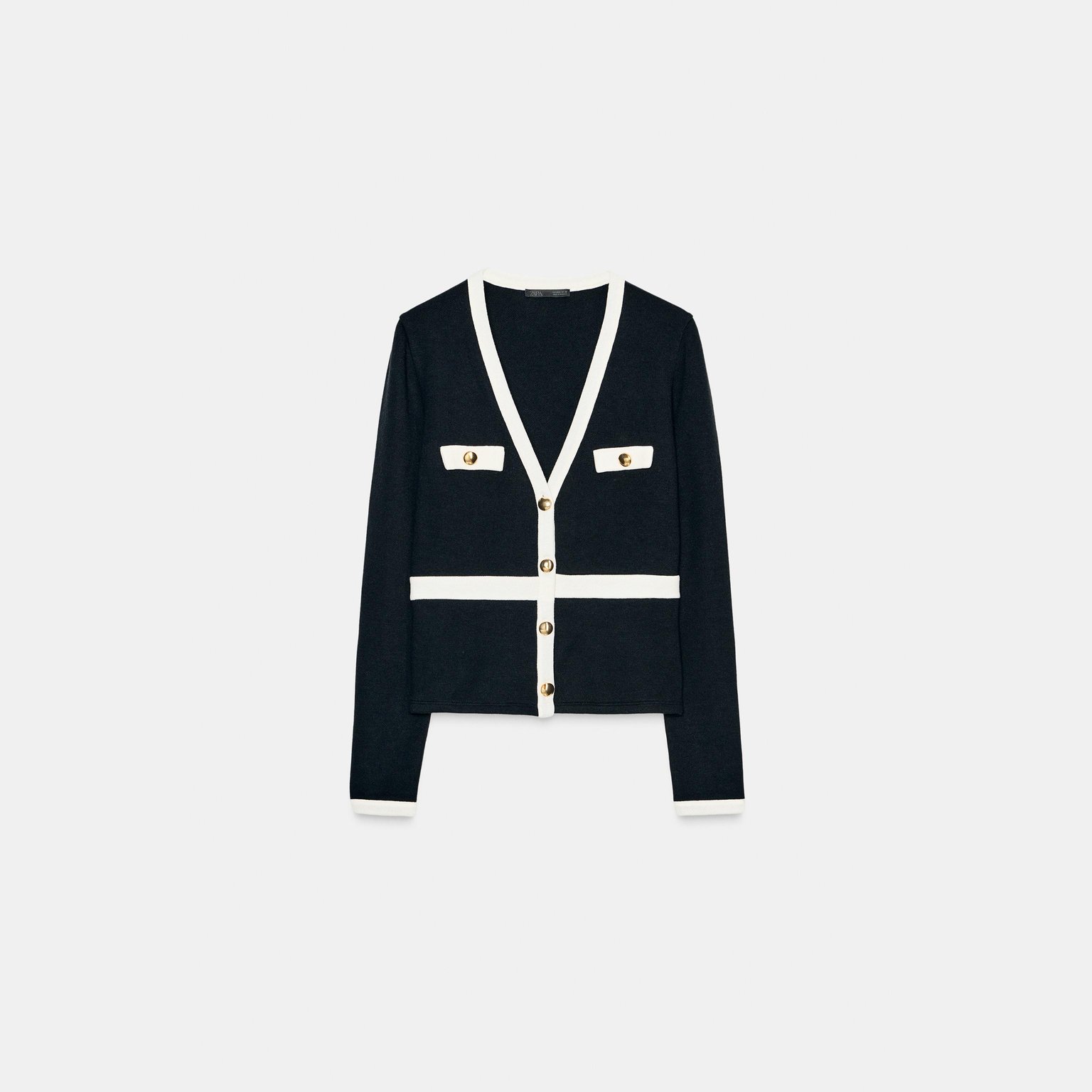 - التصميم: كارديغان محبوك بتفاصيل متباينة (Soft Contrast Cardigan)