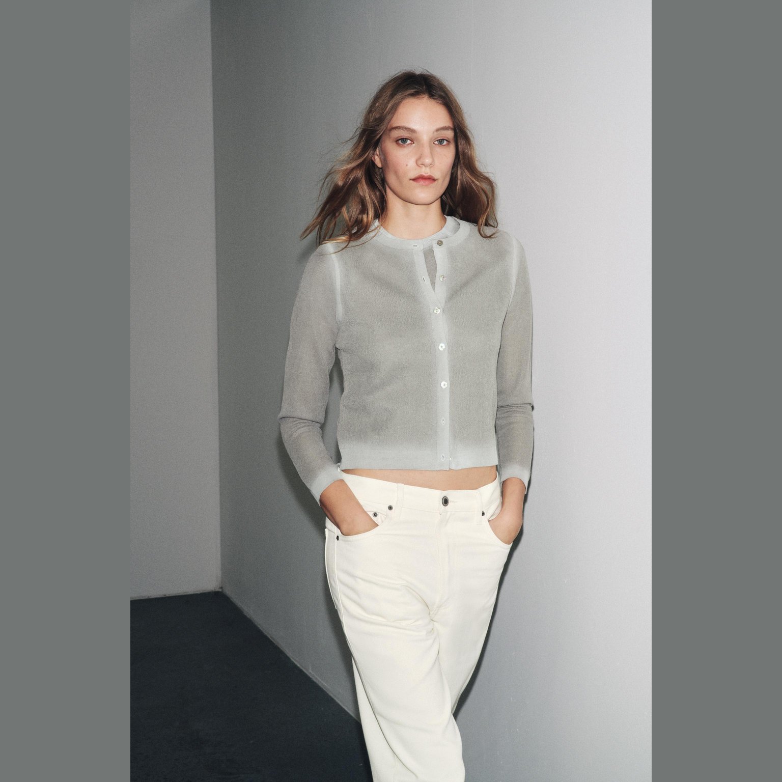 كارديغان محبوك بتأثير باهت – لون طبيعي (رمادي) – Grey (Faded Effect Cardigan) كارديغان أنيق بلون رمادي طبيعي، مصنوع من خامة محبوكة بتأثير باهت يمنح لمسة عصرية مميزة. يتميز بياقة مستديرة، أكمام طويلة، وأزرار أمامية للإغلاق. قطعة مثالية للتنسيقات اليومية الكاجوال الأنيقة أو كطبقة إضافية في المواسم الانتقالية.