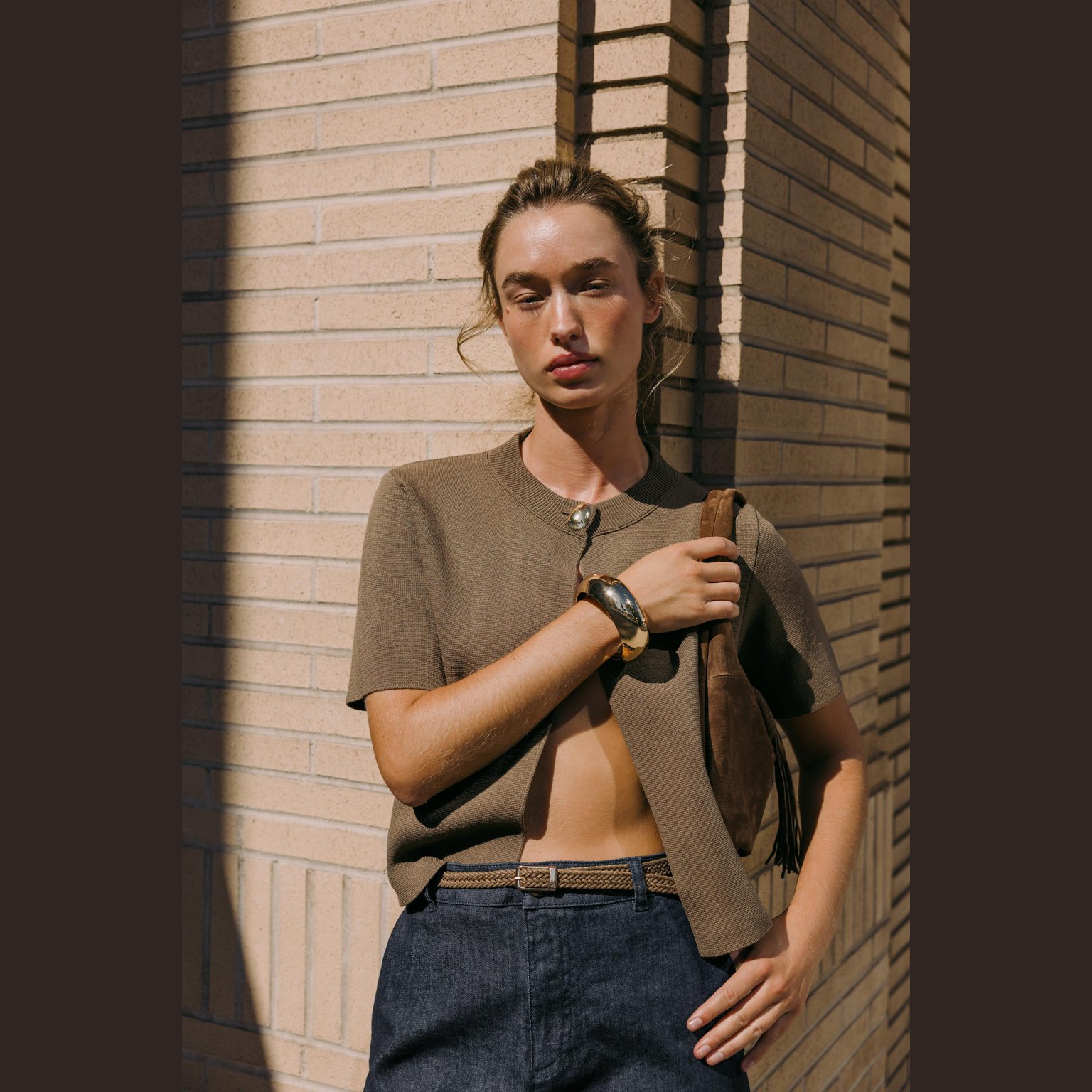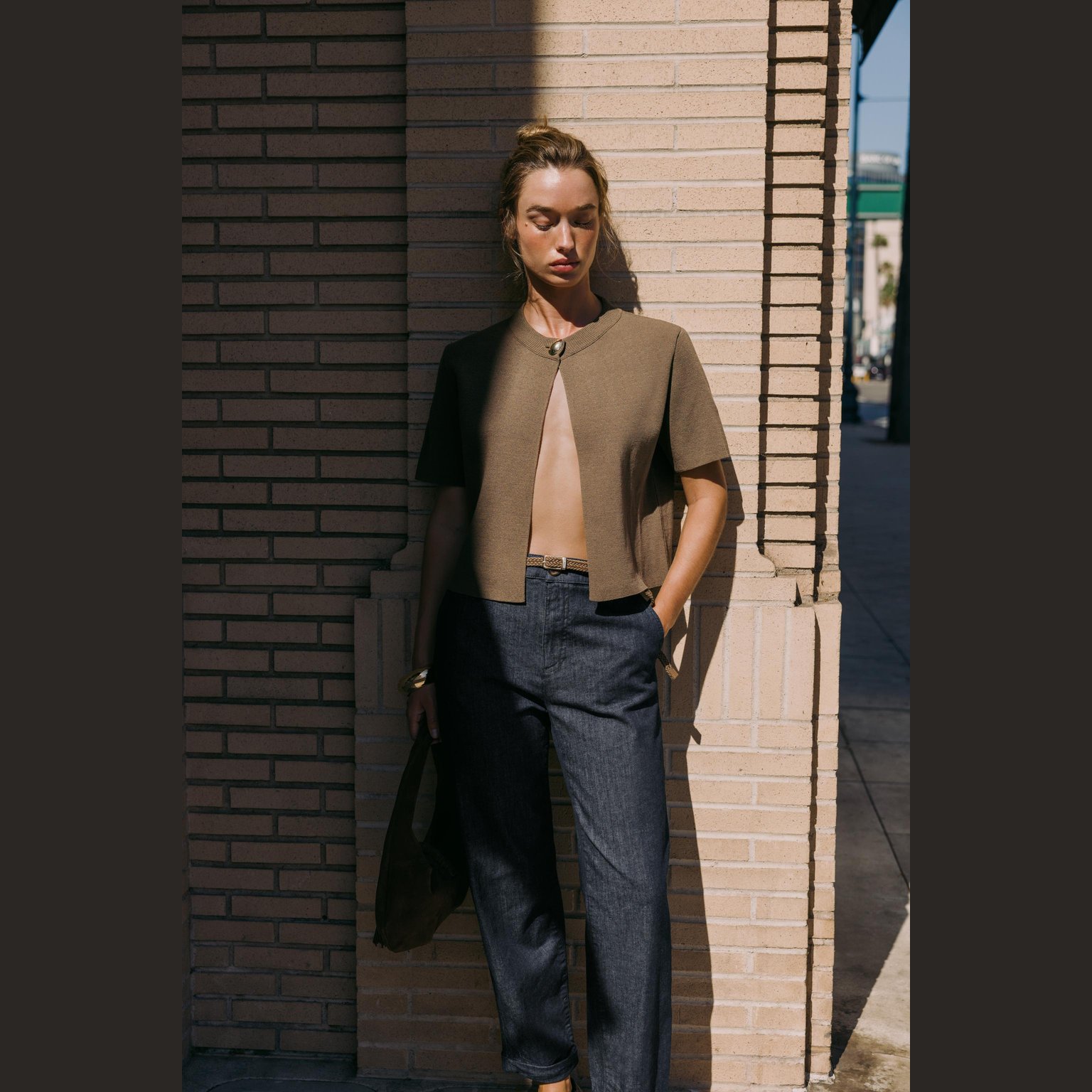 كارديغان قصير الأكمام – لون طبيعي (كاكي) – Khaki (Short Sleeve Cardigan) كارديغان أنيق بلون كاكي طبيعي، مصنوع من خامة محبوكة عملية تمنح راحة وملمسًا ناعمًا، مع تصميم قصير الأكمام مزود بياقة مستديرة وأزرار أمامية للإغلاق. قطعة مثالية للتنسيقات اليومية الكاجوال الأنيقة أو كطبقة خفيفة في المواسم الانتقالية.