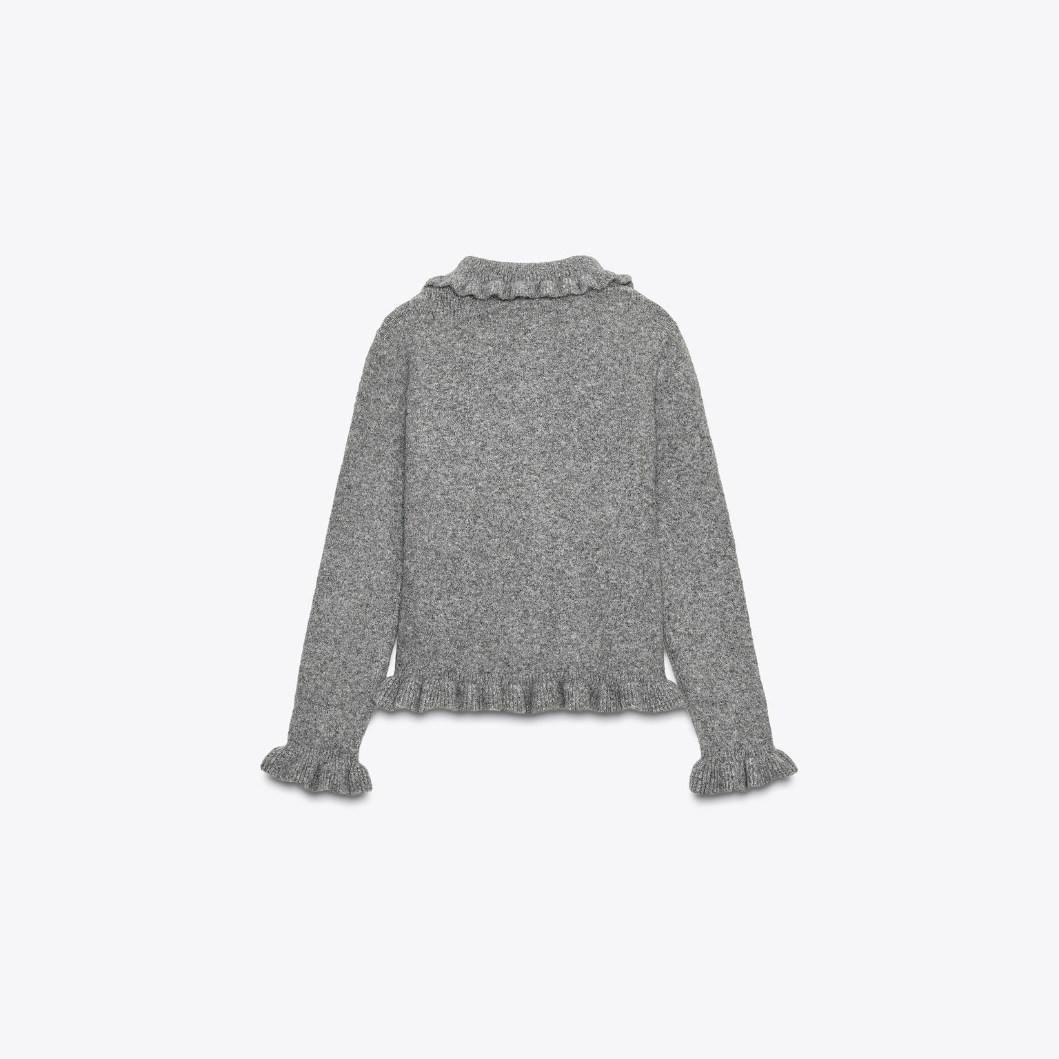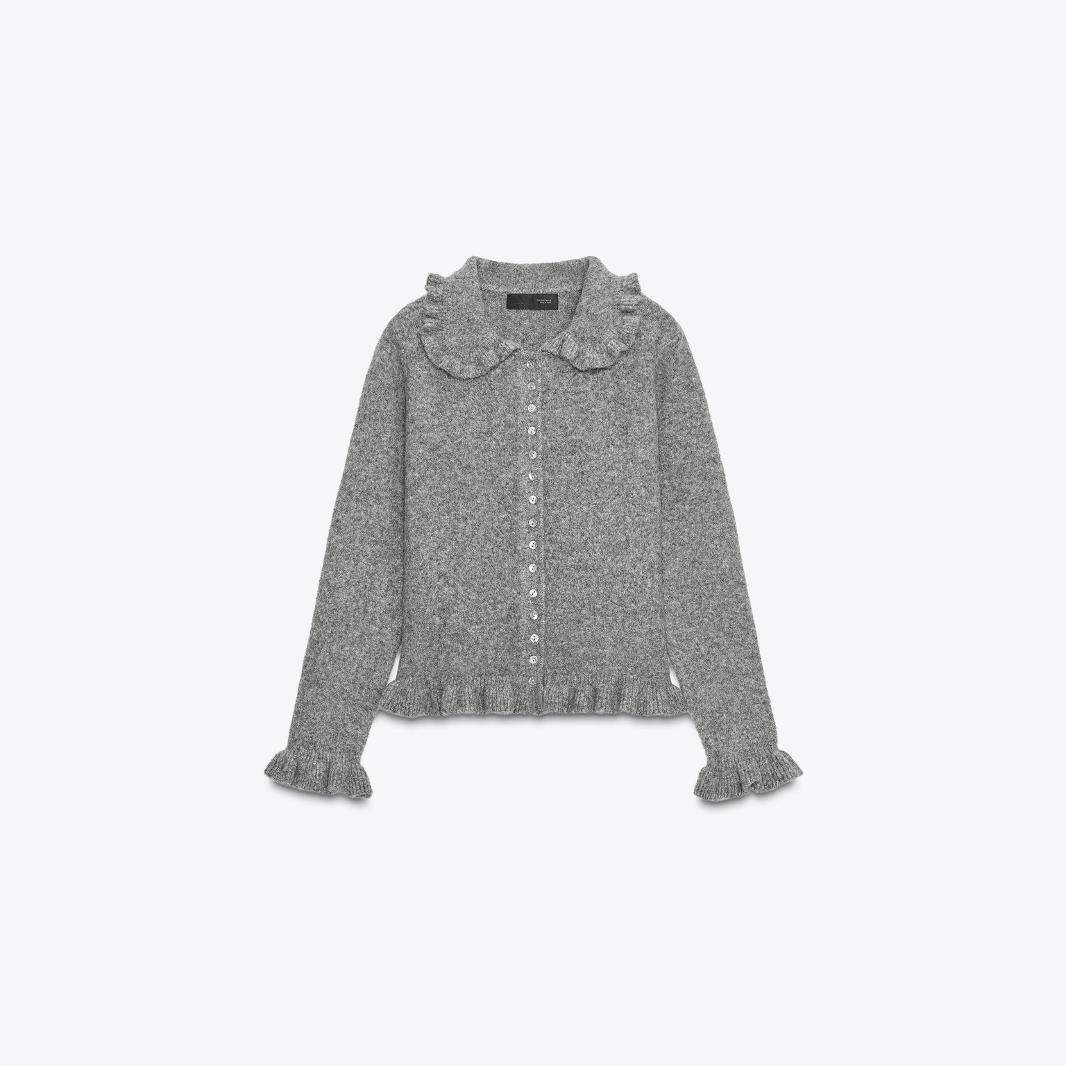 - التصميم: كارديغان محبوك مزين بكشكش (Knit Cardigan with Ruffle Trims)