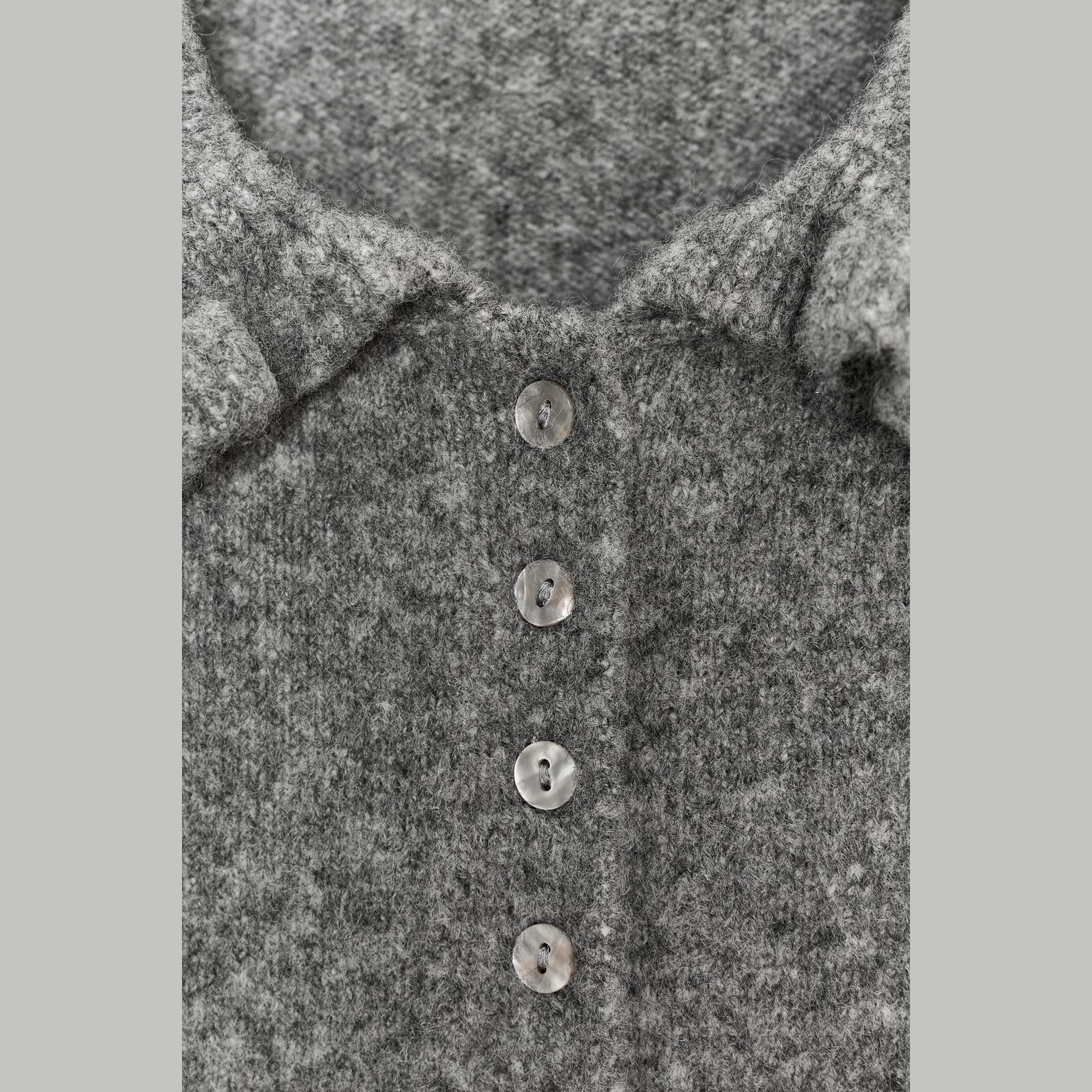 كارديغان محبوك مزين بكشكش – لون طبيعي (رمادي) – Grey (Knit Cardigan with Ruffle Trims) كارديغان أنيق بلون رمادي طبيعي، مصنوع من خامة محبوكة عملية تمنح راحة وملمسًا ناعمًا، مع تصميم كلاسيكي مزود بياقة مطوية وأكمام طويلة. يتميز بتفاصيل كشكش أنثوية على الحواف وأزرار أمامية للإغلاق، مما يمنح لمسة عصرية أنيقة. قطعة مثالية للتنسيقات اليومية الكاجوال الأنيقة أو كطبقة إضافية في المواسم الانتقالية.