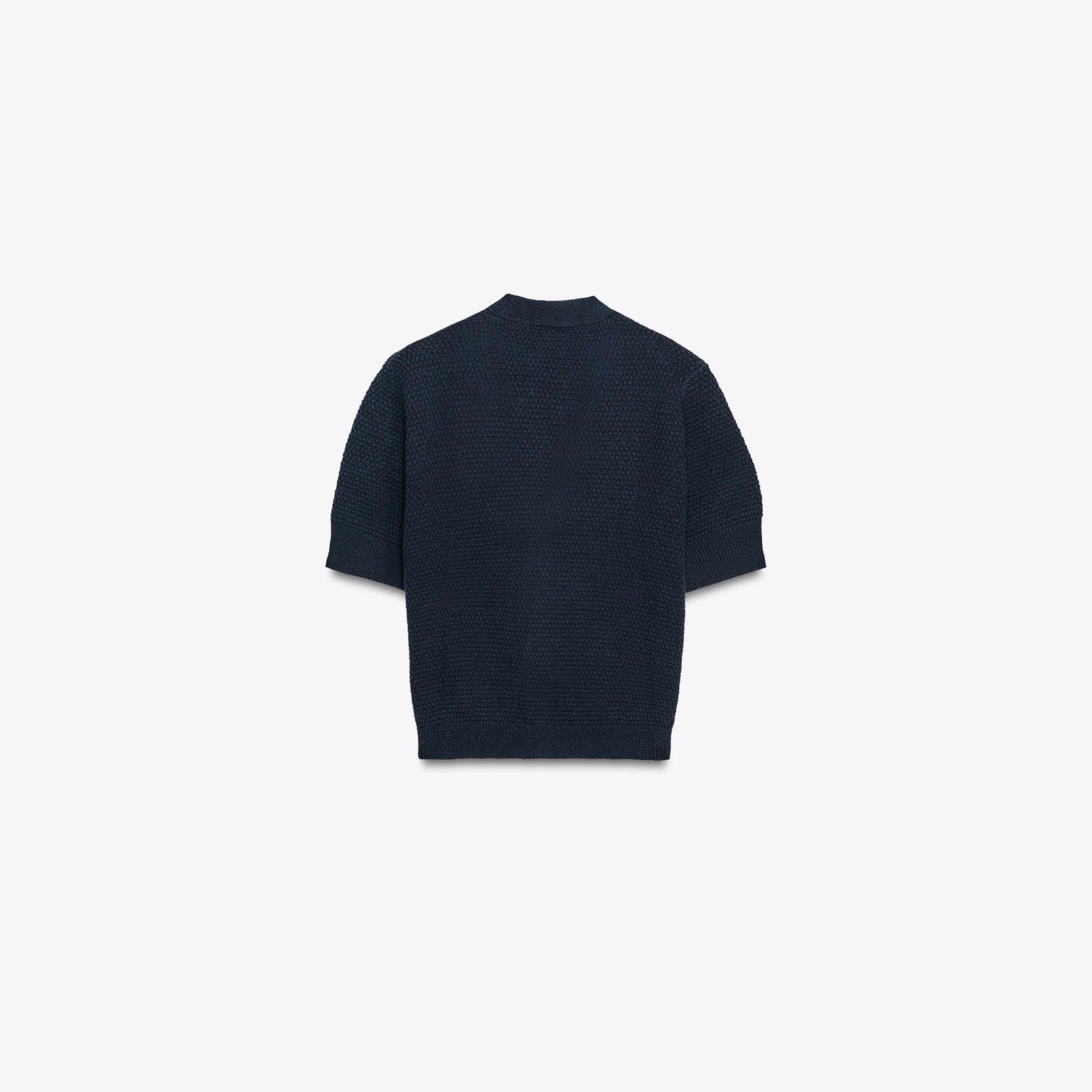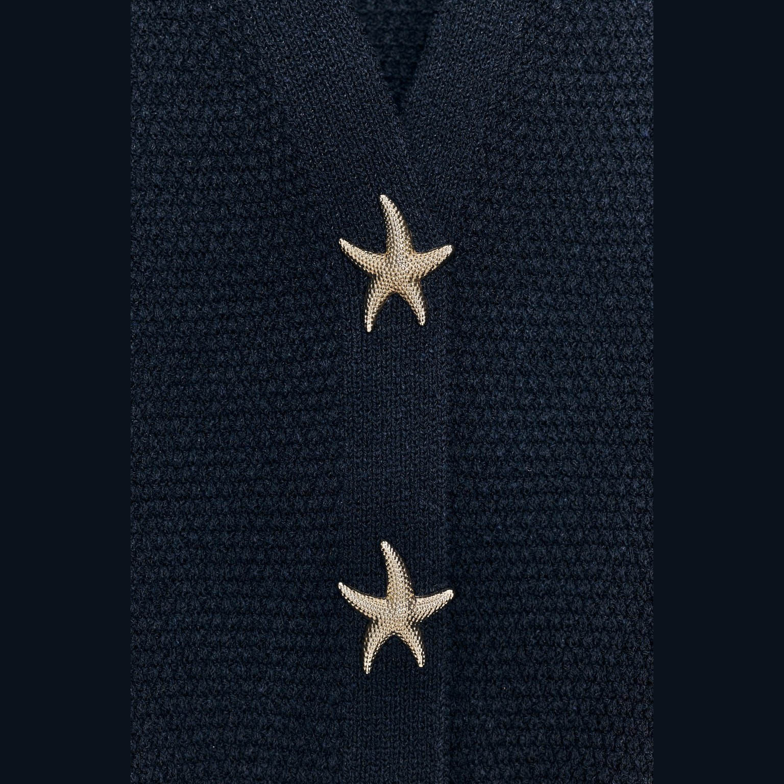 كارديغان محبوك بنسيج بارز وأزرار نجوم – لون طبيعي (كحلي) – Navy Blue (Star Button Textured Knit Cardigan) كارديغان أنيق بلون كحلي طبيعي، مصنوع من خامة محبوكة بنسيج بارز يمنح لمسة عصرية مميزة، مع تصميم قصير الأكمام مزود بياقة V وأزرار أمامية على شكل نجوم تضيف لمسة فريدة. قطعة مثالية للتنسيقات اليومية الكاجوال الأنيقة أو كطبقة إضافية في المواسم الانتقالية.