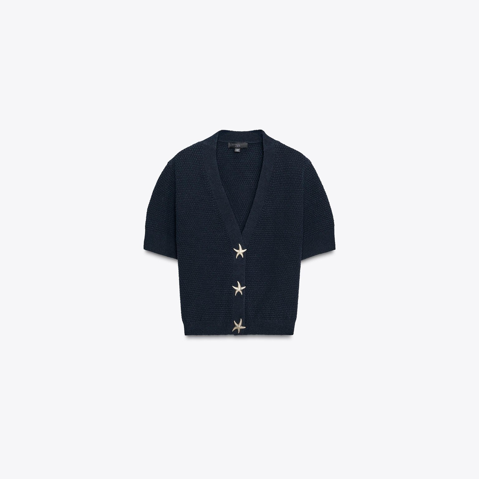 - التصميم: كارديغان محبوك بنسيج بارز وأزرار نجوم (Star Button Textured Knit Cardigan)