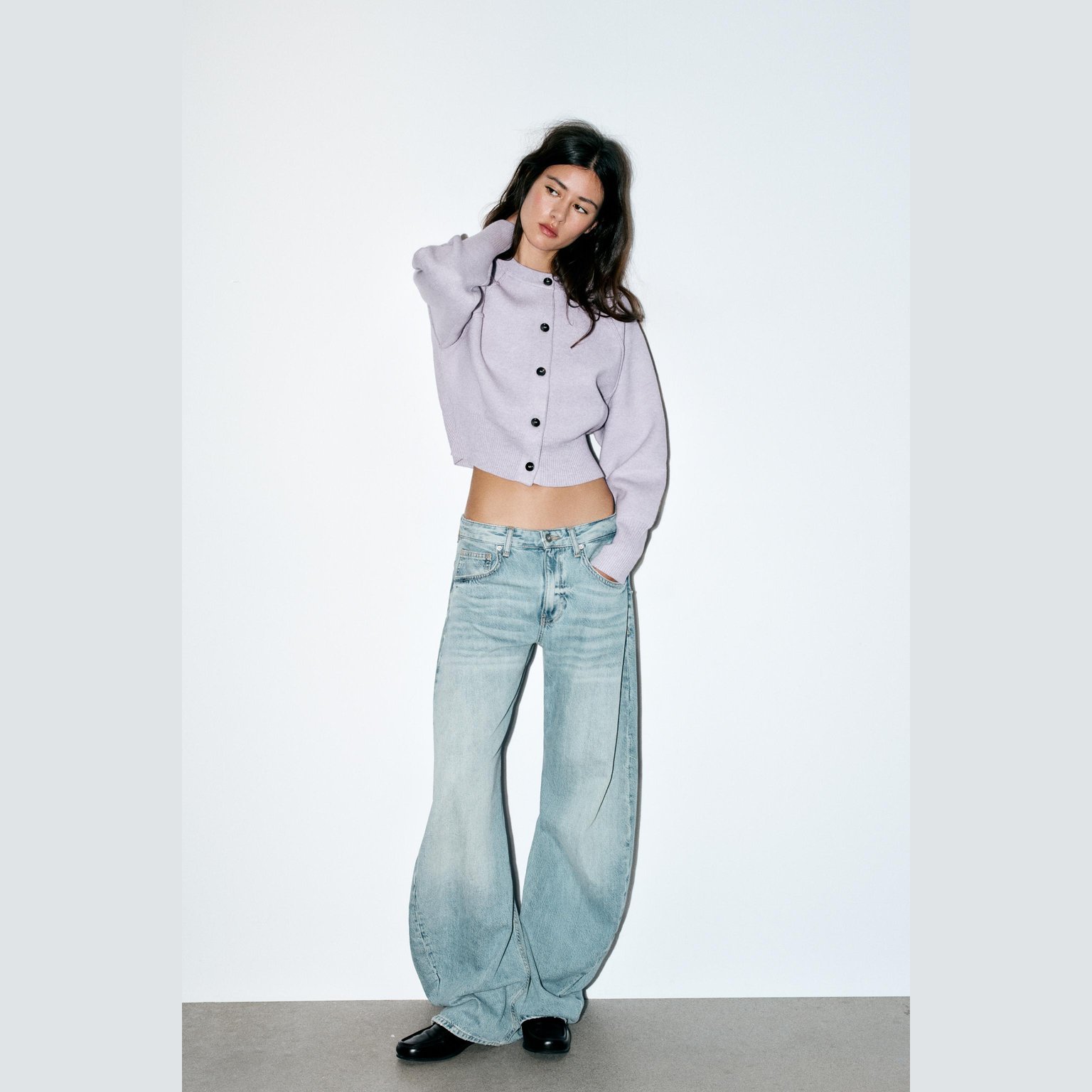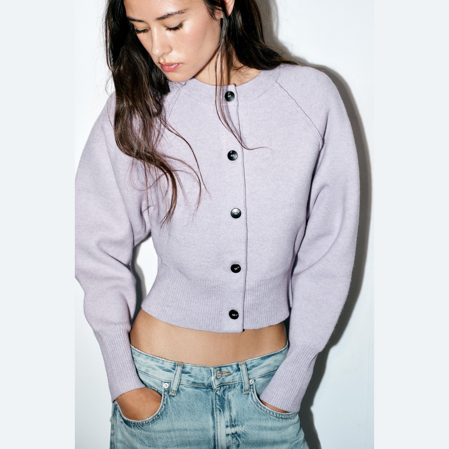 - التصميم: كارديغان محبوك قصير (Cropped Knit Cardigan)