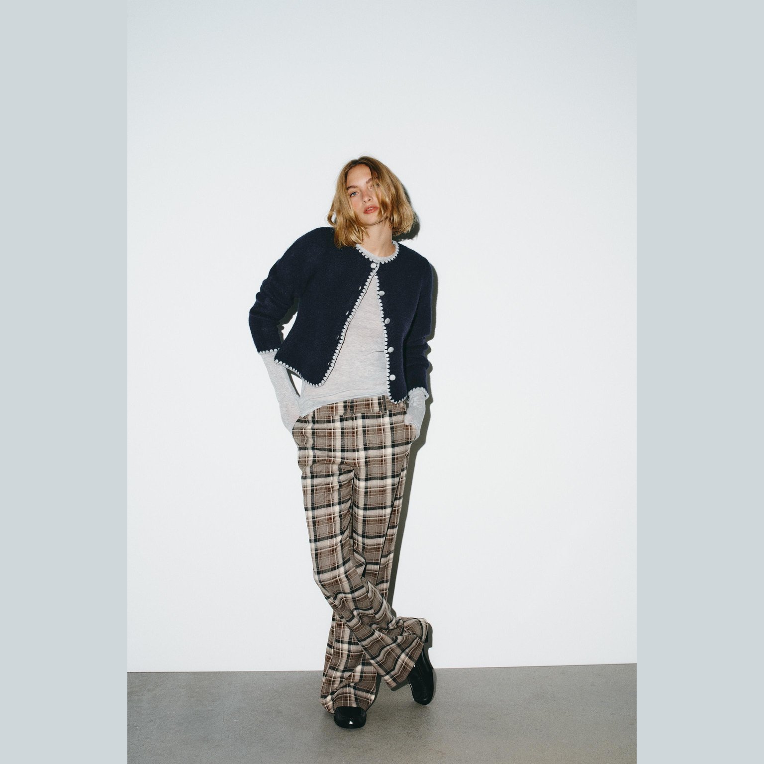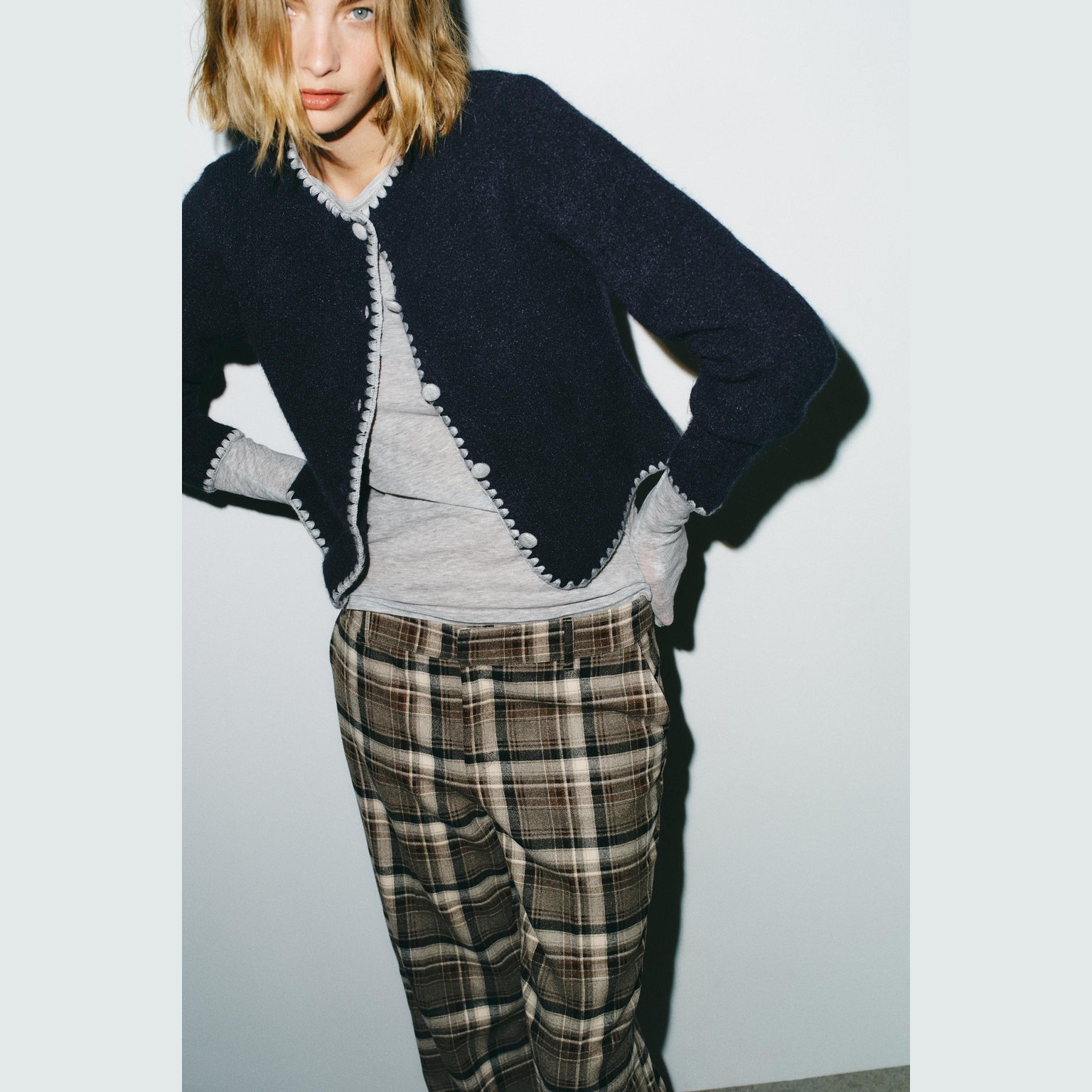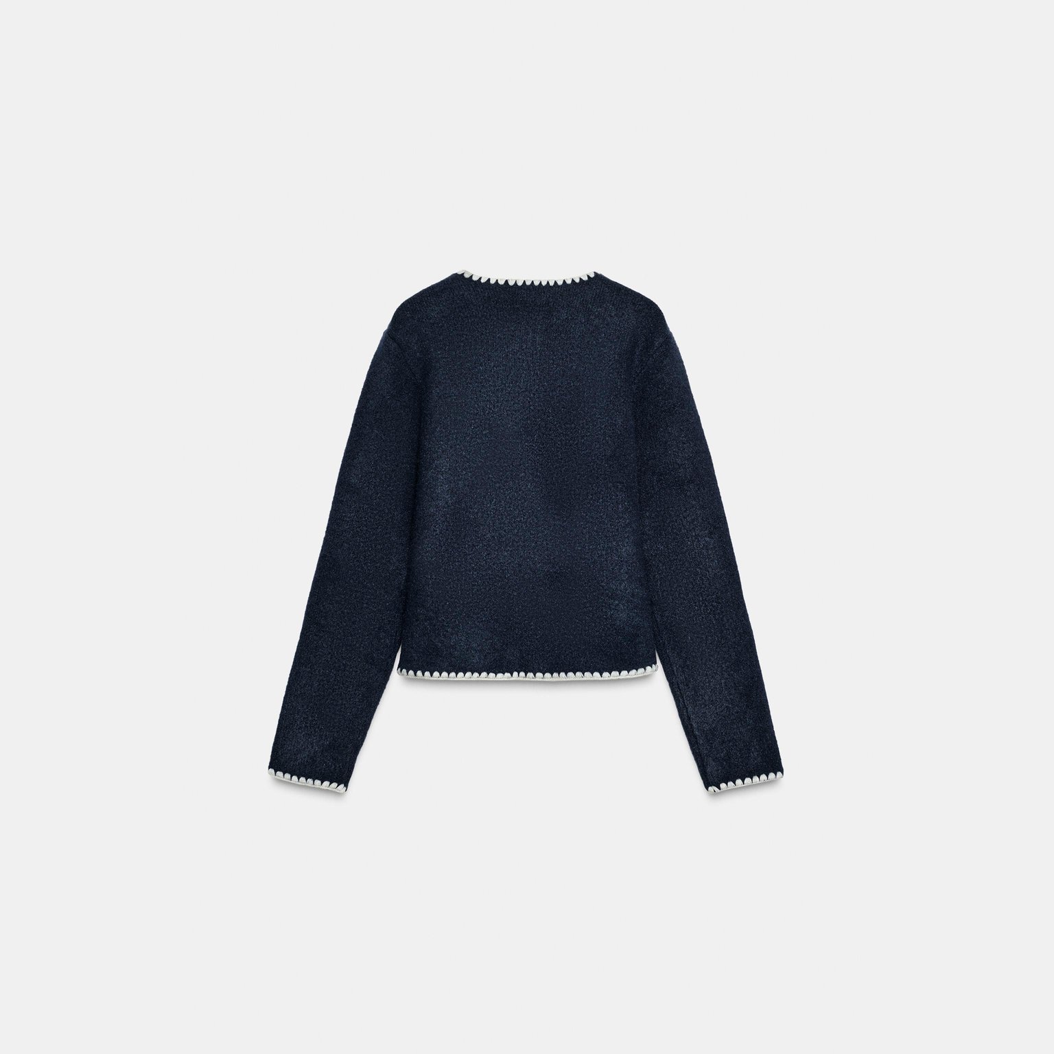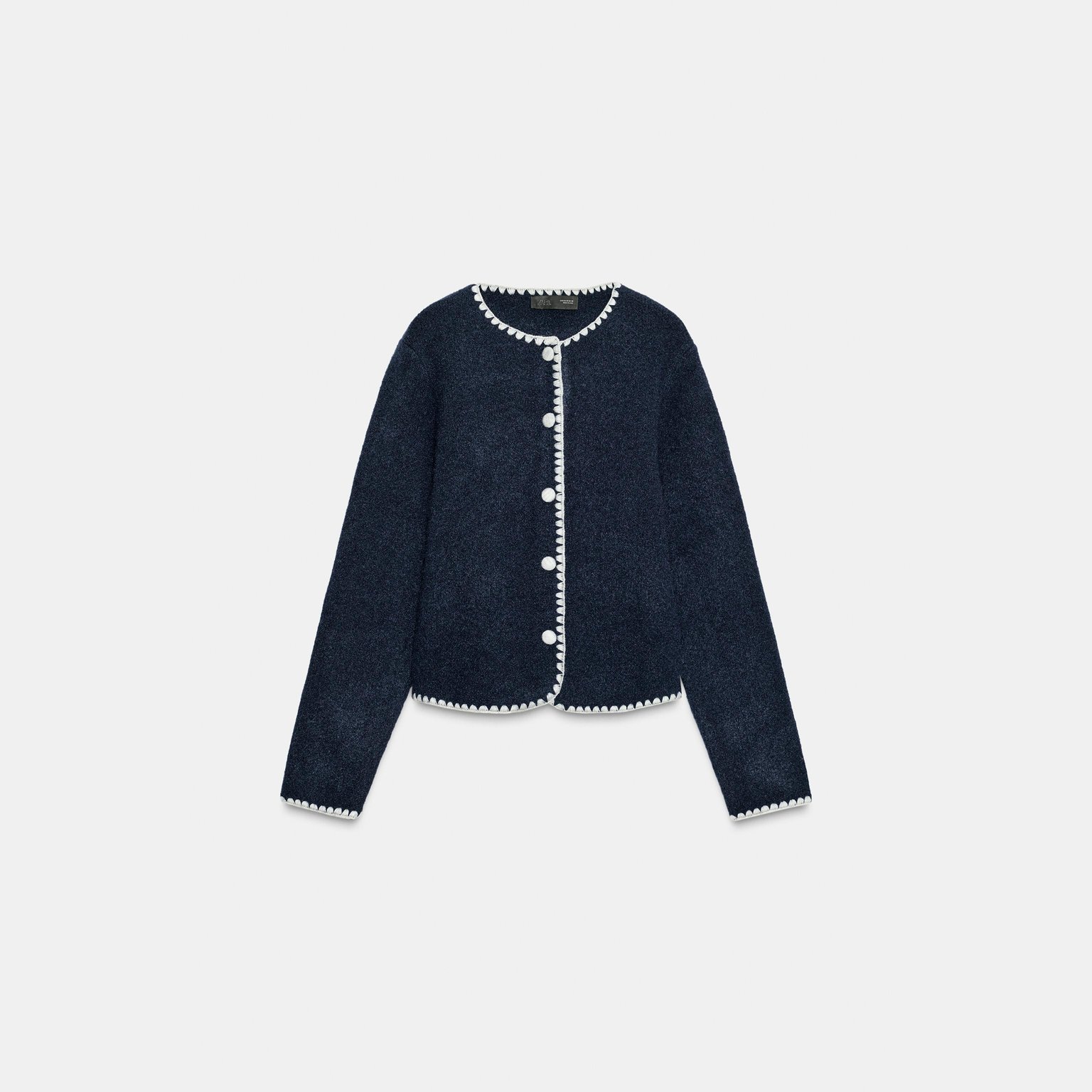 - التصميم: كارديغان محبوك مطرز بتفاصيل متباينة (Contrast Embroidered Cardigan)