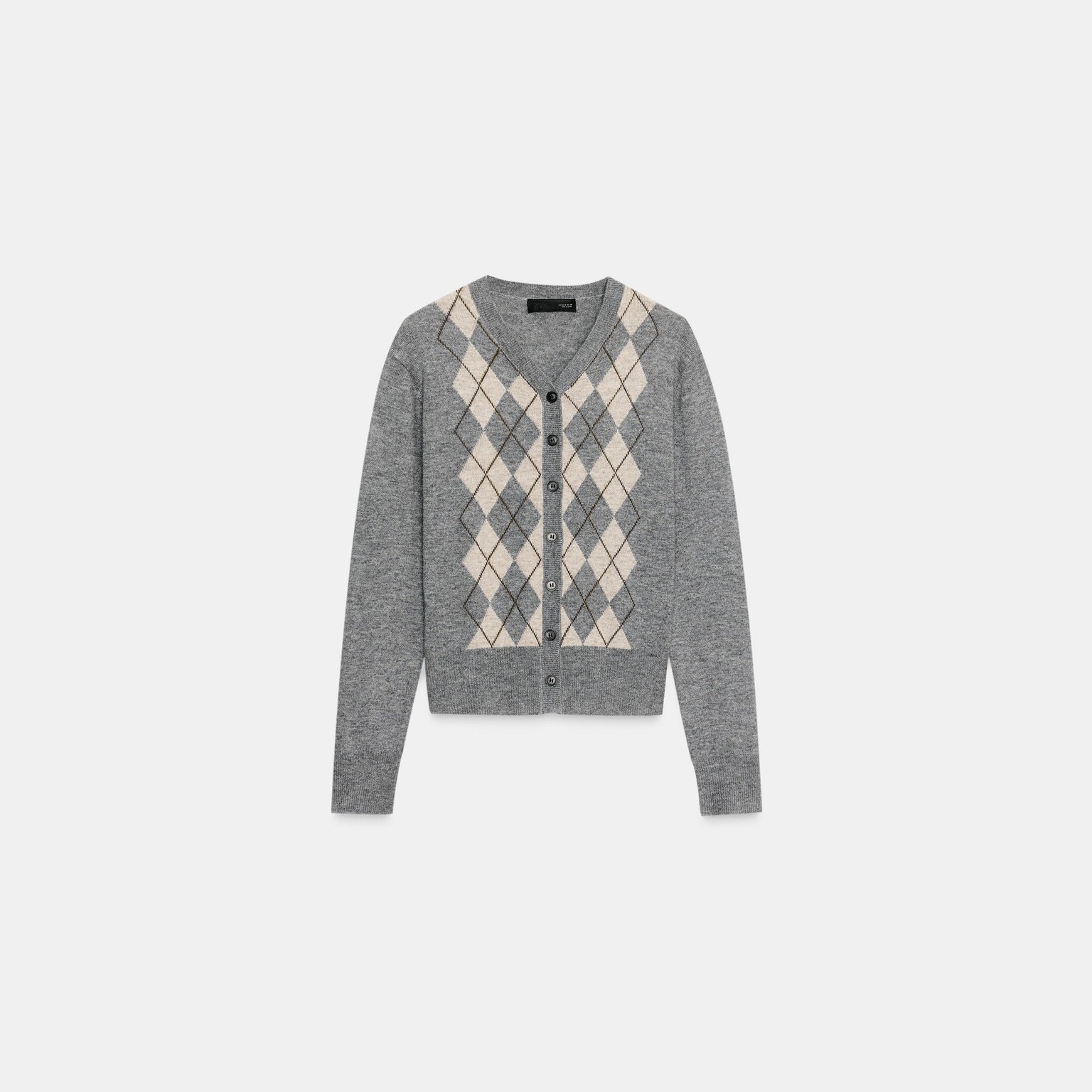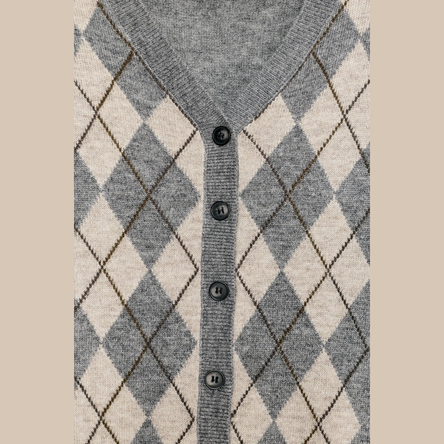 - التصميم: كارديغان محبوك بنقشة أرجيل بخليط الصوف (Wool Blend Argyle Cardigan)