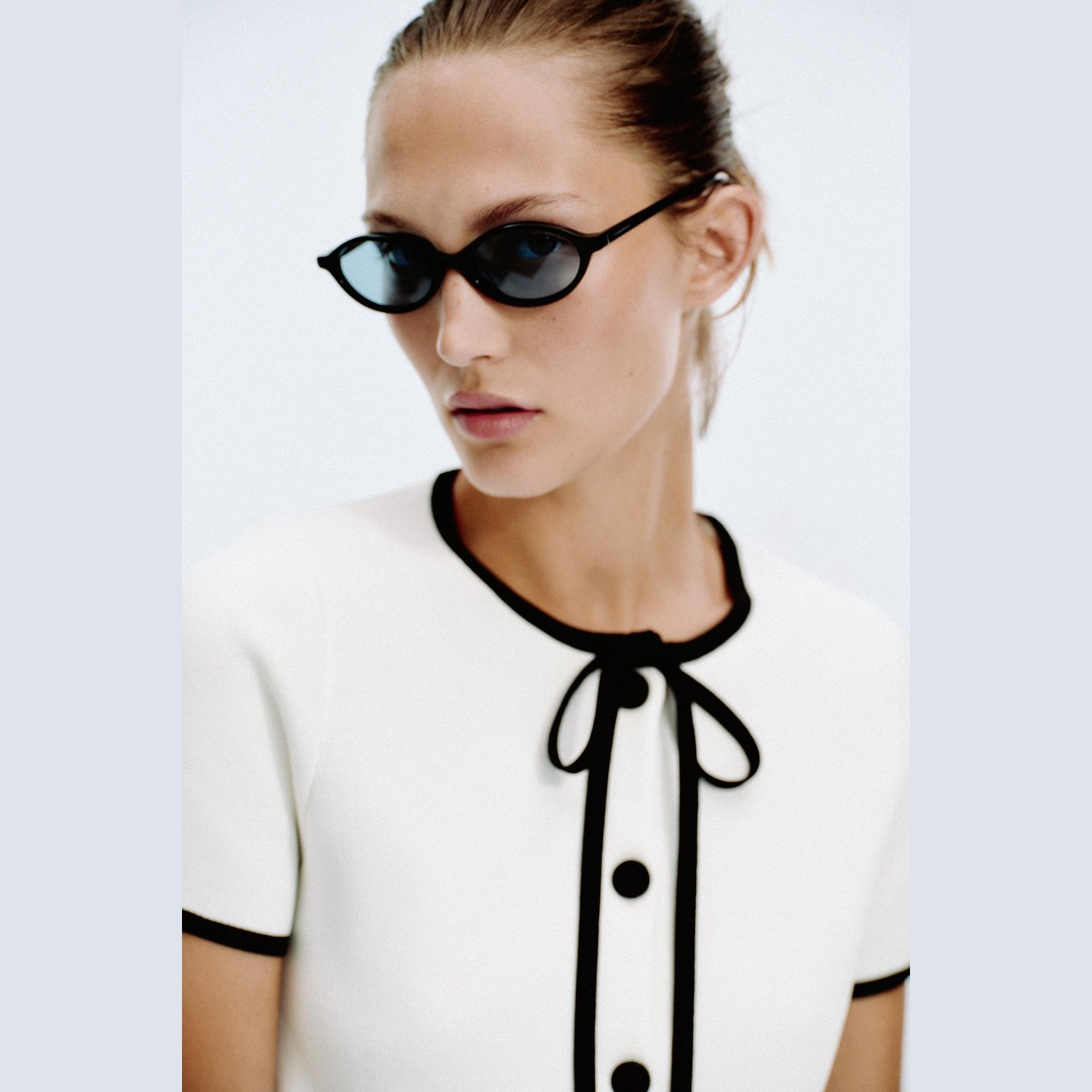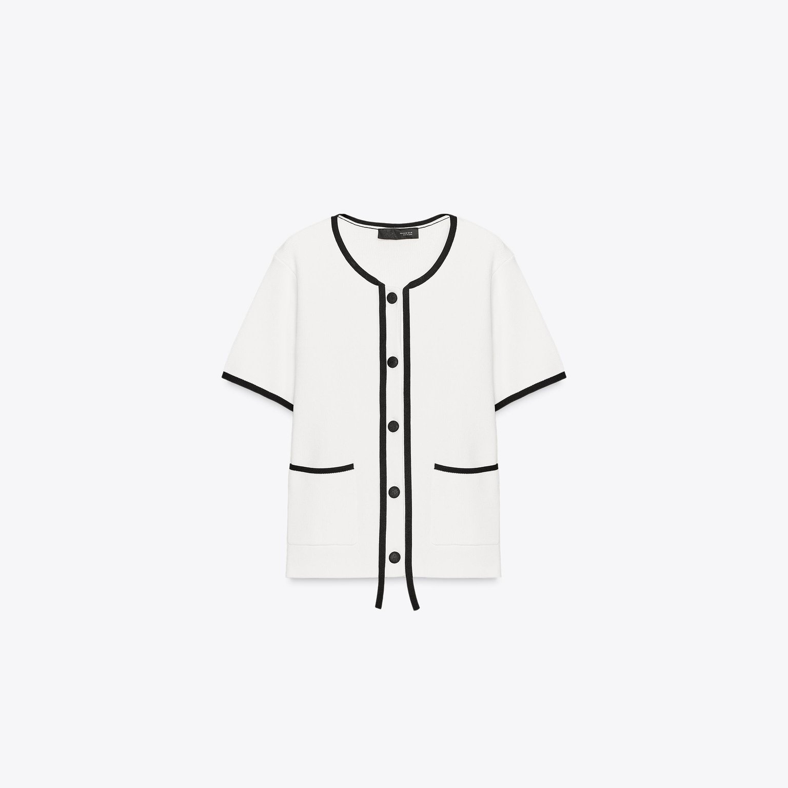 - التصميم: كارديغان محبوك بتفاصيل متباينة (Cardigan with Contrast Trims)