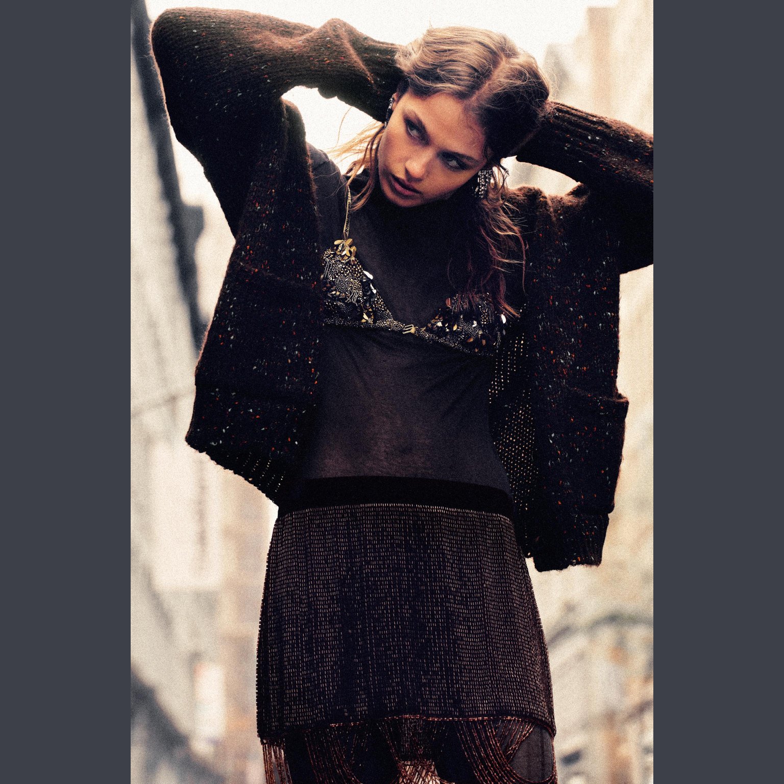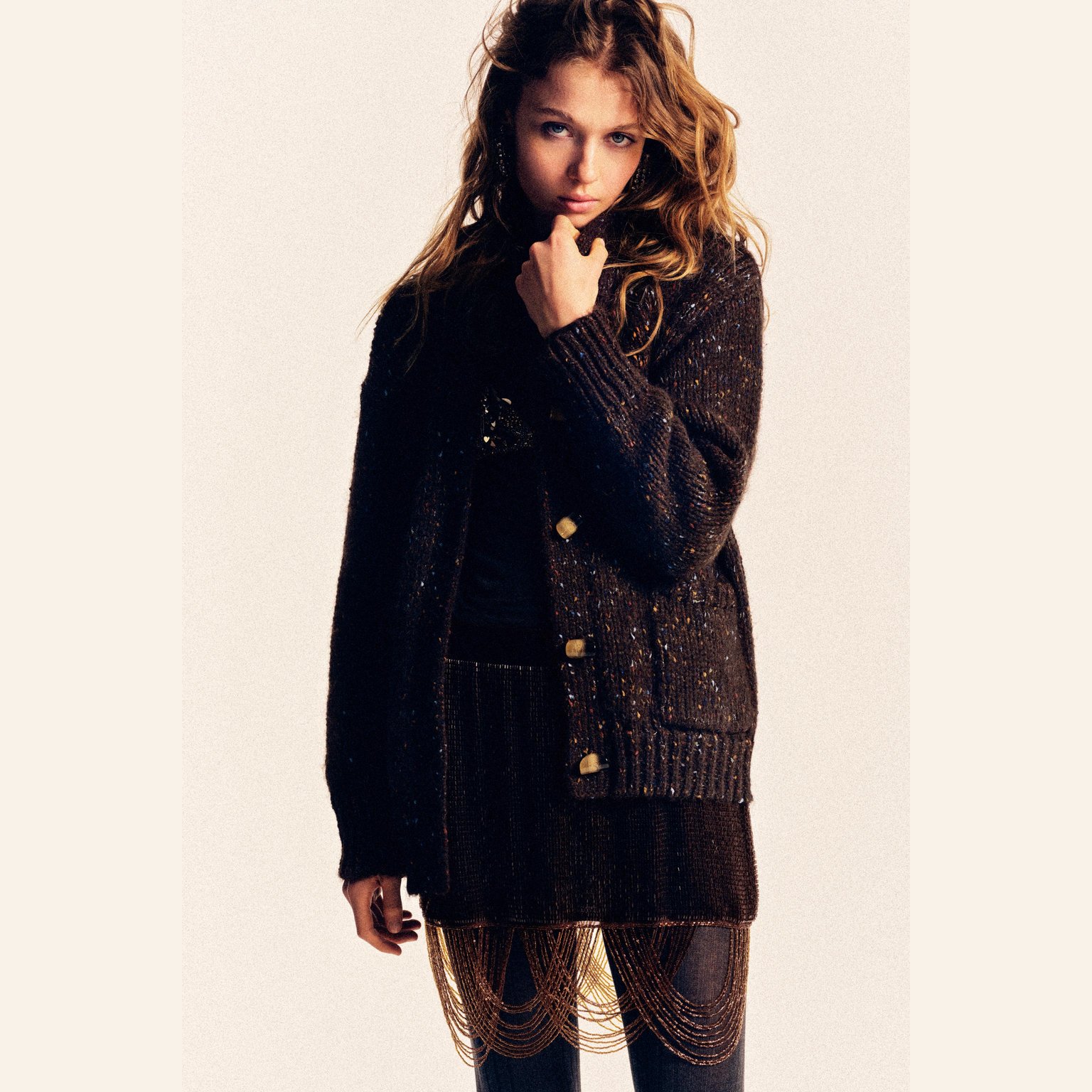 - التصميم: كارديغان محبوك واسع (Oversize Pinchita Knit Cardigan)