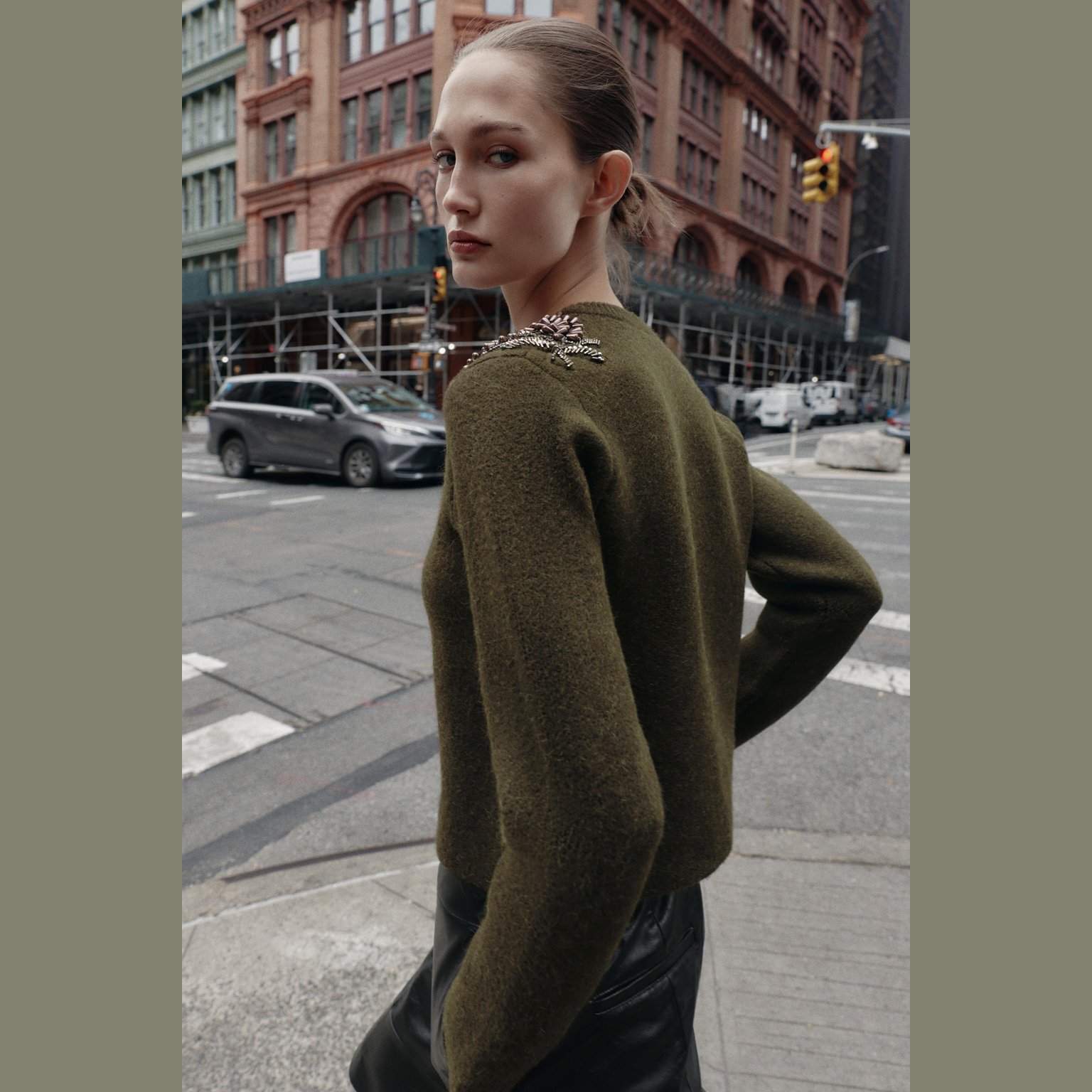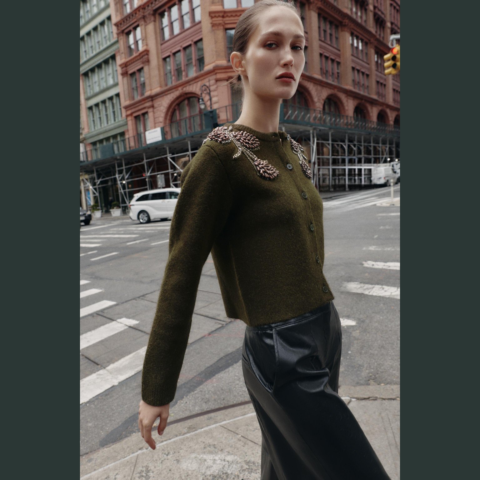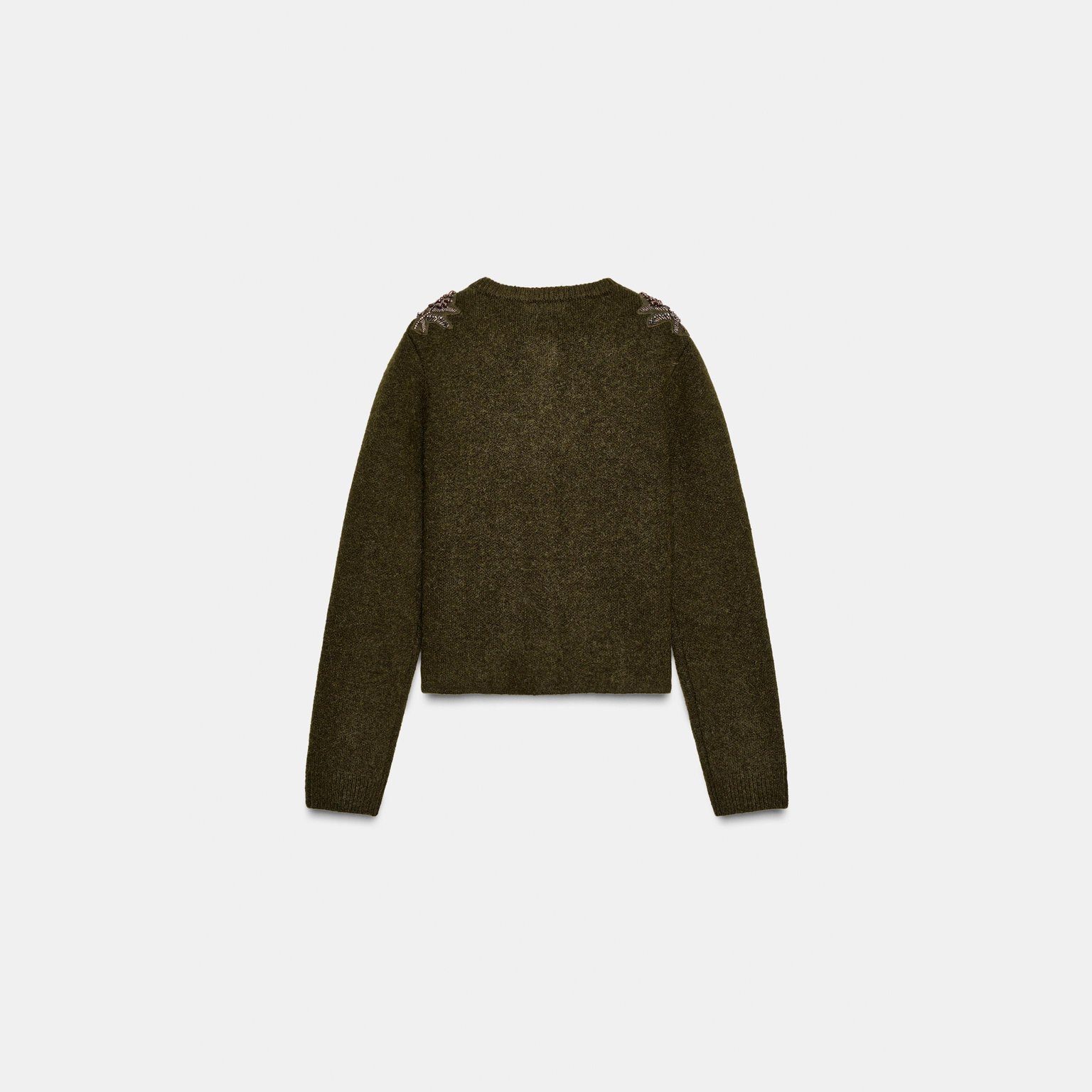 كارديغان محبوك مزين بخرز – لون طبيعي (أخضر) – Green (Cardigan with Beads) كارديغان أنيق بلون أخضر طبيعي، مصنوع من خامة محبوكة عملية تمنح راحة وملمسًا ناعمًا، مع تصميم مزود بياقة مستديرة وأكمام طويلة. يتميز بتزيين خرزي على الأكتاف يمنح لمسة أنثوية عصرية، مع أزرار أمامية للإغلاق. قطعة مثالية للتنسيقات اليومية الكاجوال الأنيقة أو كطبقة إضافية في المواسم الانتقالية.