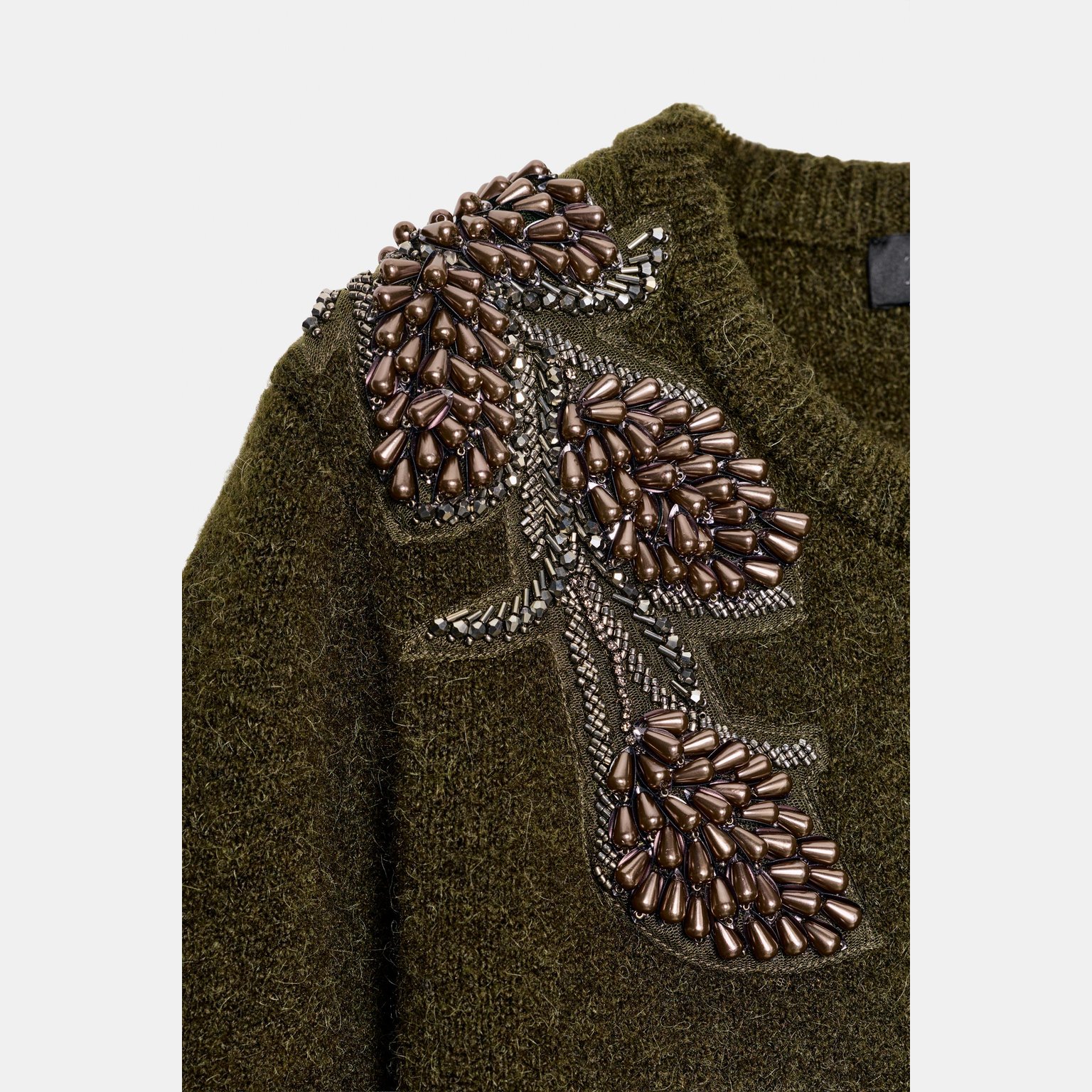- التفاصيل: خرز على الأكتاف (Beaded Shoulder Detail)