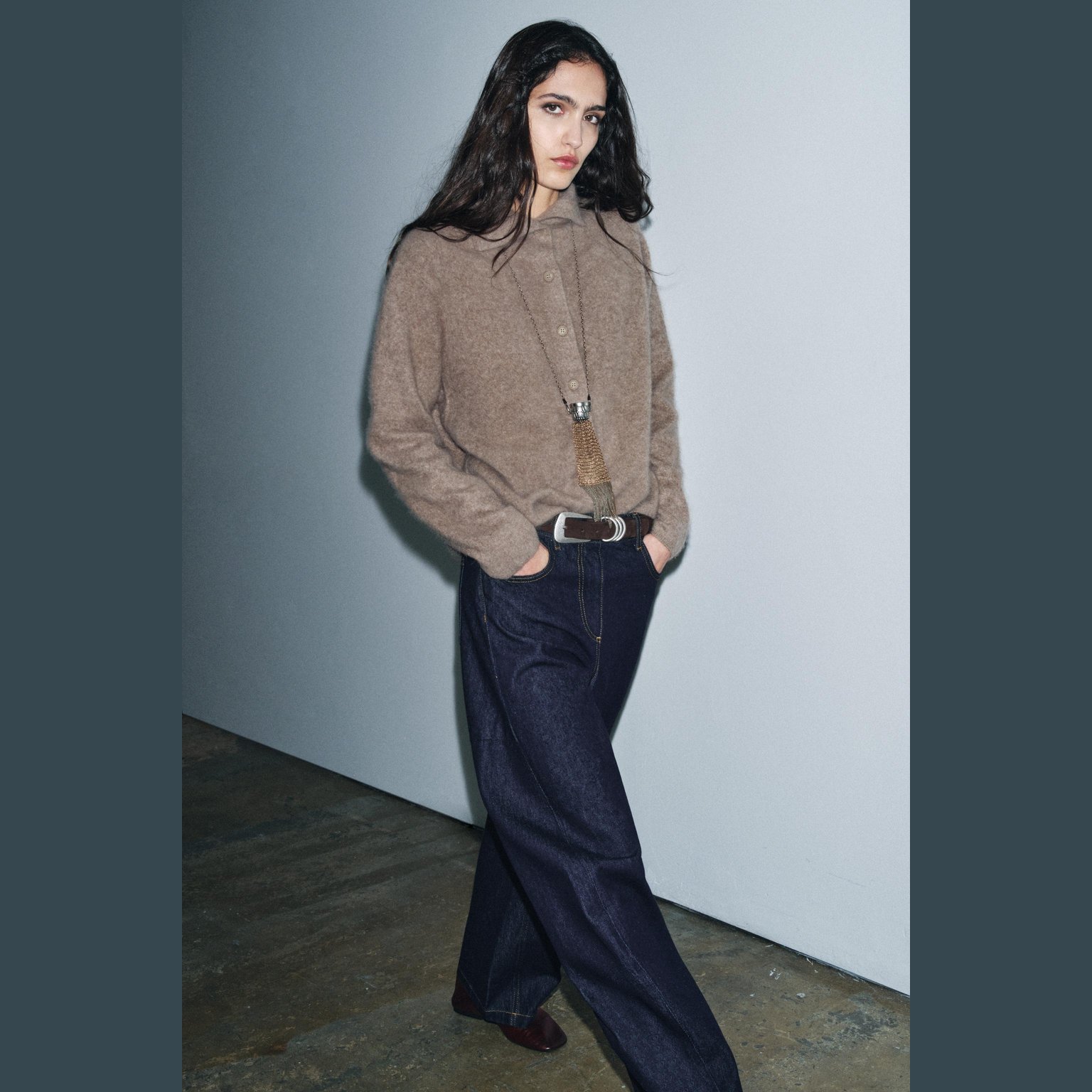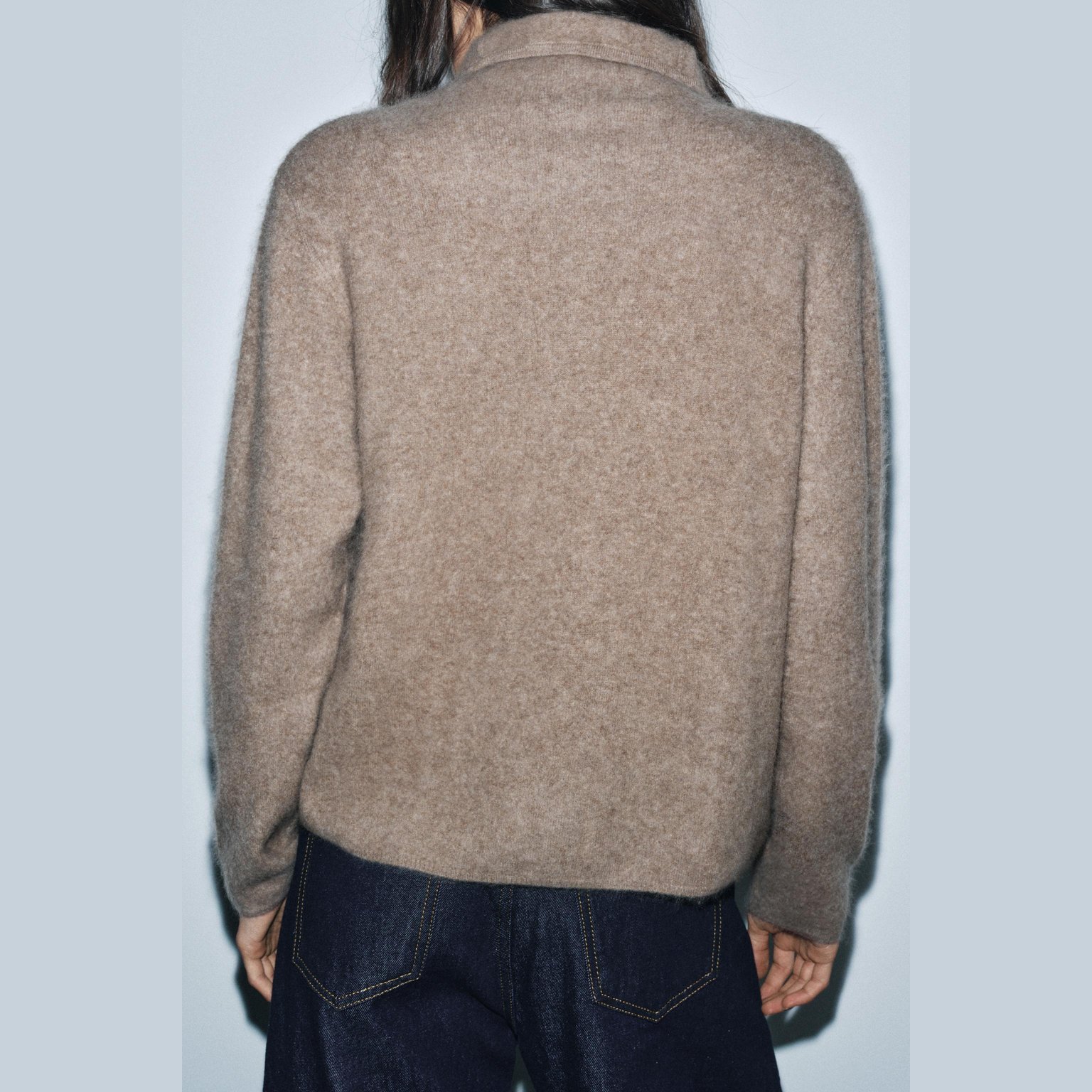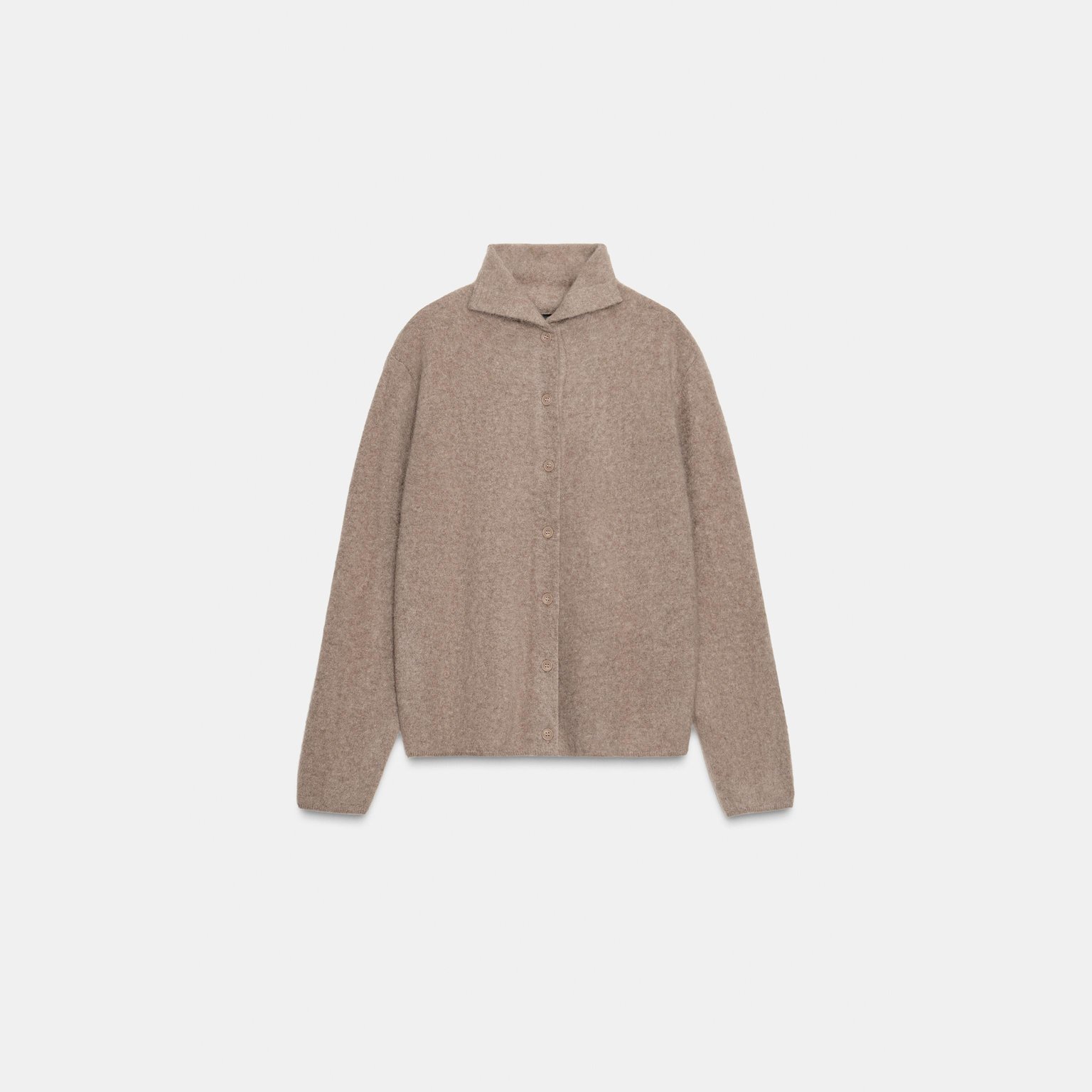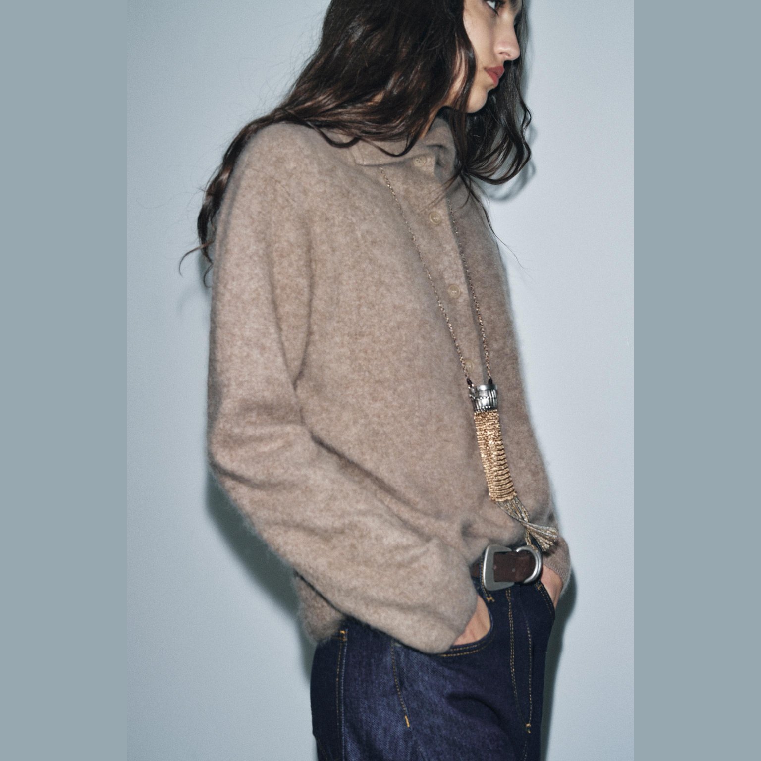 - التصميم: كارديغان محبوك من الصوف الخالص بياقة عالية (100% Wool High Neck Cardigan)