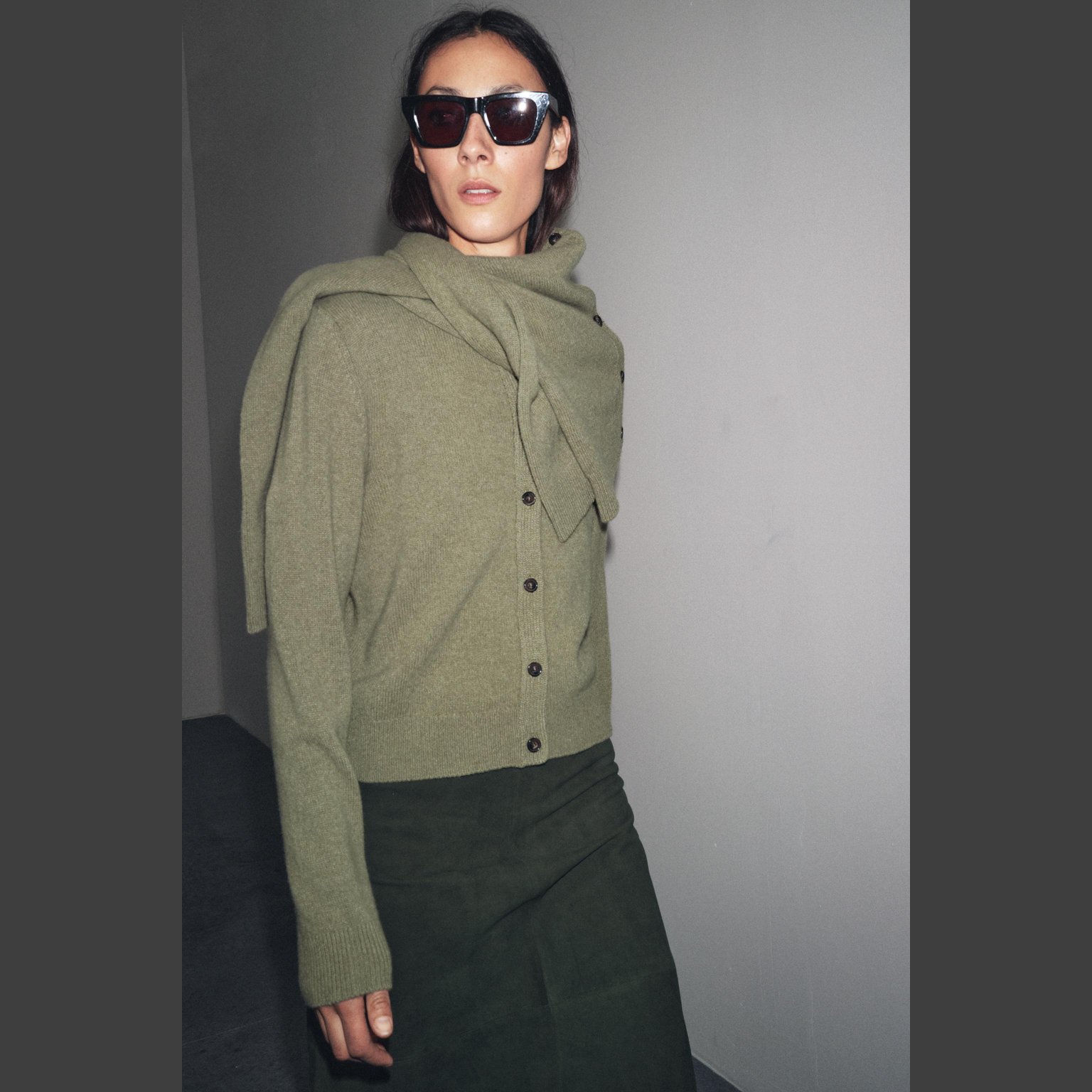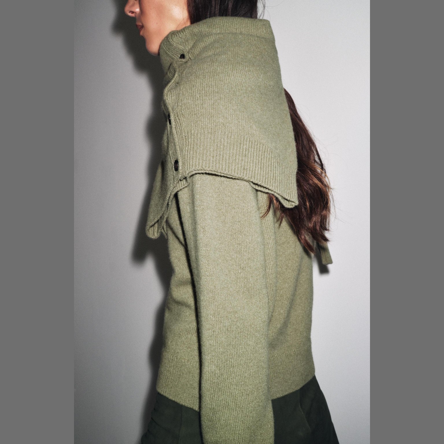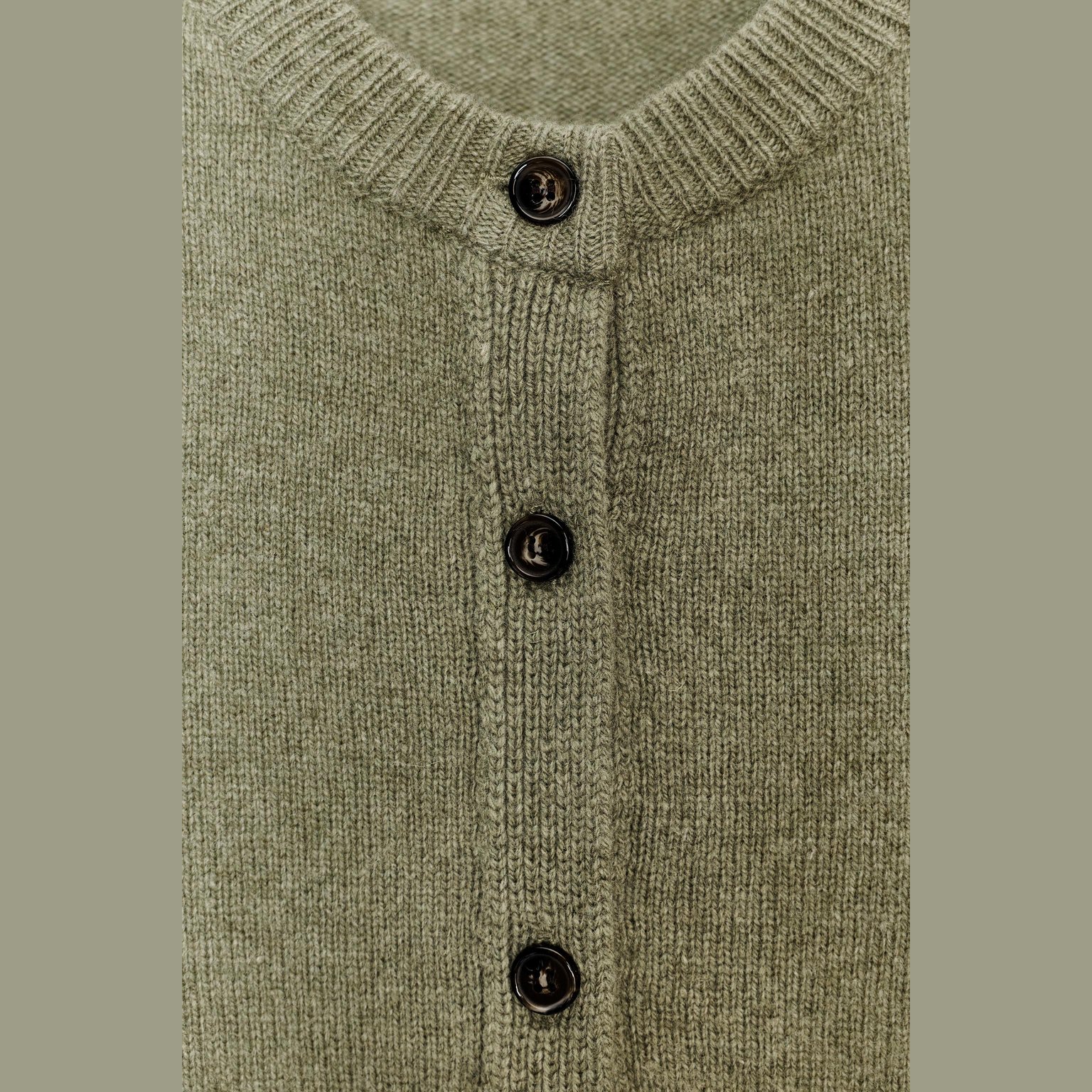 كارديغان محبوك من الكشمير والصوف بأكمام طويلة – لون طبيعي (رمادي مخضر) – Greenish Grey (Cashmere & Wool Long Sleeve Cardigan) كارديغان أنيق بلون رمادي مخضر طبيعي، مصنوع من خليط فاخر من الكشمير والصوف يمنح دفئًا وملمسًا ناعمًا، مع تصميم مزود بياقة مستديرة وأكمام طويلة. يتميز بحواف مضلعة وأزرار أمامية للإغلاق، مما يمنح لمسة كلاسيكية أنيقة. قطعة مثالية للتنسيقات اليومية الكاجوال الأنيقة أو كطبقة إضافية في المواسم الباردة.