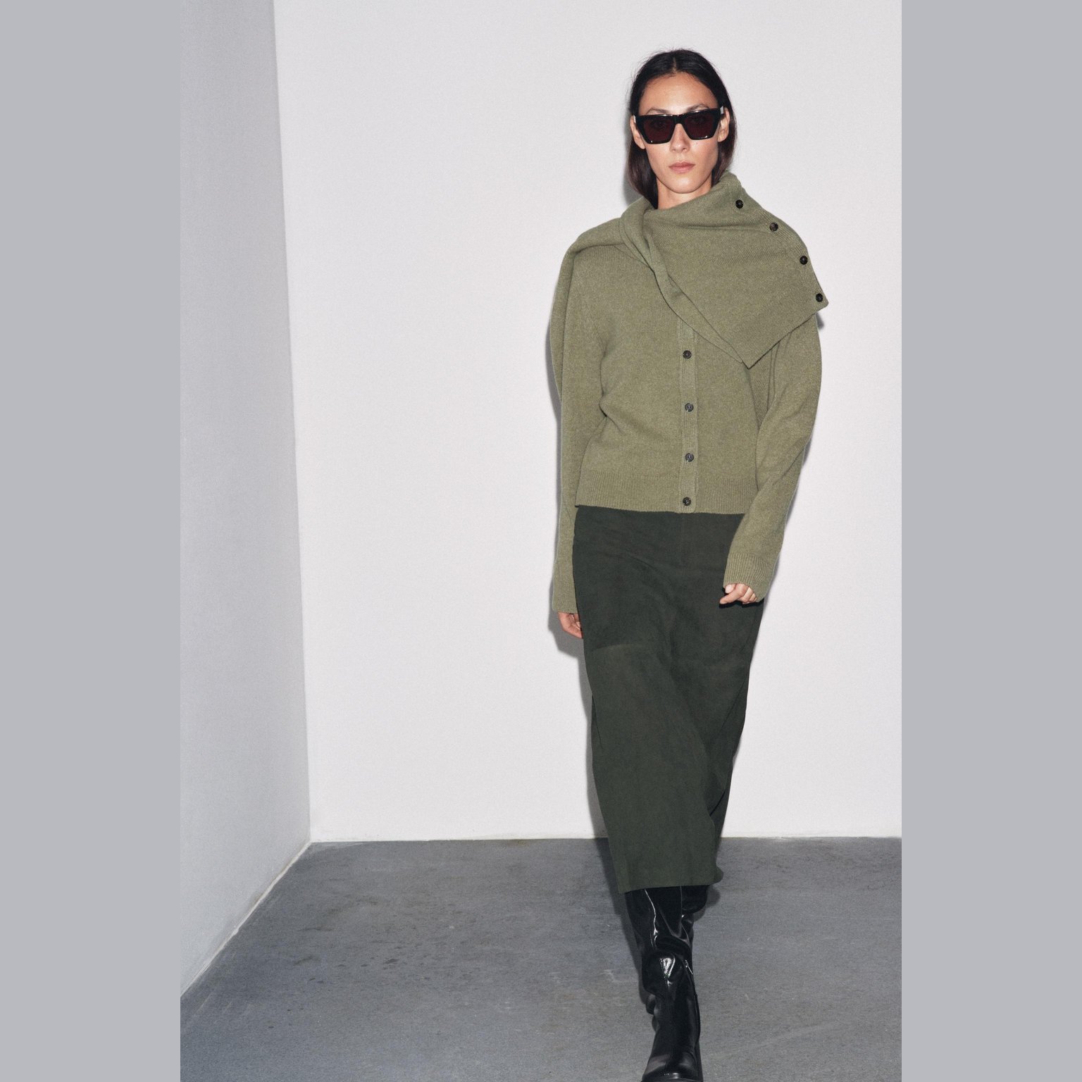 - لون رمادي مخضر طبيعي سهل الدمج مع مختلف الملابس