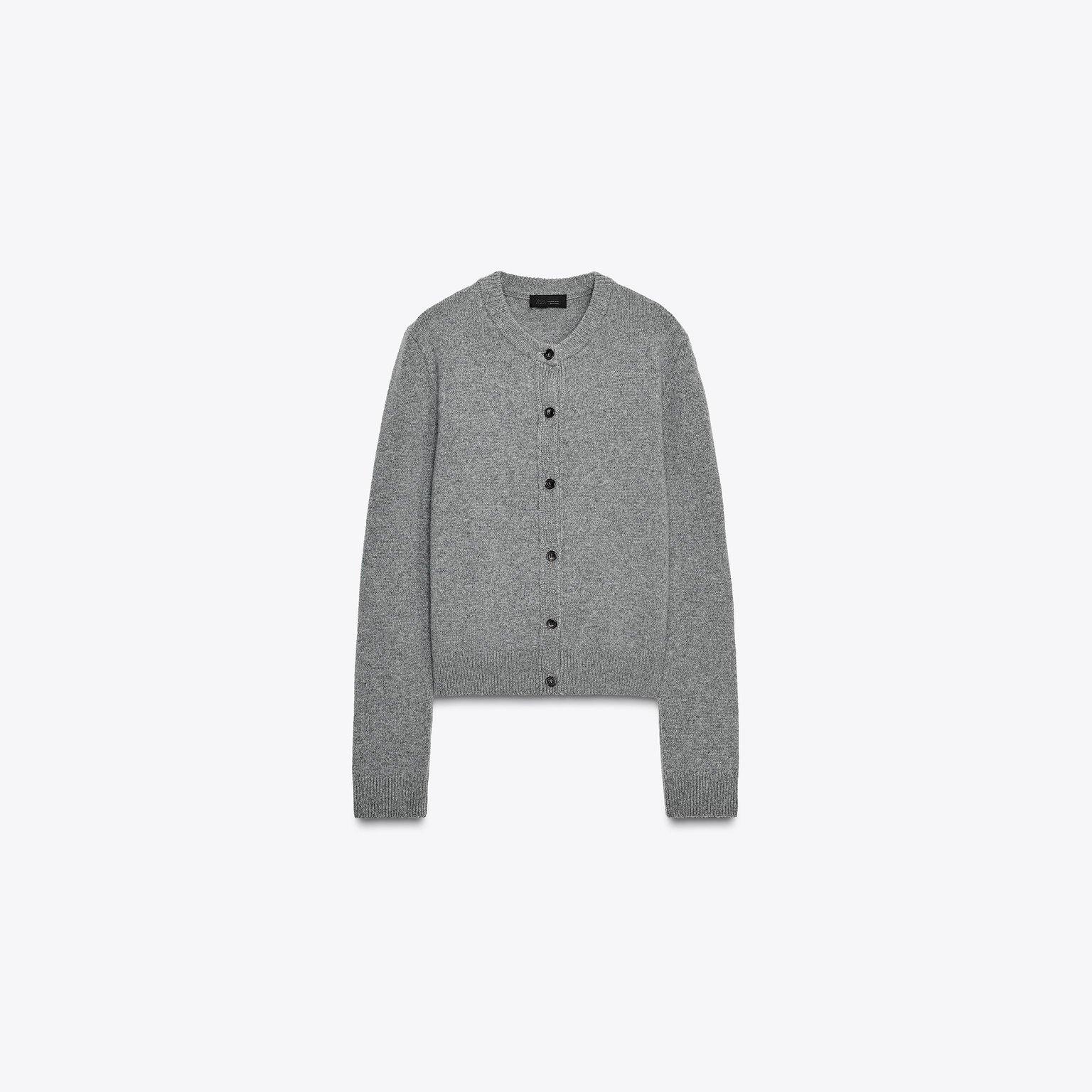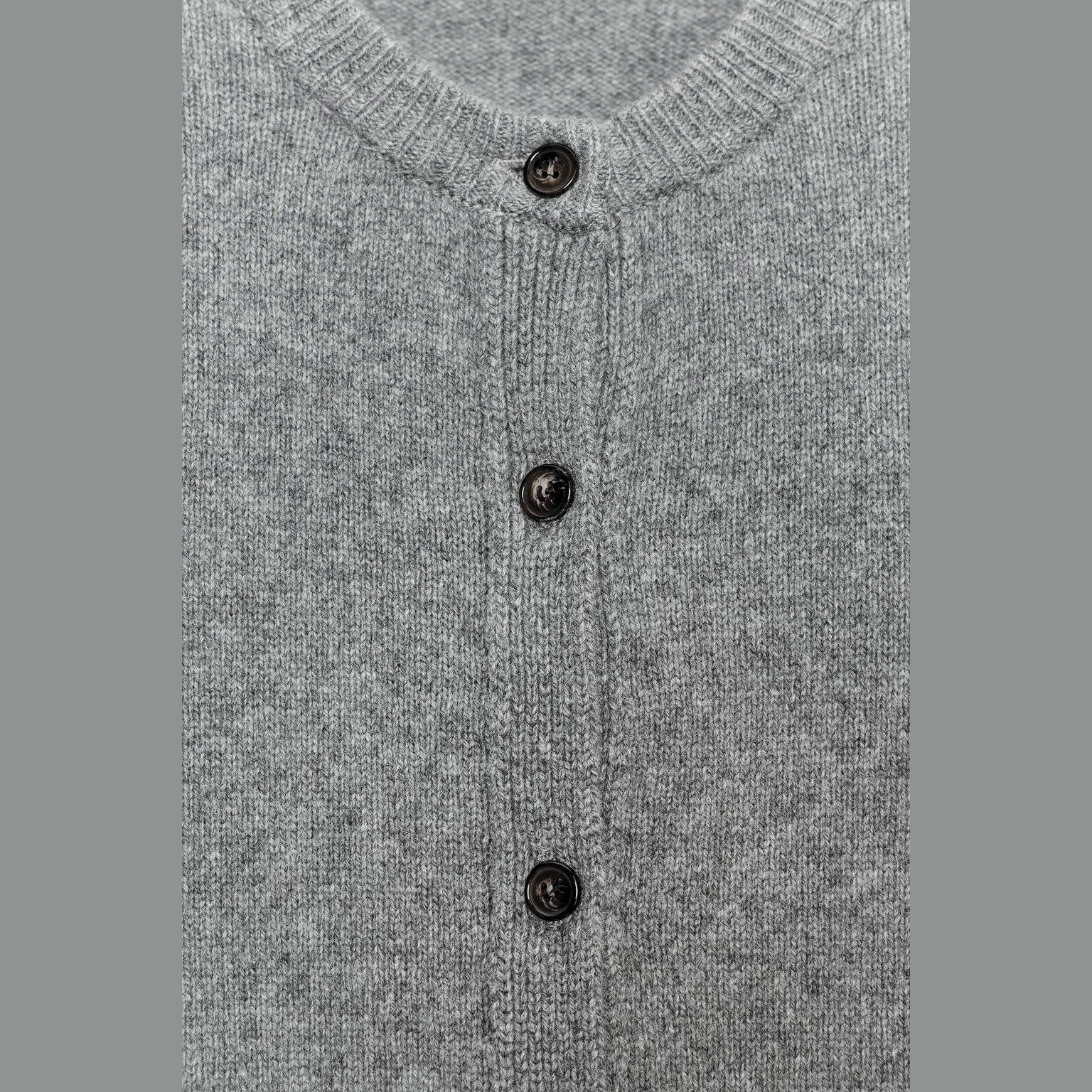 كارديغان محبوك من الكشمير والصوف بأكمام طويلة – لون طبيعي (رمادي) – Grey (Cashmere & Wool Long Sleeve Cardigan) كارديغان أنيق بلون رمادي طبيعي، مصنوع من خليط فاخر من الكشمير والصوف يمنح دفئًا وملمسًا ناعمًا، مع تصميم مزود بياقة مستديرة وأكمام طويلة. يتميز بحواف مضلعة وأزرار أمامية للإغلاق، مما يمنح لمسة كلاسيكية أنيقة. قطعة مثالية للتنسيقات اليومية الكاجوال الأنيقة أو كطبقة إضافية في المواسم الباردة.