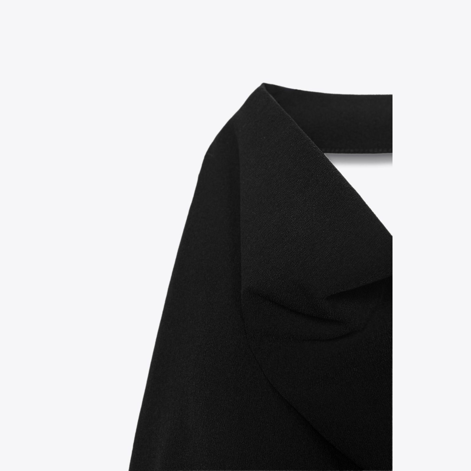 بادي محبوك بياقة هالتر مفتوحة الظهر – لون طبيعي (أسود) – Black (Open Back Halter Bodysuit) بادي أنيق بلون أسود طبيعي، مصنوع من خامة محبوكة عملية بخليط بوليستر وإيلاستان يمنح مرونة وملمسًا ناعمًا، بتصميم هالتر عصري مع ظهر مفتوح. يتميز بإغلاق سفلي بأزرار كبس لراحة عملية في الارتداء. قطعة مثالية للتنسيقات اليومية الكاجوال الأنيقة أو كطبقة أساسية في المناسبات المسائية.