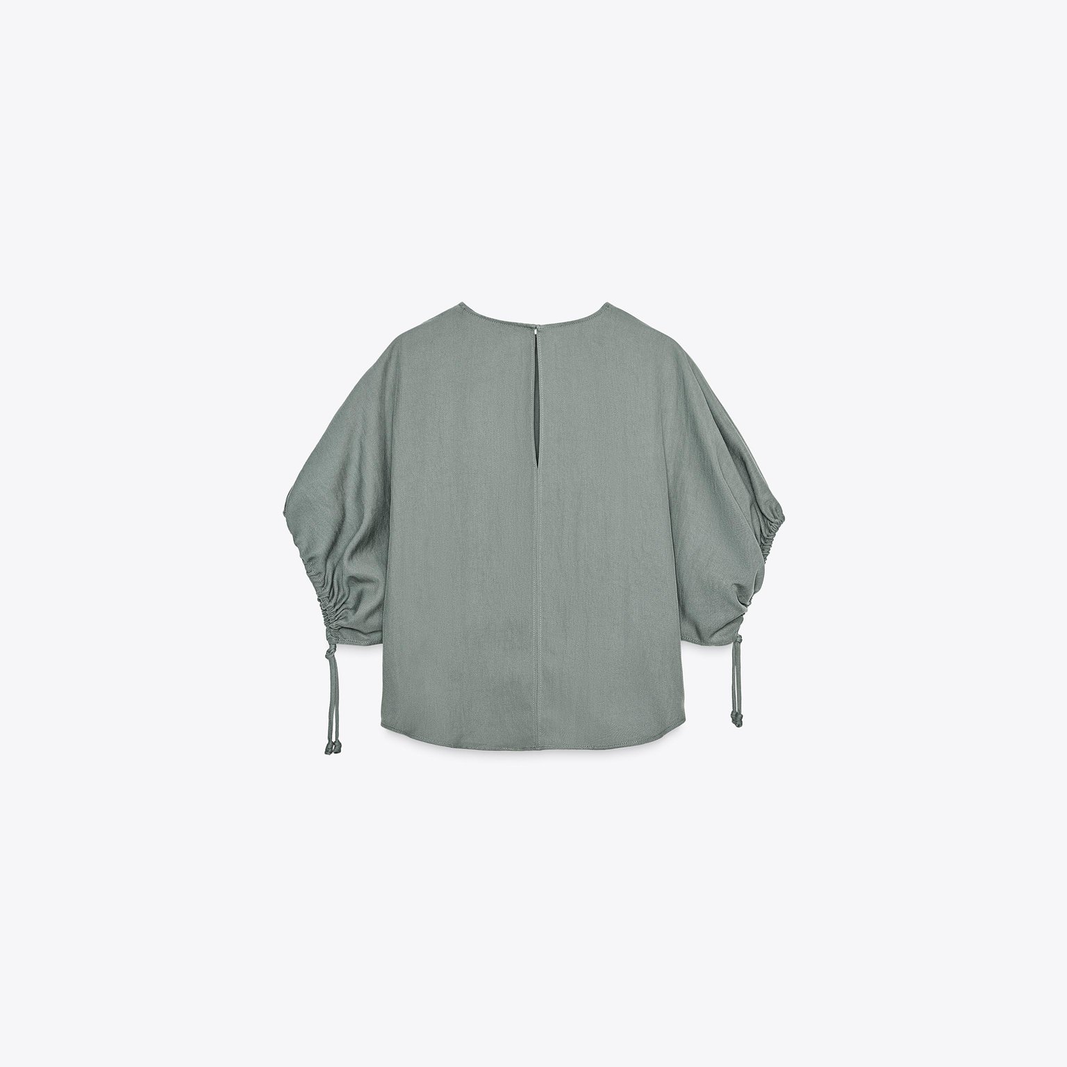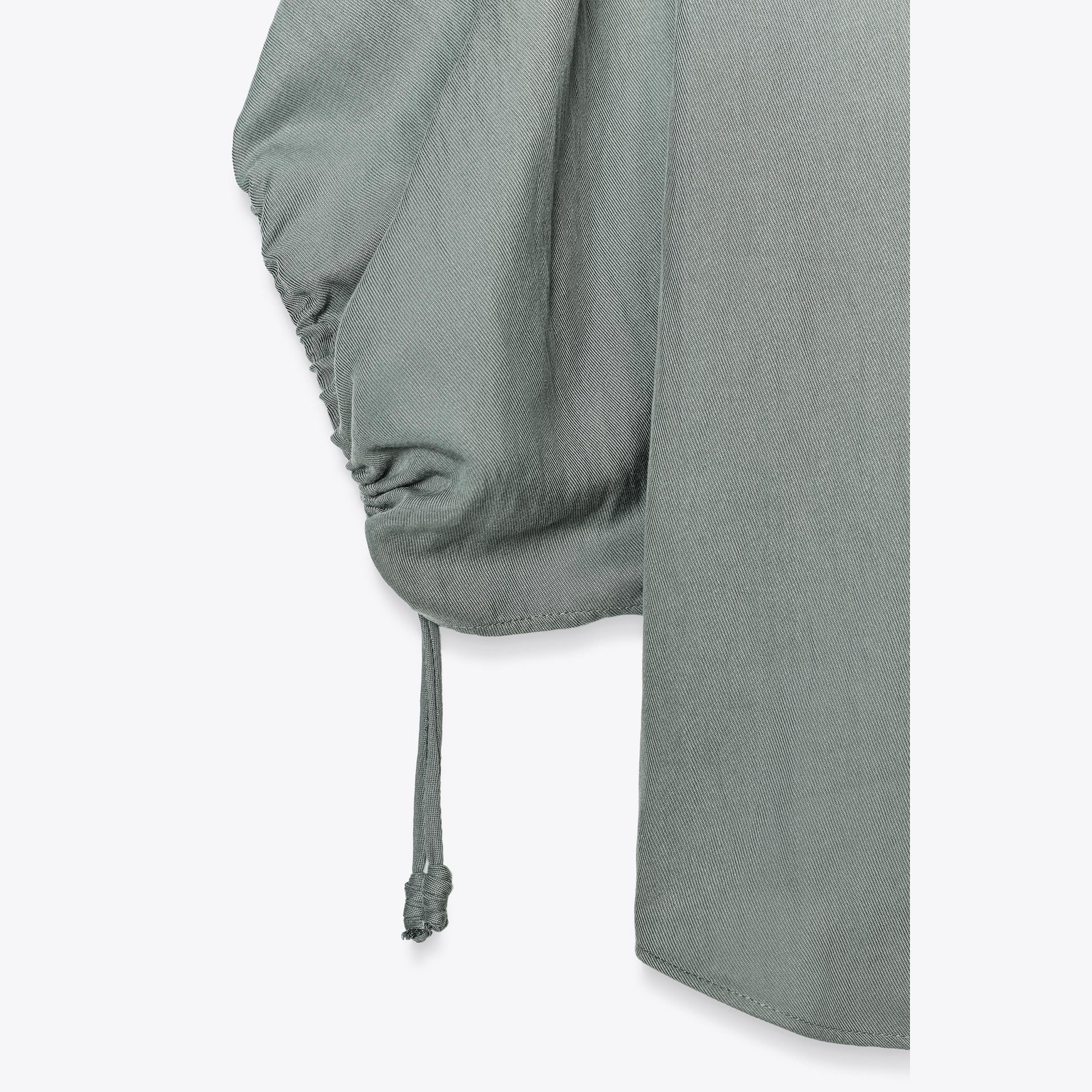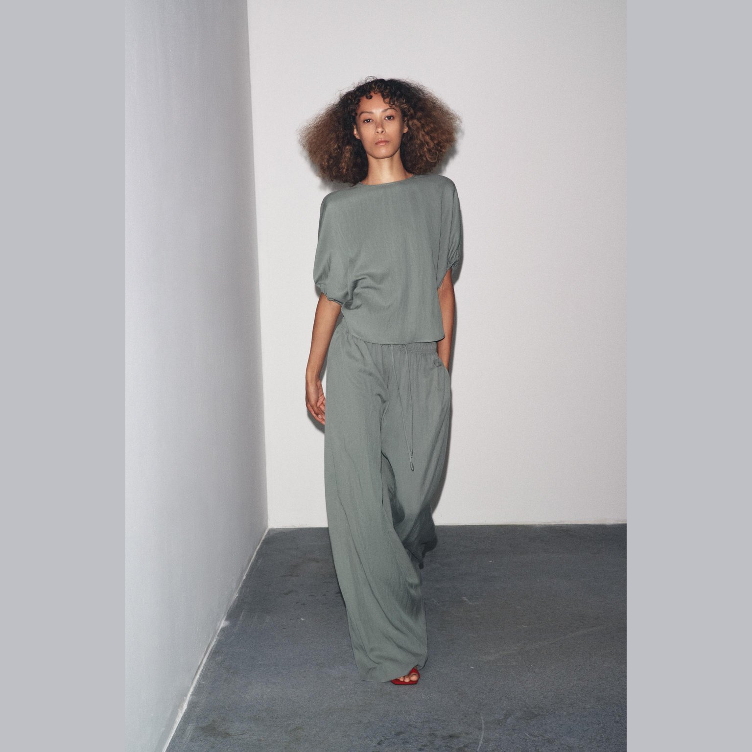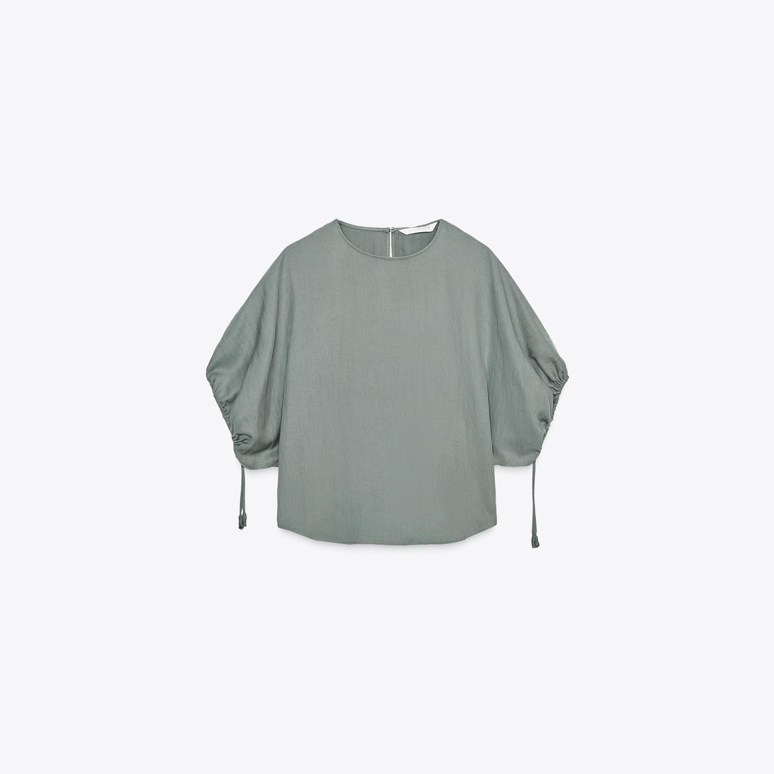 بلوزة بأكمام منفوشة – لون أزرق رمادي – Blue Grey (ZW Collection Puff Sleeve Blouse) بلوزة أنيقة من مجموعة ZW، مصنوعة من خيط ممزوج بالليوسيل يمنح ملمسًا ناعمًا وانسيابيًا. تتميز بأكمام منفوشة قصيرة قابلة للتعديل عبر رباط جانبي، مع ياقة دائرية وحافة مستديرة تضيف لمسة عصرية راقية. تصميمها الأنثوي يجعلها خيارًا مثاليًا للإطلالات اليومية والكاجوال الأنيقة.