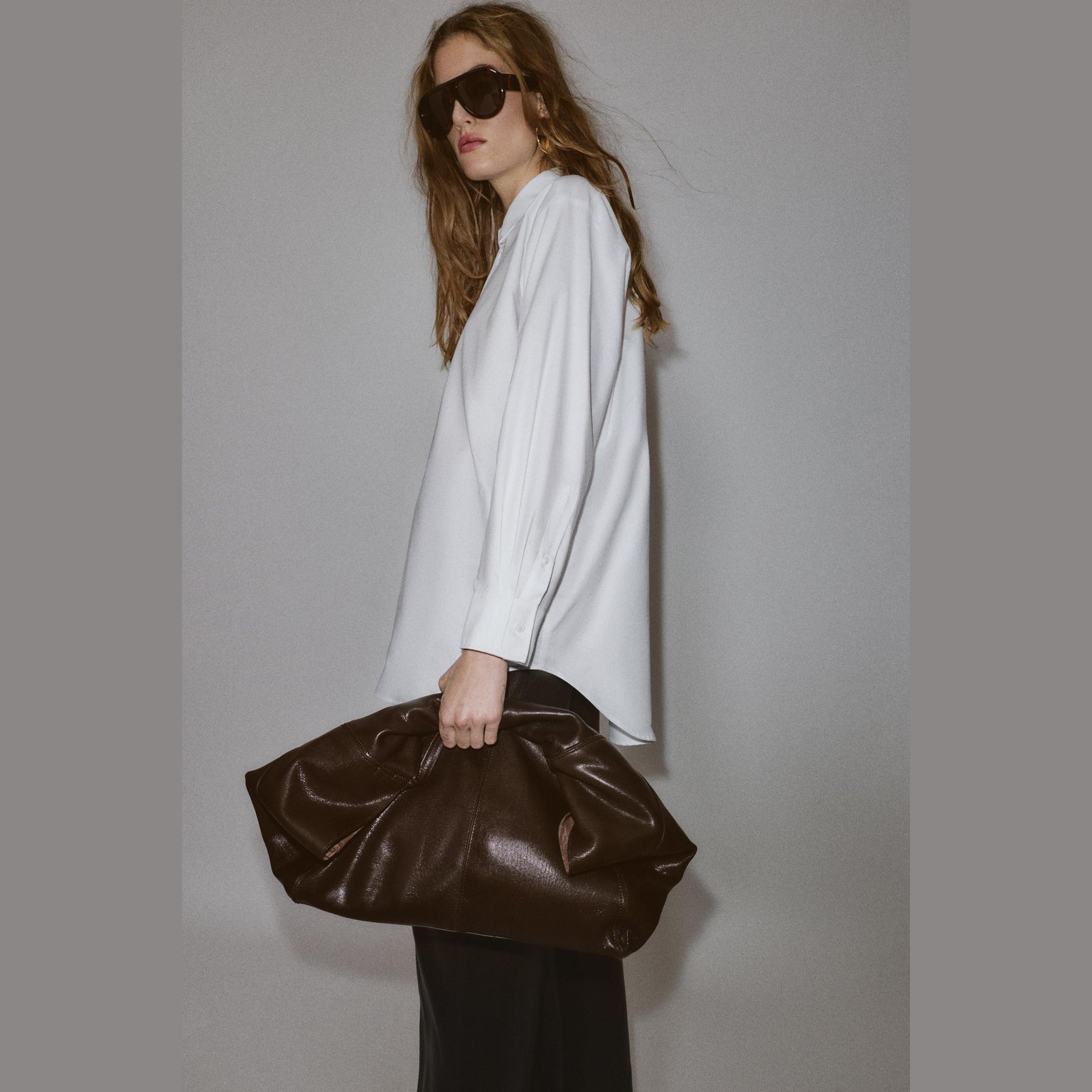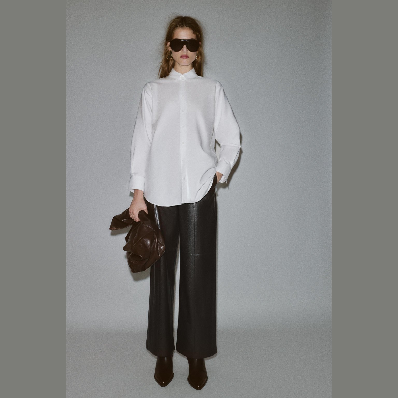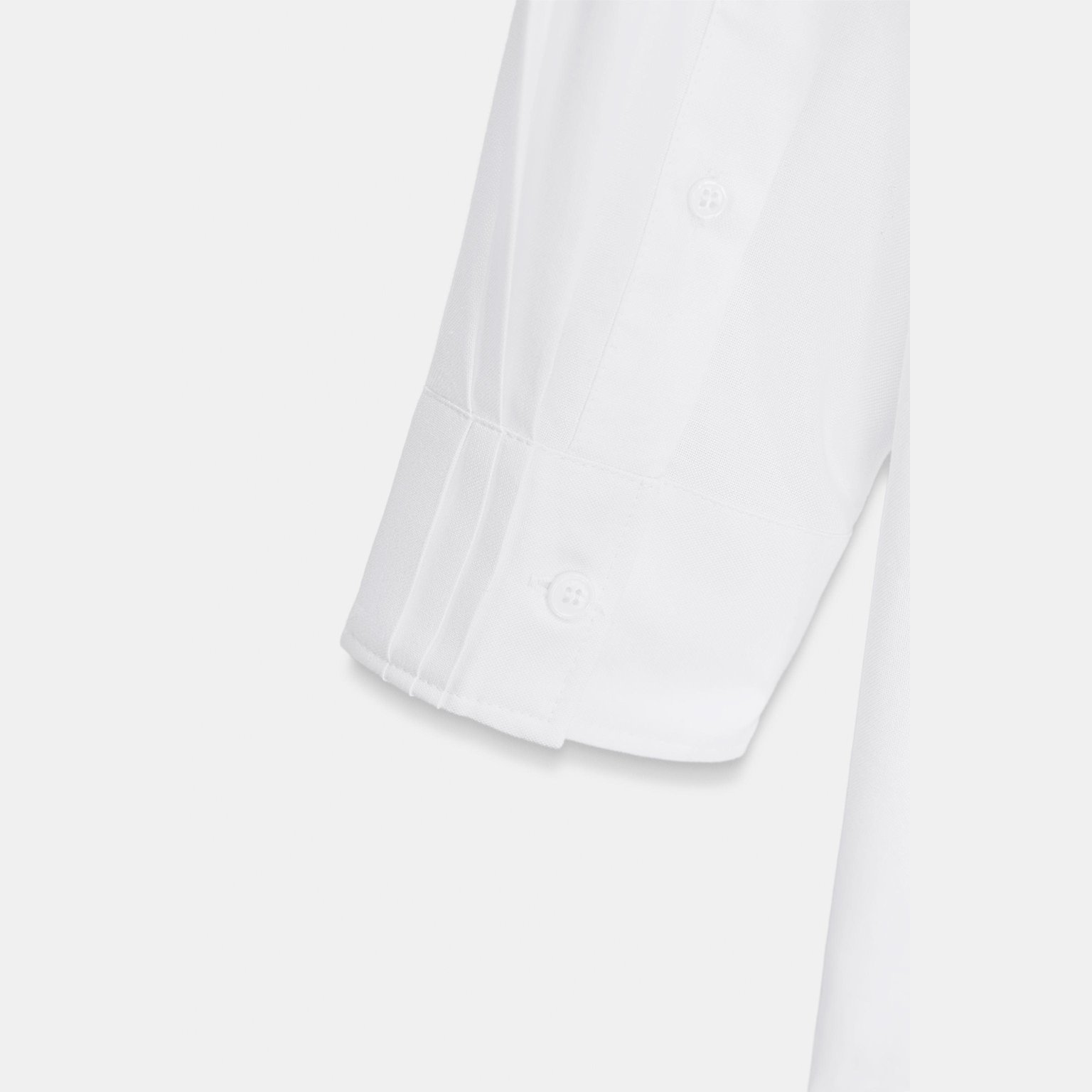 قميص أوكسفورد واسع بياقة كلاسيكية – لون أبيض – White (Oversize Oxford Shirt) قميص واسع بتصميم عصري مريح، يتميز بياقة كلاسيكية وأكمام طويلة مع أساور مطوية تمنح لمسة راقية. يأتي بحافة غير متناظرة تضيف انسيابية جميلة، إضافة إلى إغلاق أمامي بأزرار لمظهر نظيف يناسب الإطلالات اليومية والكاجوال الأنيقة.