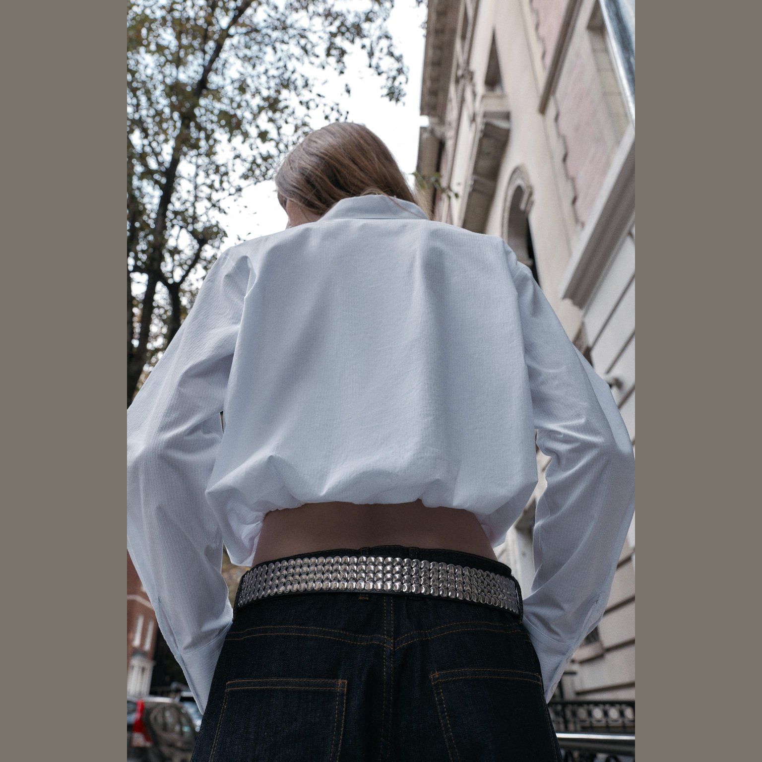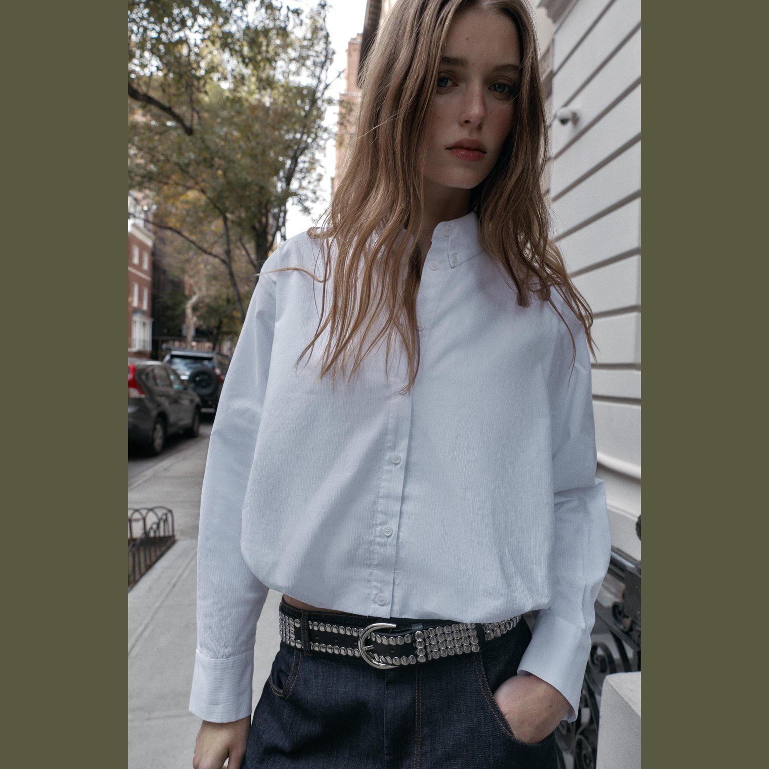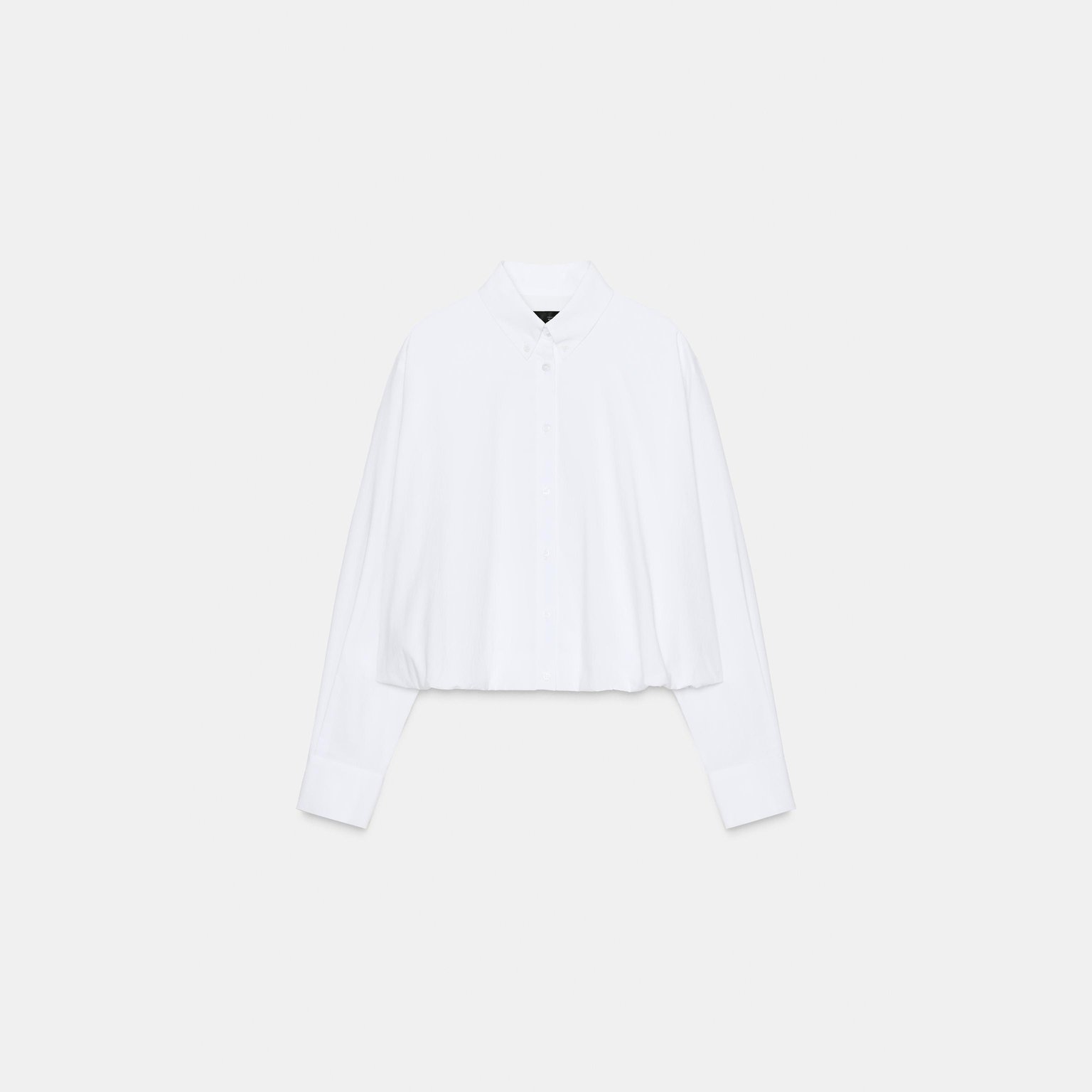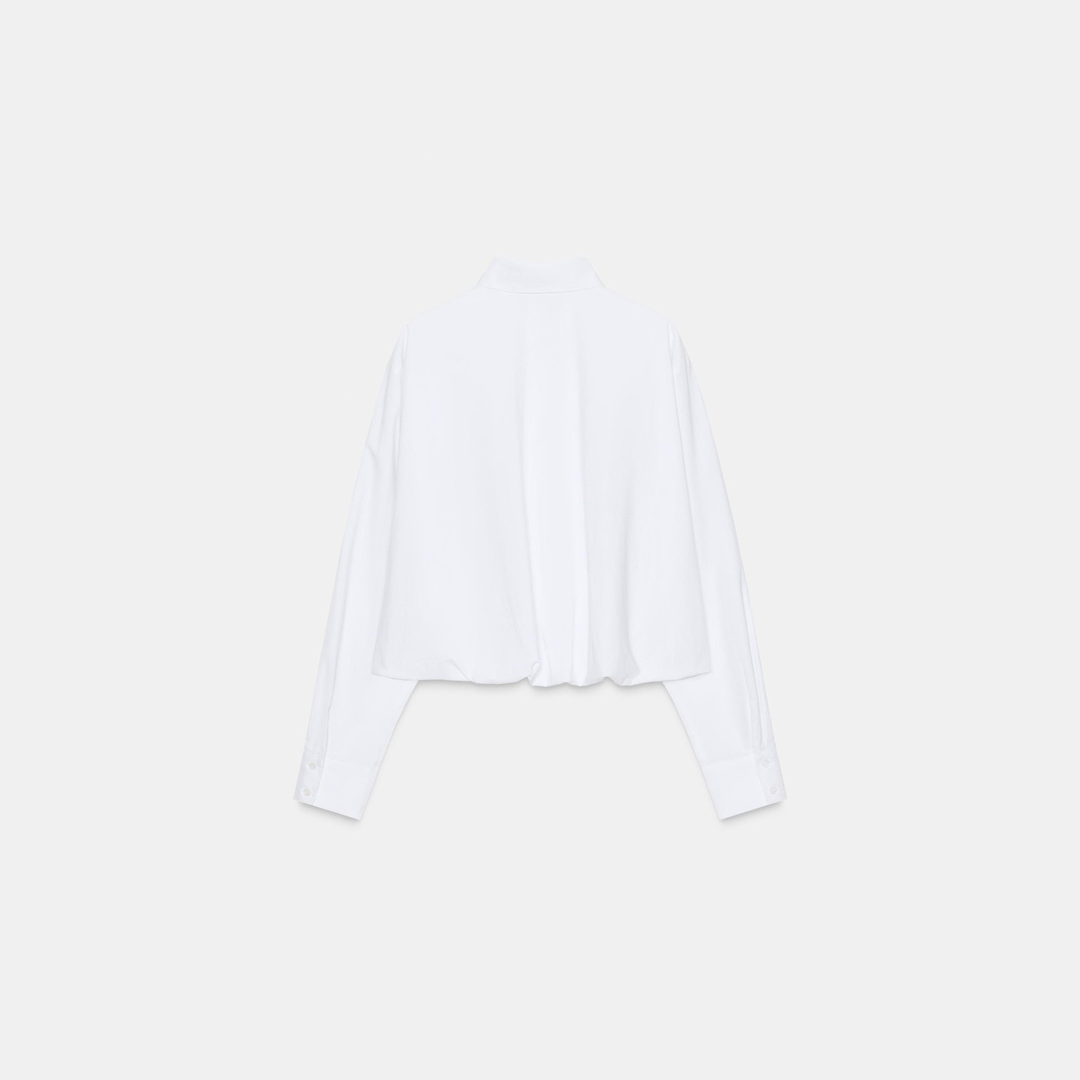 قميص بوبلين ببالون – لون أويستر أبيض – Oyster‑White (Poplin Balloon Shirt) قميص أنيق بتصميم عصري، يتميز بياقة كلاسيكية وأكمام طويلة، مع حافة بالون مزودة ببطانة داخلية مرنة تمنح شكلًا مميزًا. يأتي بإغلاق أمامي بأزرار لمظهر نظيف وعملي يناسب الإطلالات اليومية والكاجوال الأنيقة.