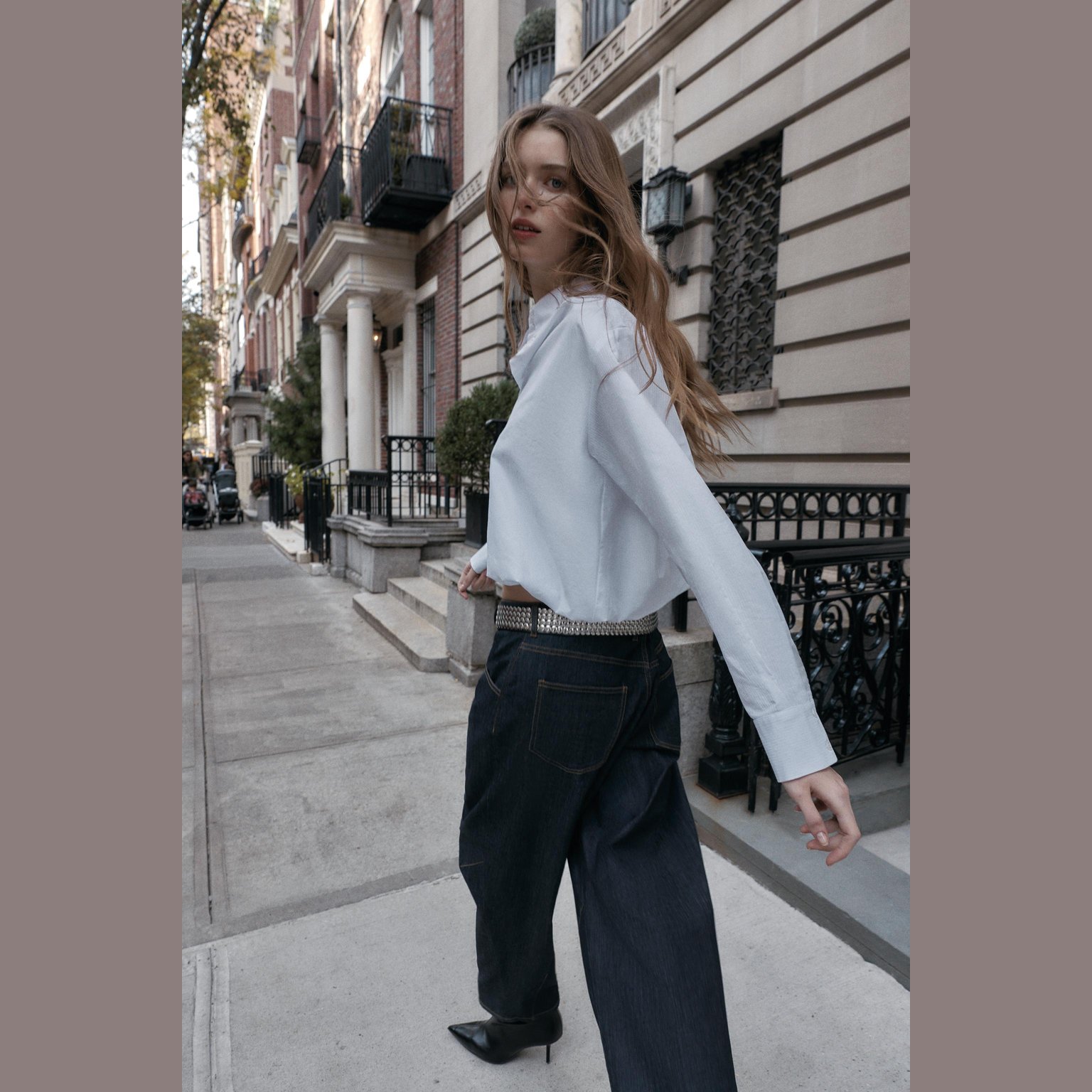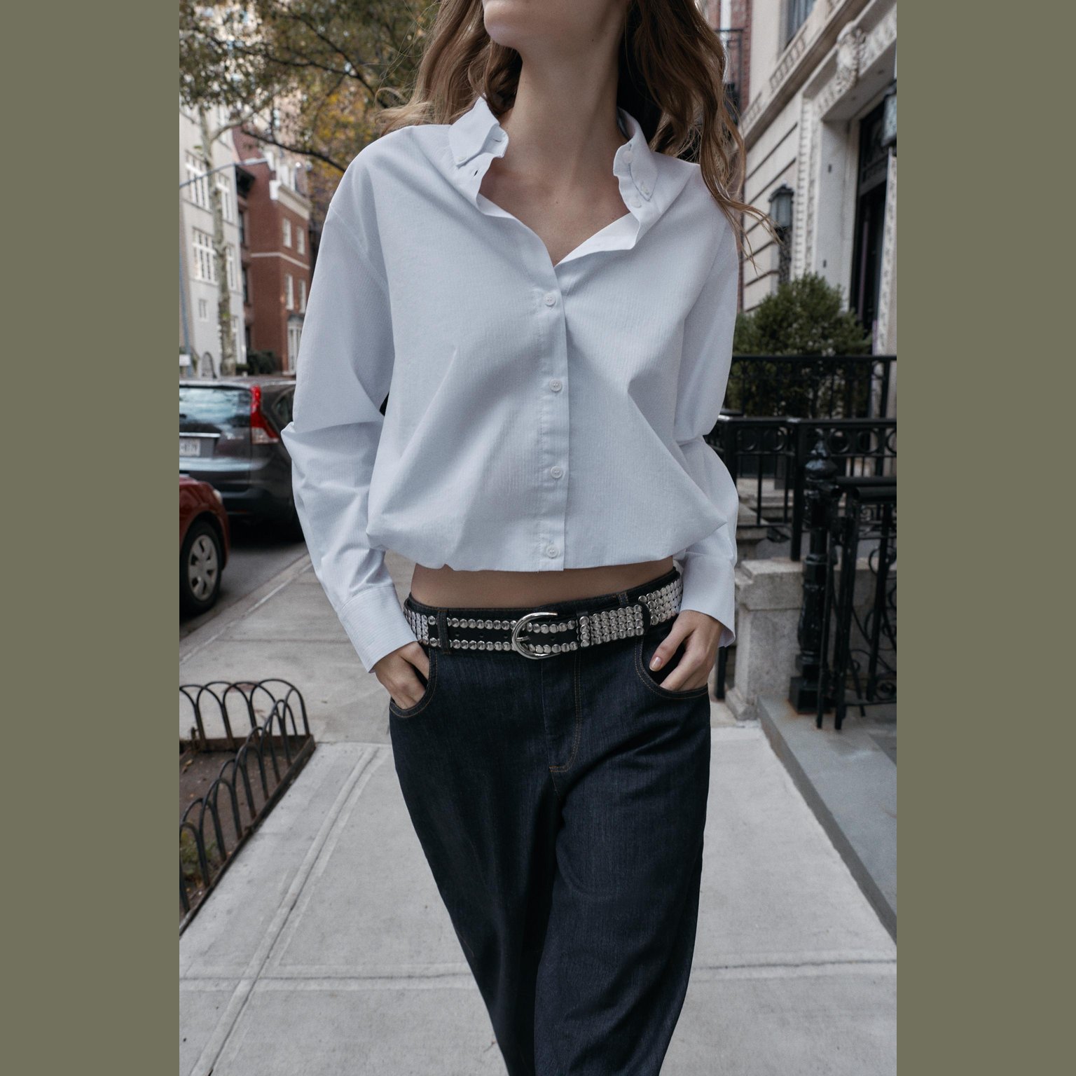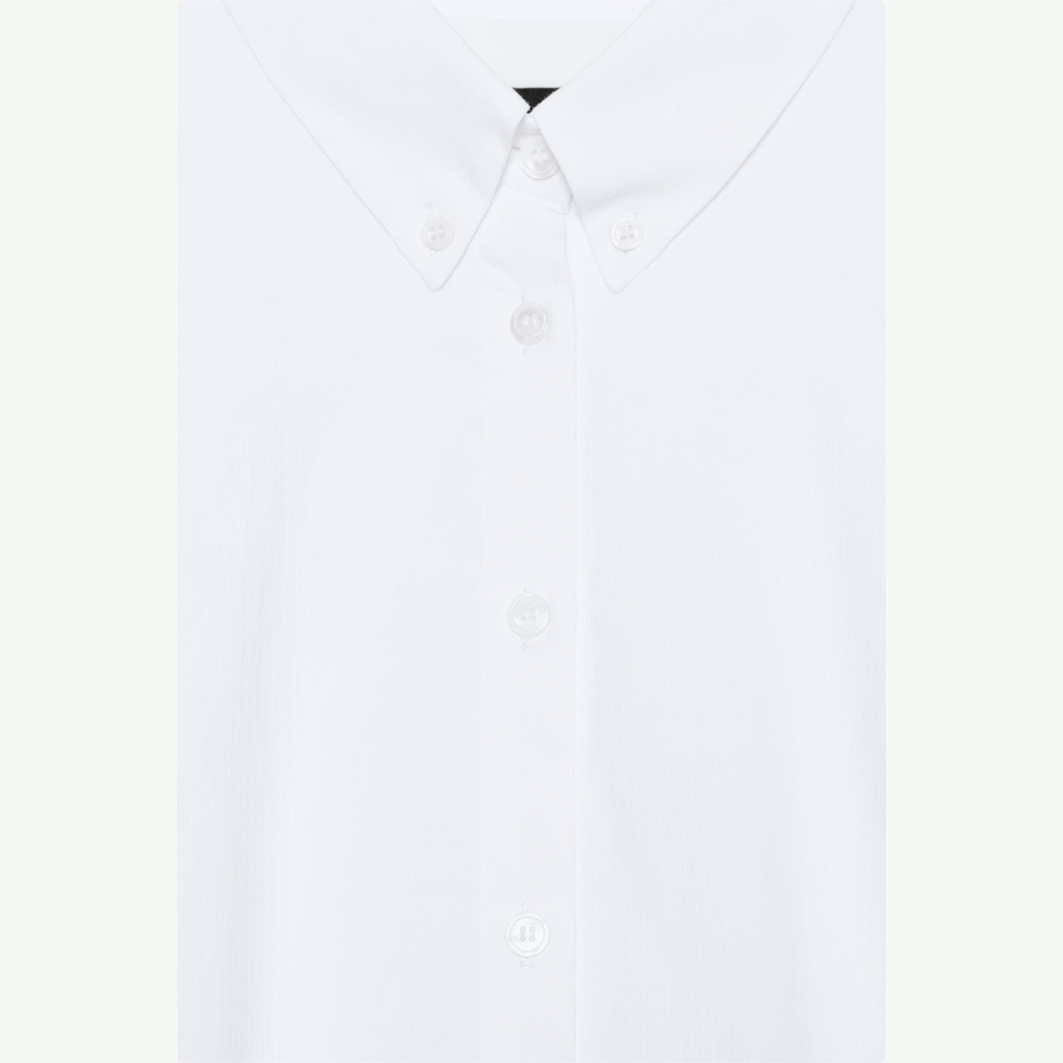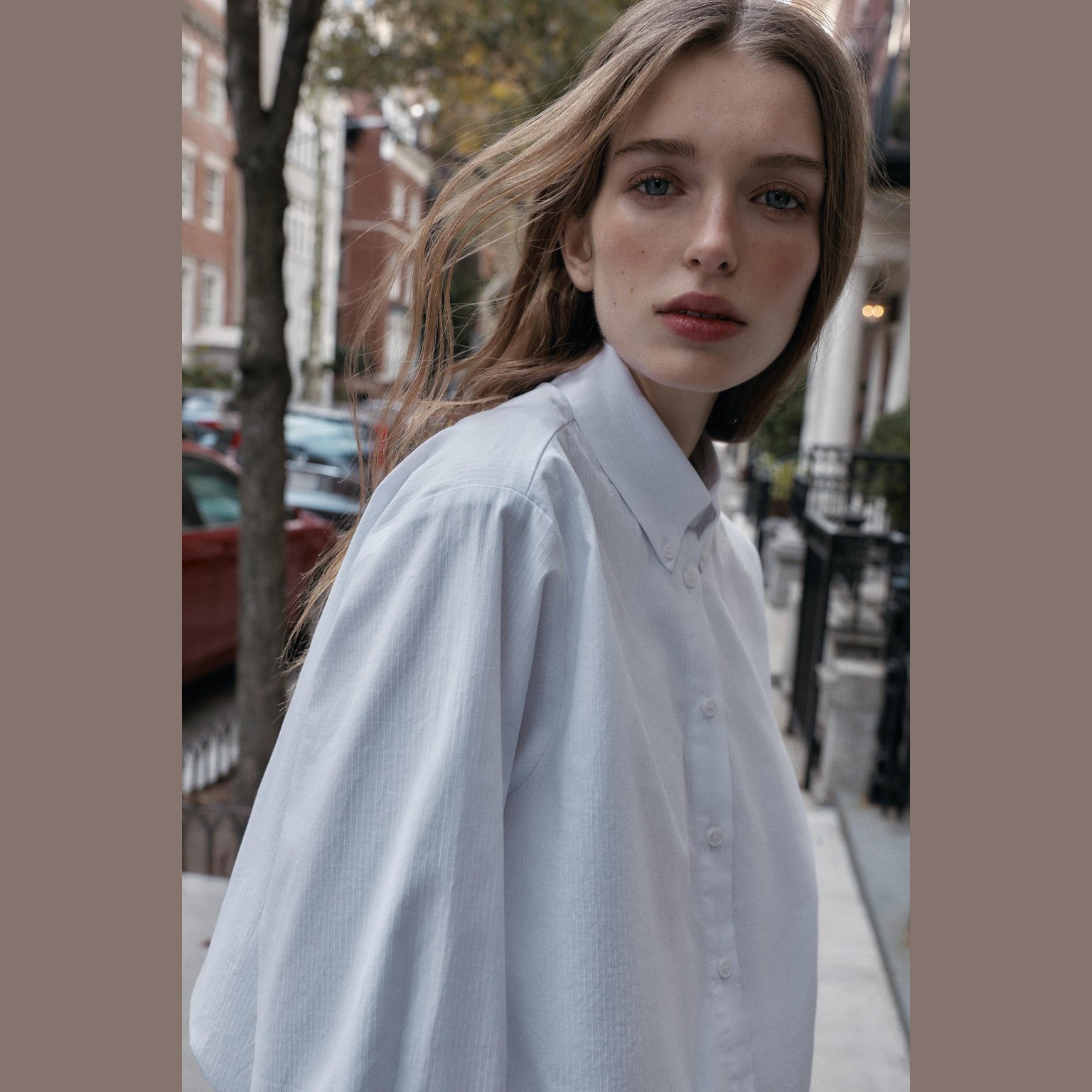 قميص بوبلين ببالون – لون أويستر أبيض – Oyster‑White (Poplin Balloon Shirt) قميص أنيق بتصميم عصري، يتميز بياقة كلاسيكية وأكمام طويلة، مع حافة بالون مزودة ببطانة داخلية مرنة تمنح شكلًا مميزًا. يأتي بإغلاق أمامي بأزرار لمظهر نظيف وعملي يناسب الإطلالات اليومية والكاجوال الأنيقة.