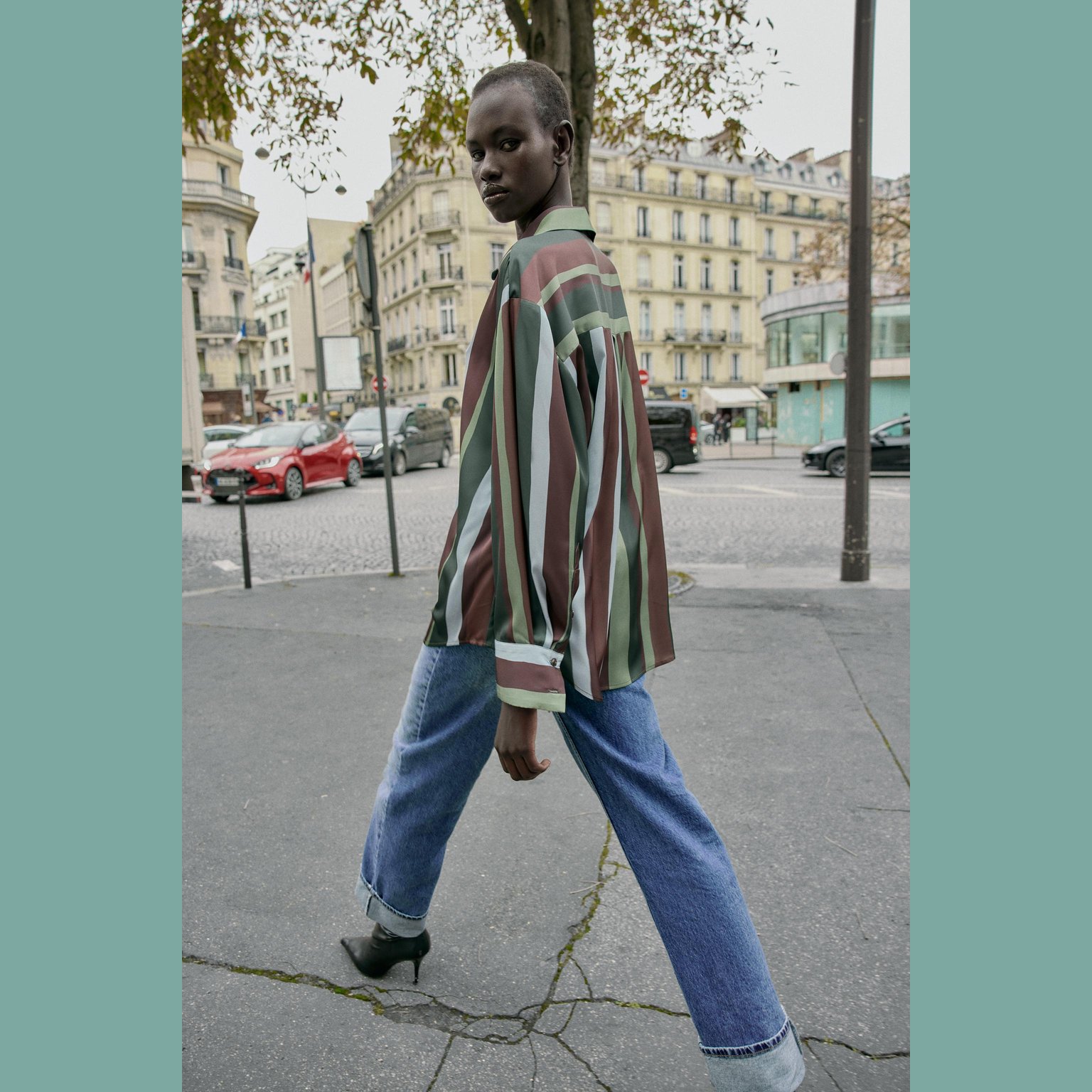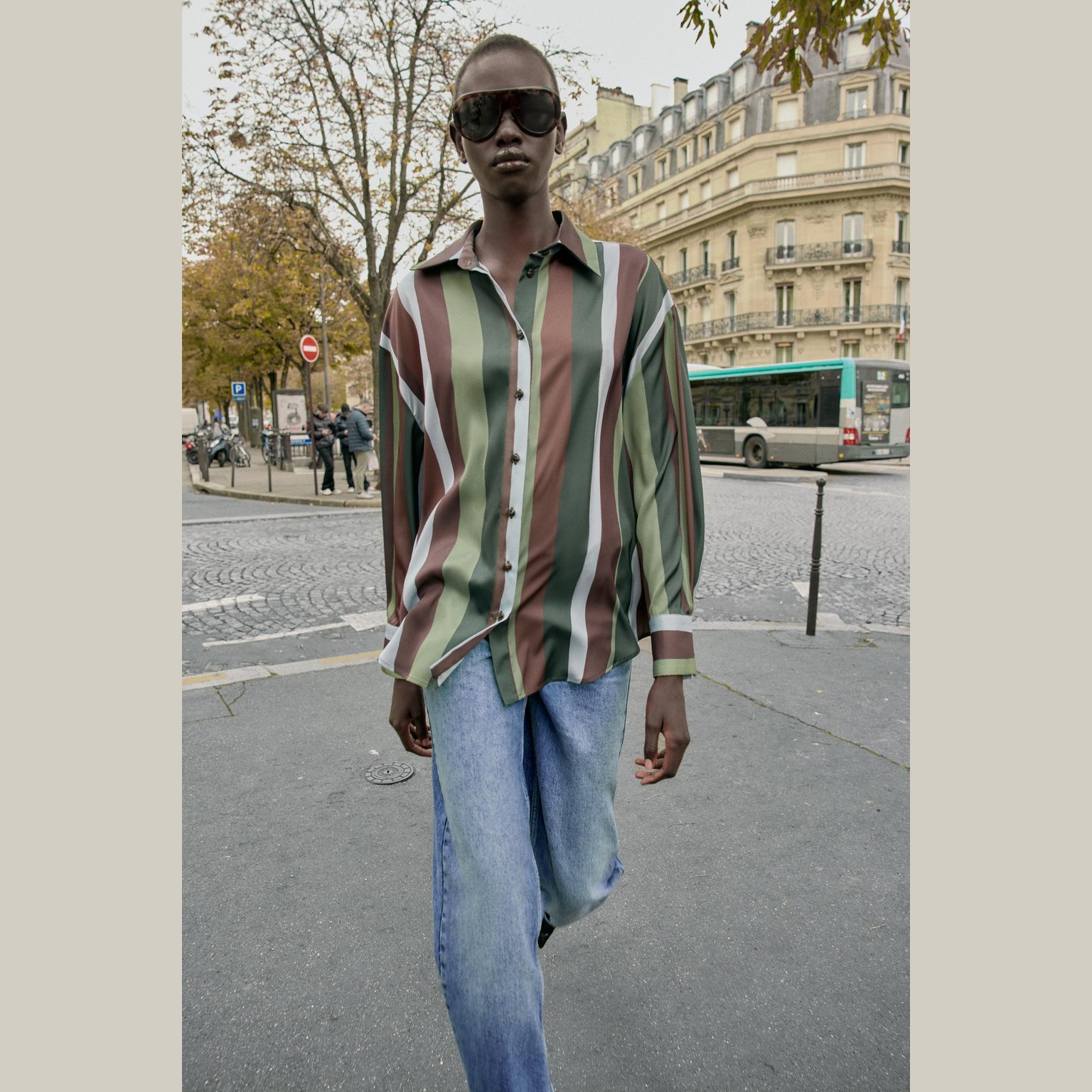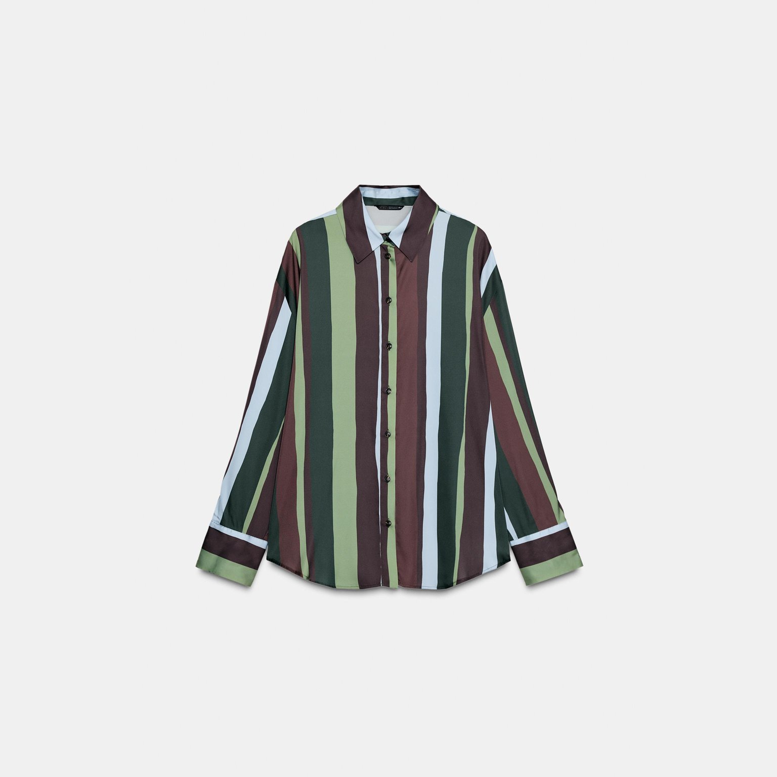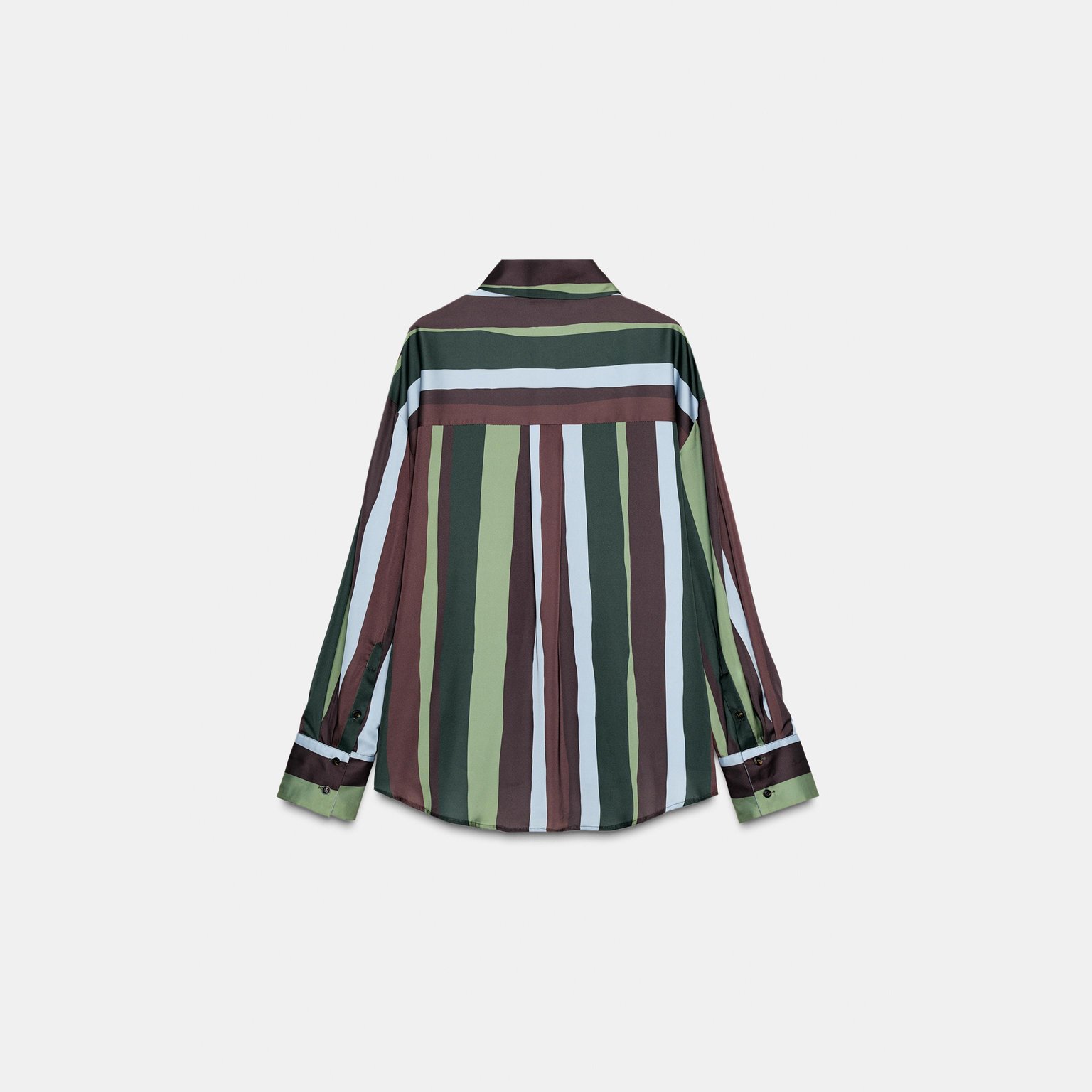 بلوزة ساتان مخططة بقصّة انسيابية مع ياقة كلاسيكية وأكمام طويلة بثنية – ألوان متعددة – Multicoloured (Striped Satin Blouse) بلوزة أنيقة بقماش ساتان انسيابي يمنح لمسة فاخرة، تتميز بياقة كلاسيكية وأكمام طويلة مع ثنية عند الأطراف، إضافة إلى إغلاق أمامي بأزرار لمظهر نظيف وعملي يناسب الإطلالات اليومية والكاجوال الأنيقة.