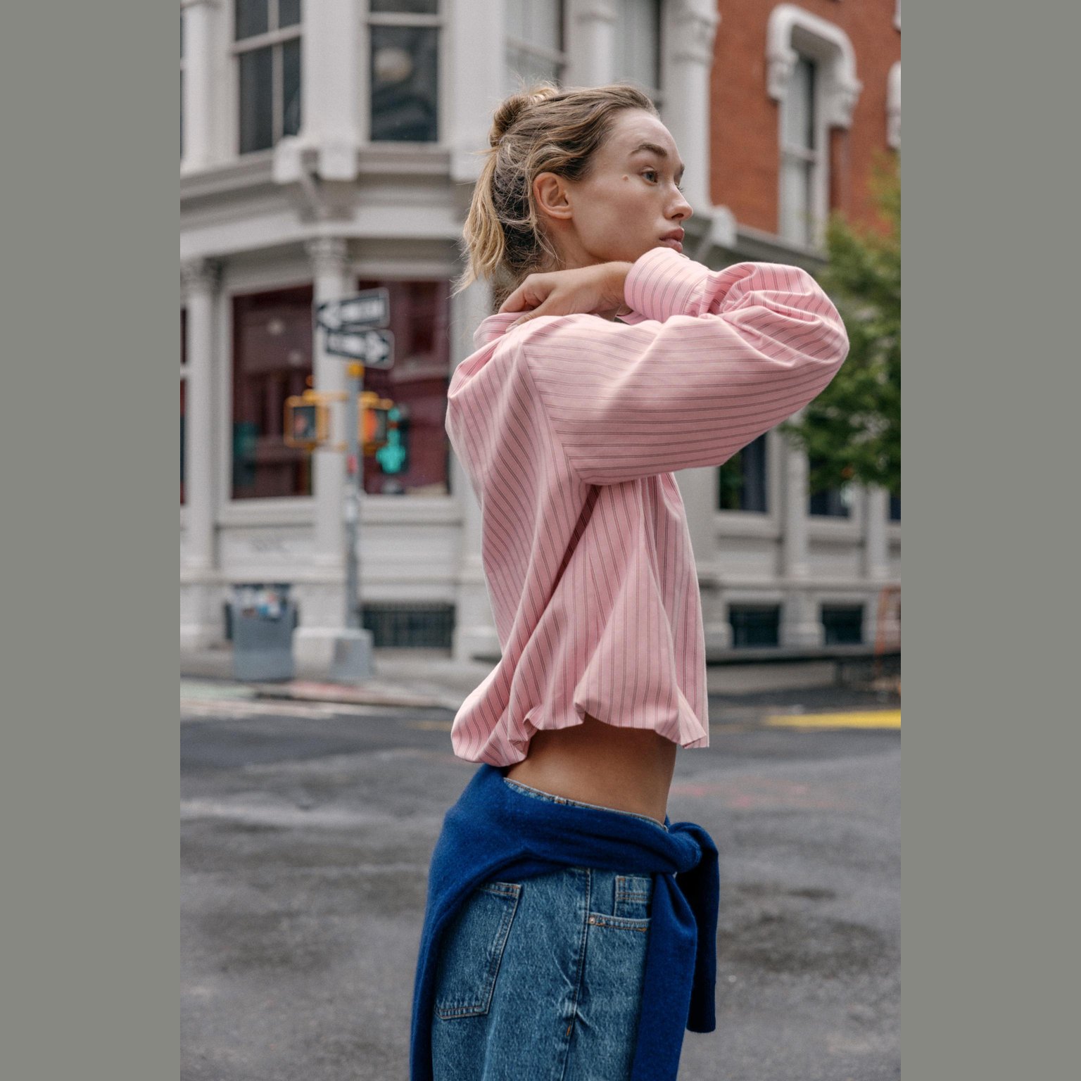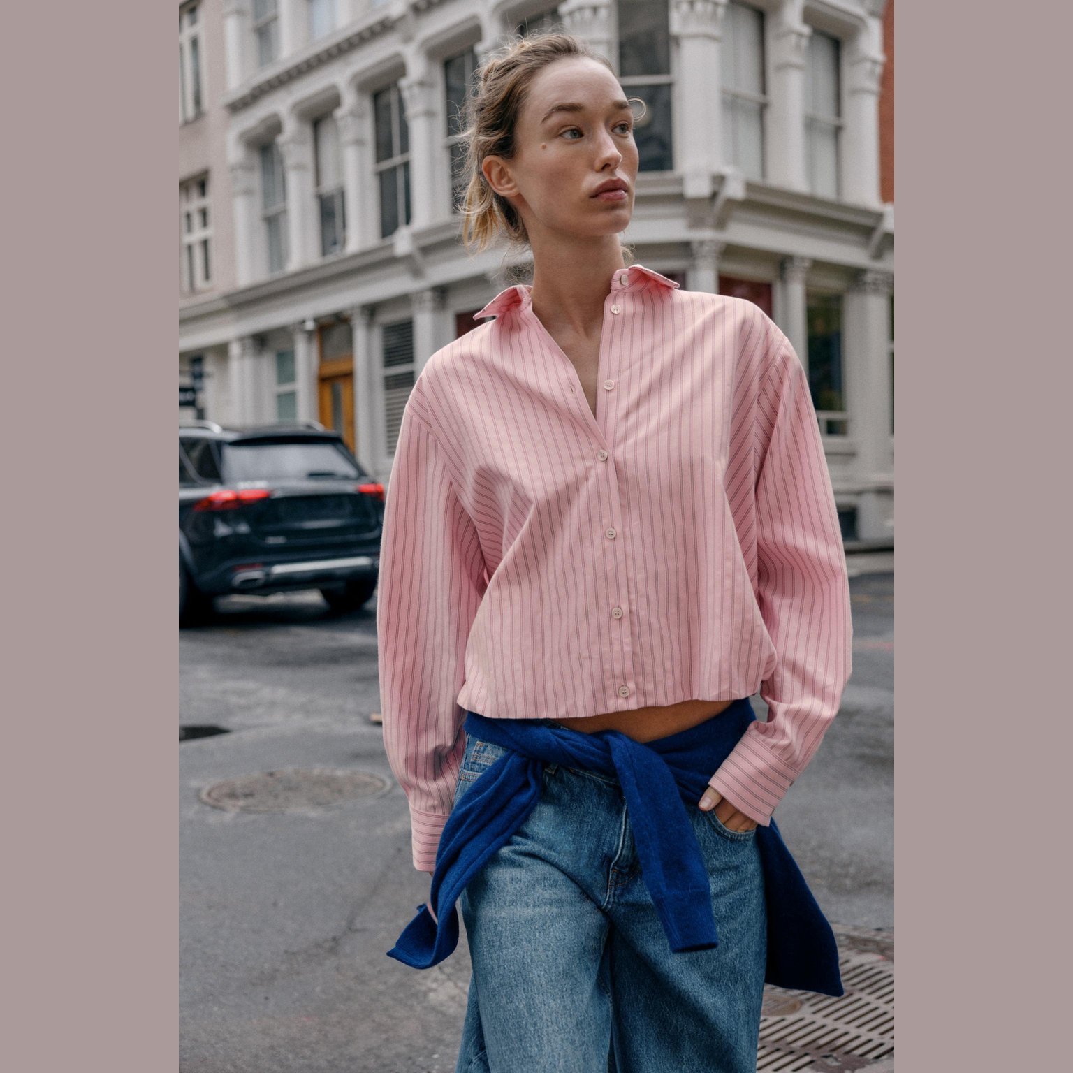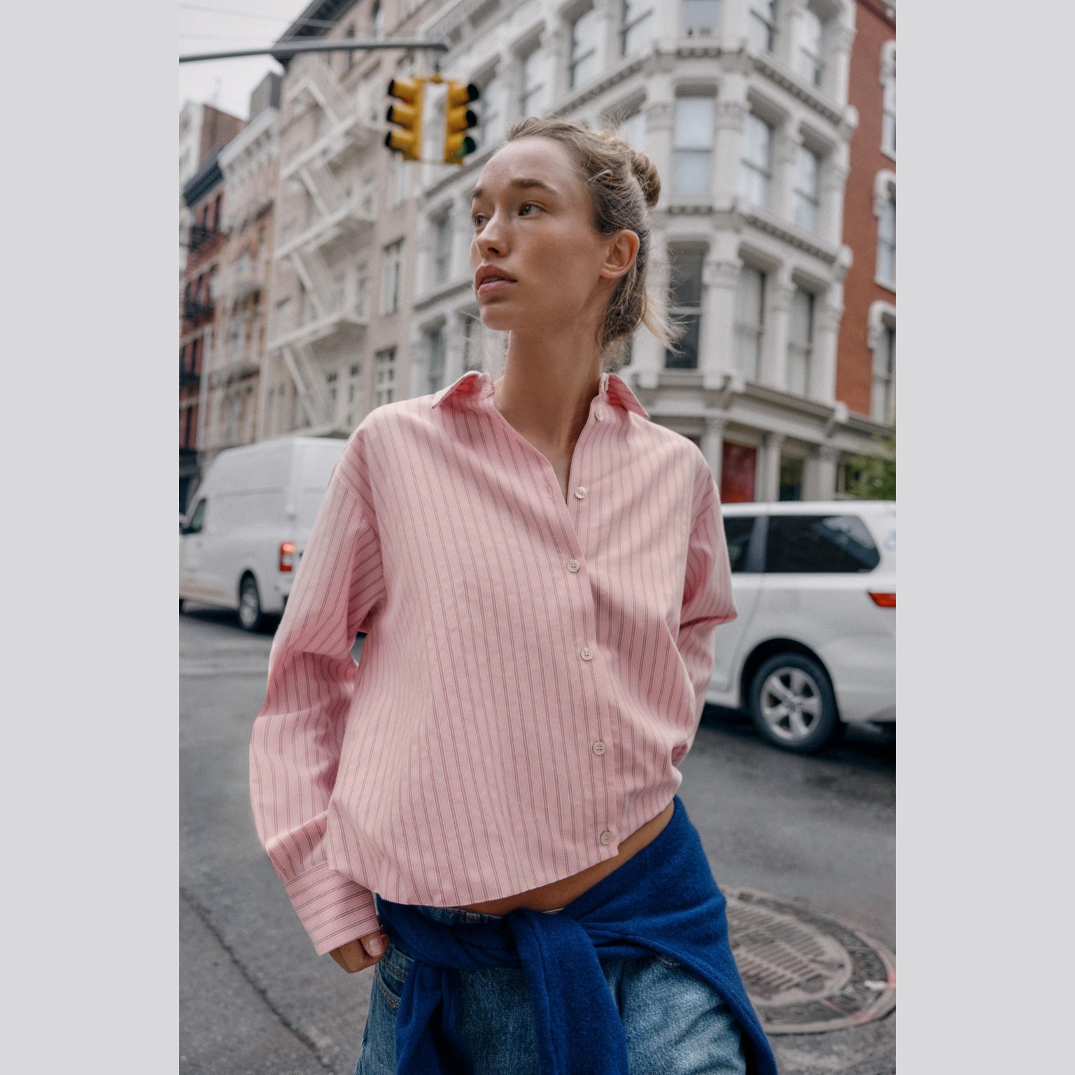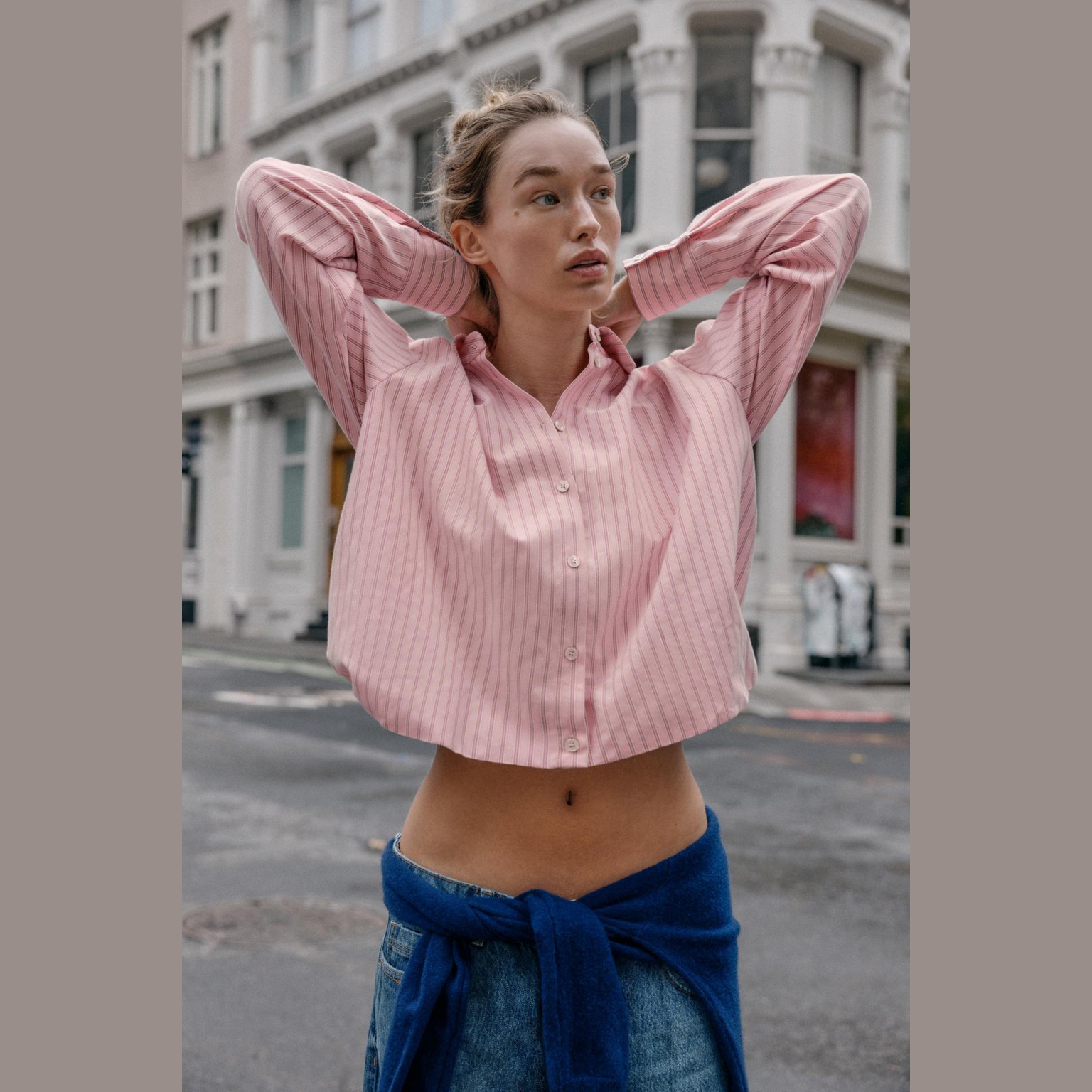قميص أوكسفورد مخطّط بتصميم بالون – لون زهري/أبيض – Pink/White (Striped Balloon Oxford Shirt) قميص أنيق بتصميم مريح، يتميز بياقة لابيل وأكمام طويلة، مع حافة سفلية مزوّدة بمطاط داخلي يمنح شكل بالون جذابًا. يأتي بإغلاق أمامي كامل بأزرار، مما يجعله خيارًا مثاليًا للإطلالات اليومية والكاجوال الأنيقة.