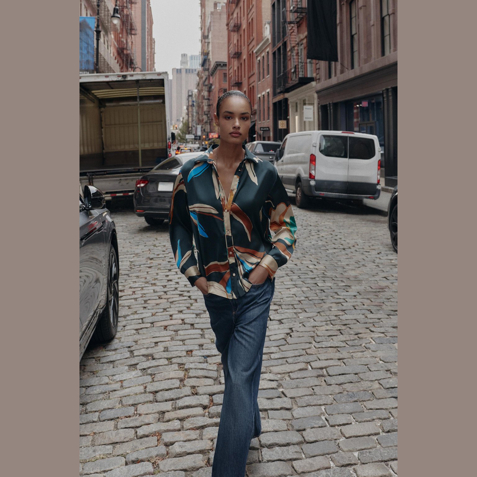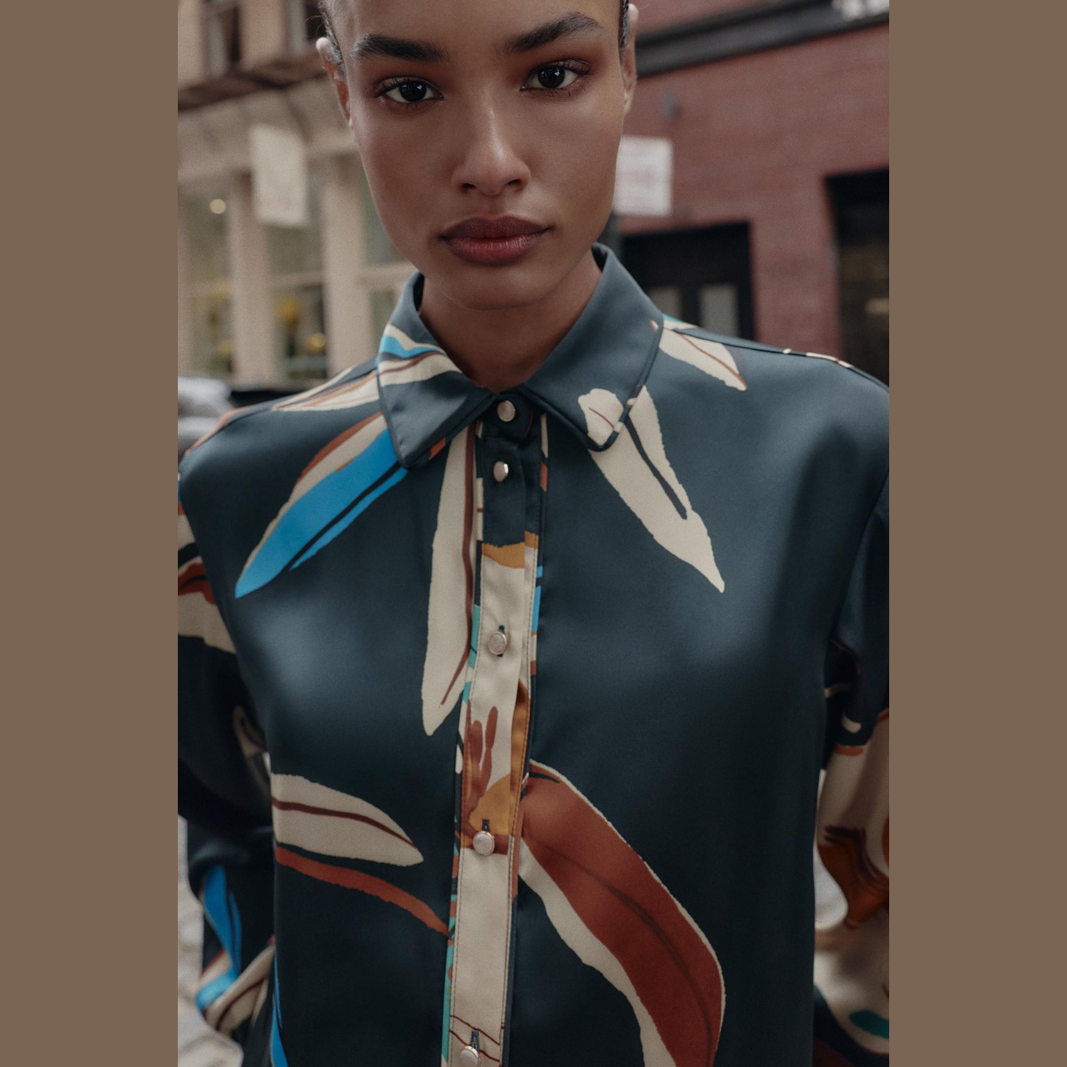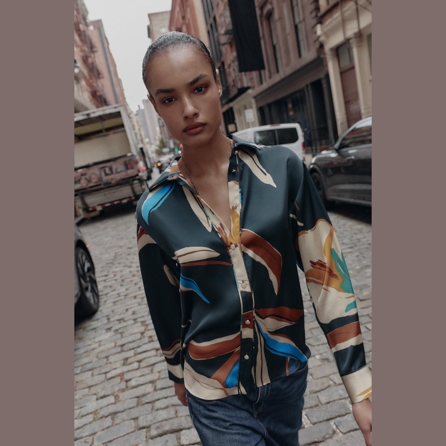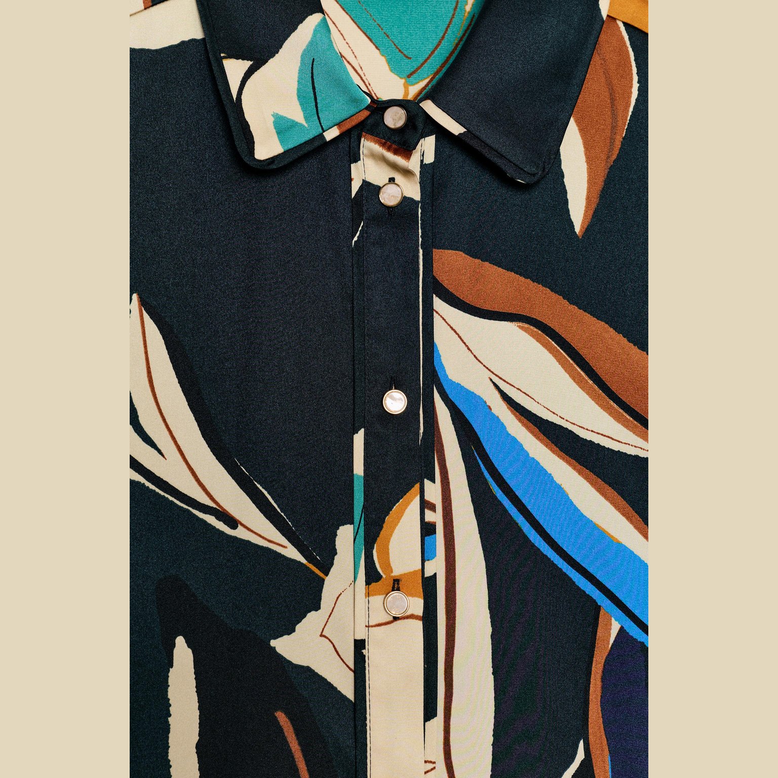 قميص مطبوع بقصّة انسيابية مع ياقة كلاسيكية – متعدد الألوان – Multicoloured (Flowing Printed Shirt) قميص أنيق بتصميم انسيابي مريح، يتميز بياقة كلاسيكية وأكمام طويلة، مع إغلاق أمامي كامل بأزرار. يأتي بطبعات مميزة تضيف لمسة عصرية تناسب الإطلالات اليومية والكاجوال الأنيقة.