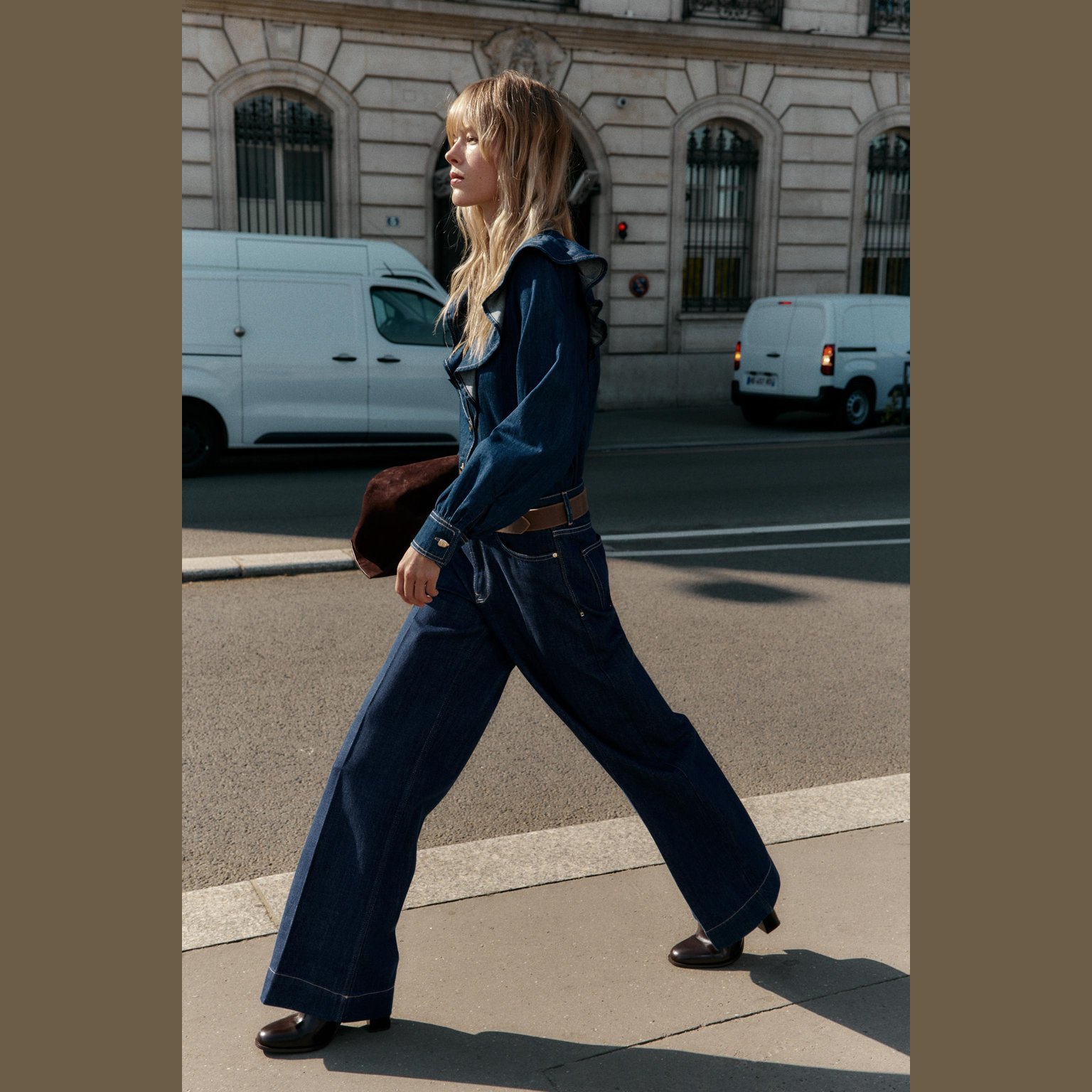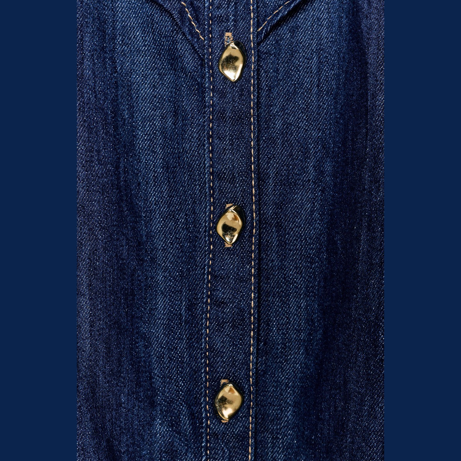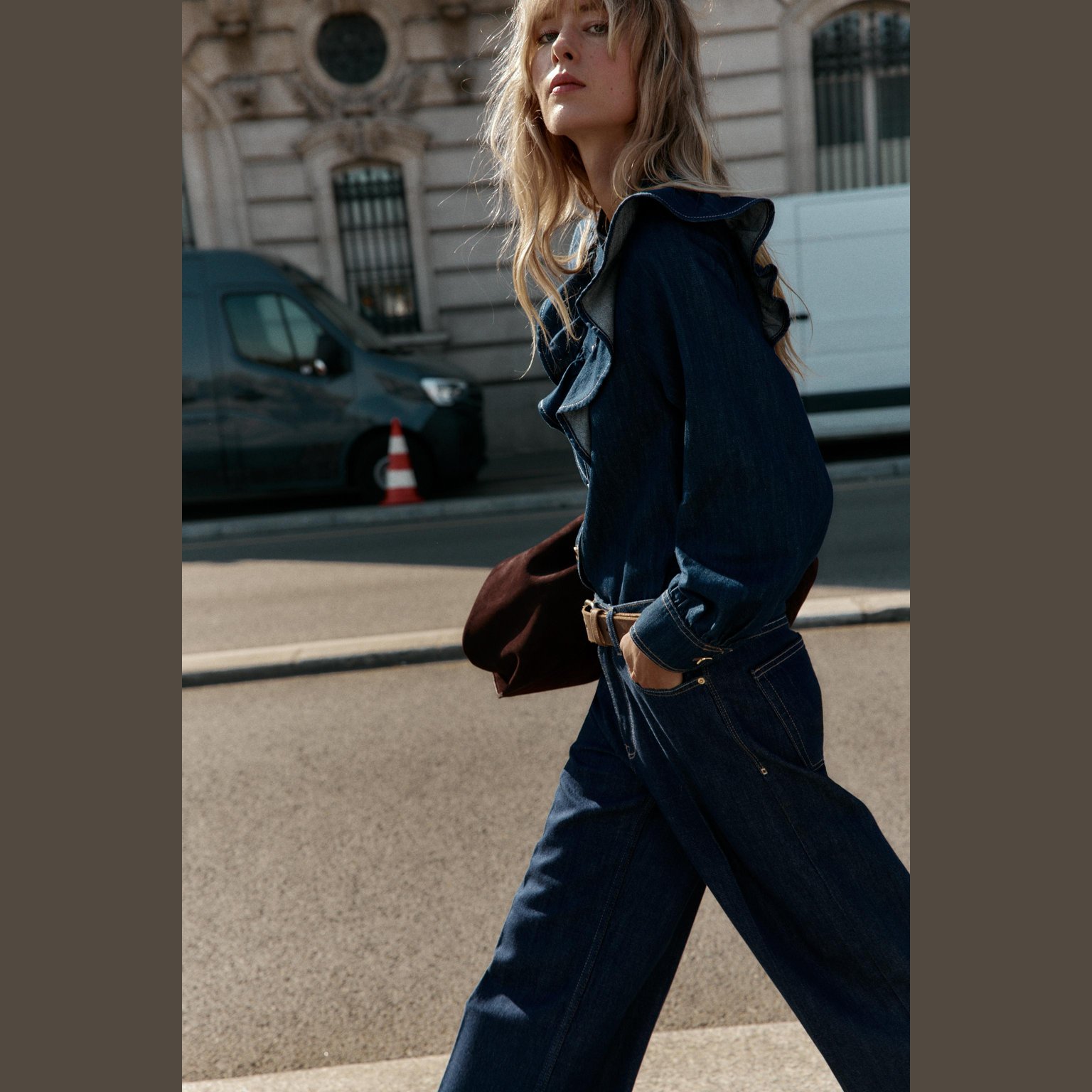 قميص دنيم بياقة دائرية مع كشكش – لون أزرق – Blue (Z1975 Denim Shirt with Ruffles) قميص دنيم أنيق بتصميم ناعم، يتميز بياقة دائرية وأكمام طويلة، مع تفاصيل كشكش تضيف لمسة أنثوية رقيقة. يأتي بإغلاق أمامي كامل بأزرار، مما يجعله خيارًا عمليًا ومناسبًا للإطلالات اليومية والكاجوال.